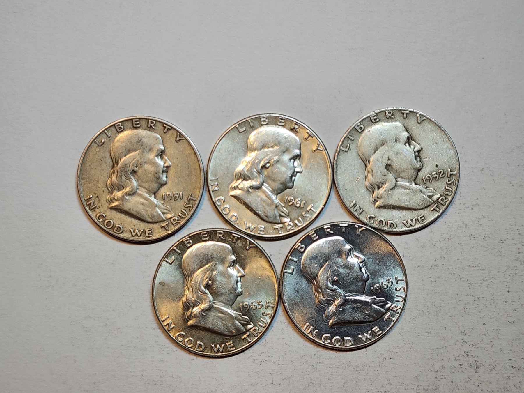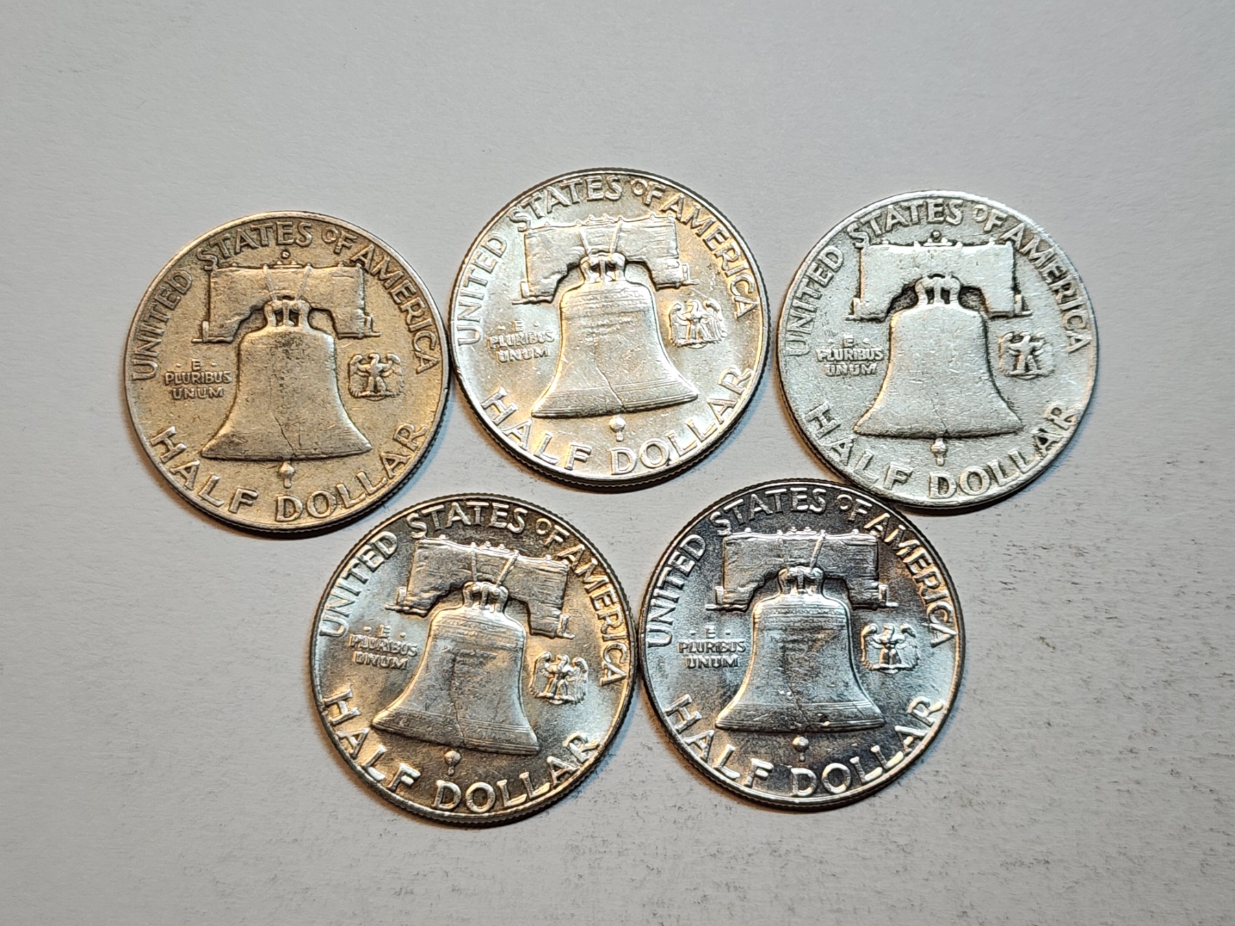 Assorted Years Silver Franklin Half Dollars Face Value: $2.50