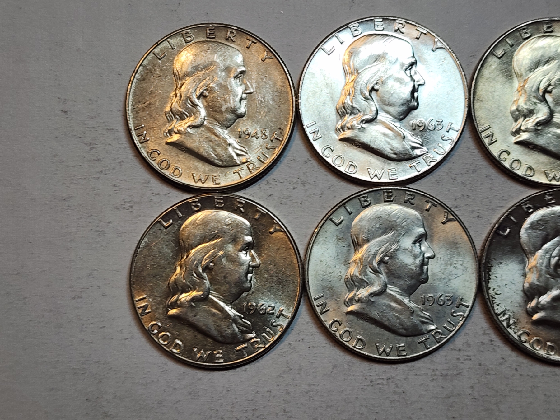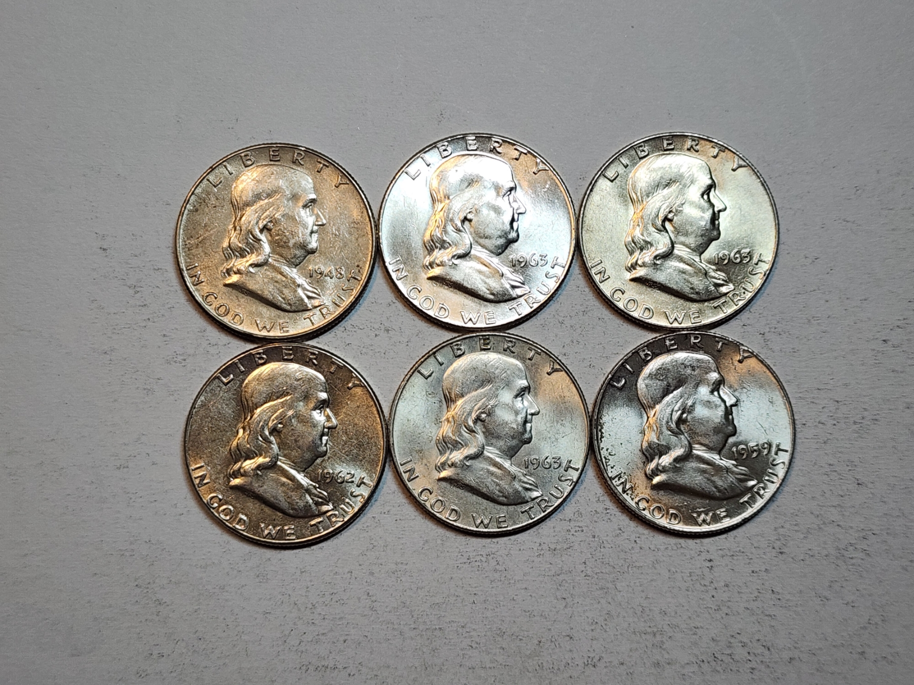 Assorted Years Silver Franklin Half Dollars Face Value: $3.00