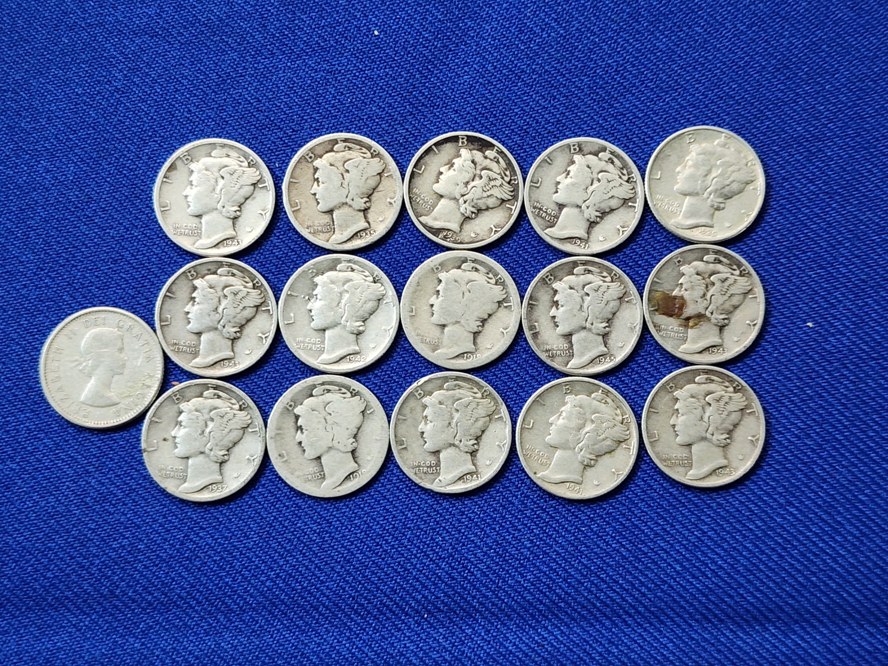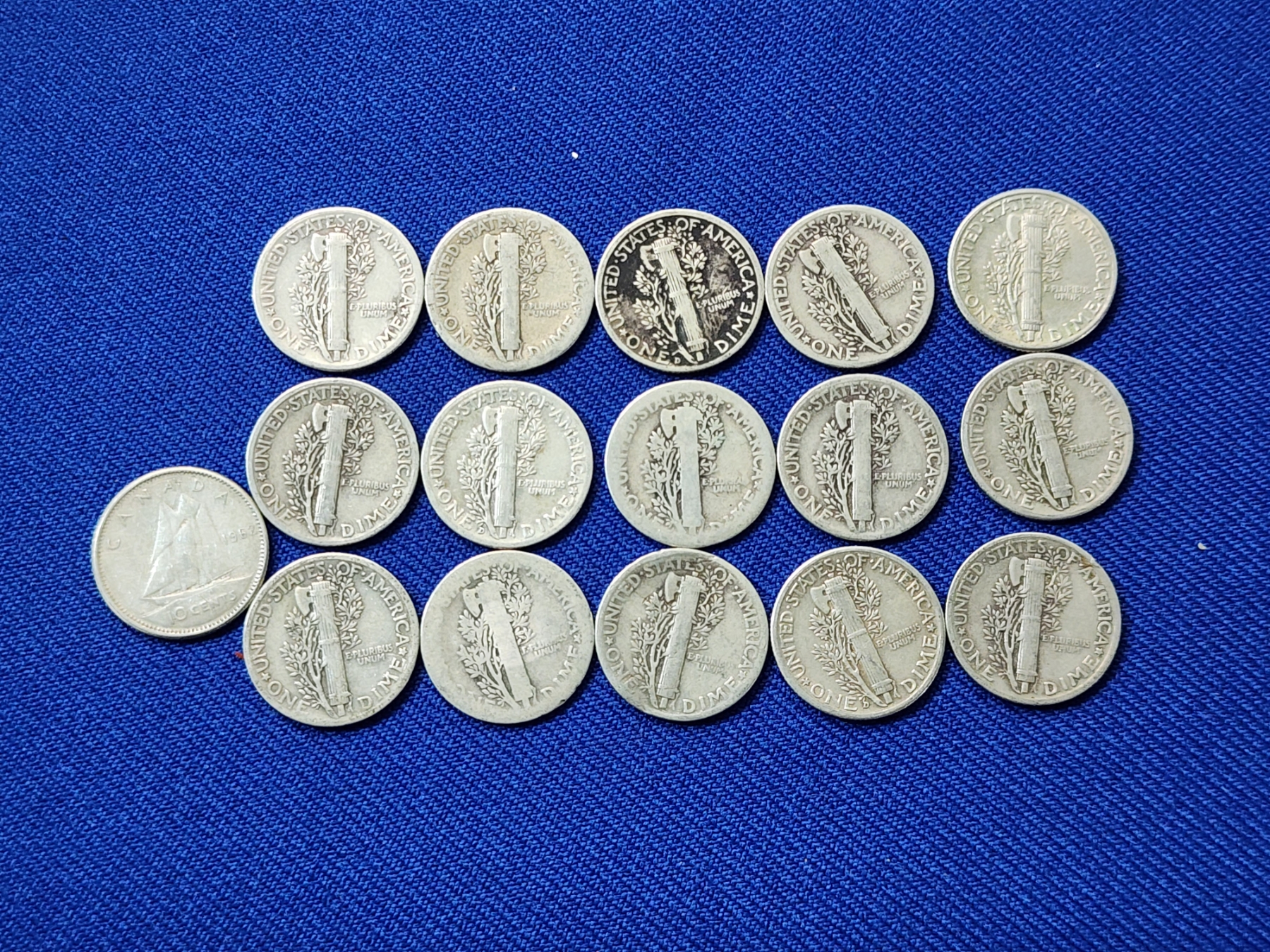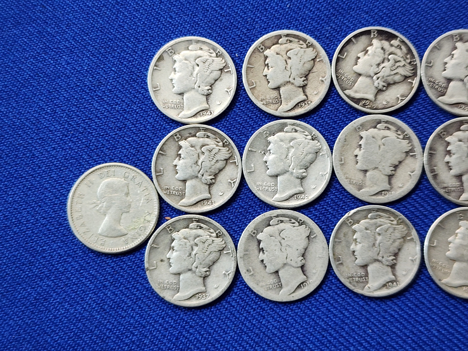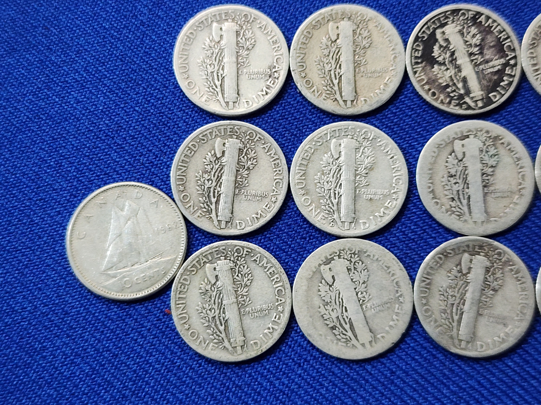 Assorted Years Silver Mercury Dimes FV: $1.50 & 1962 Silver Canadian Dime ASW 0.06oz