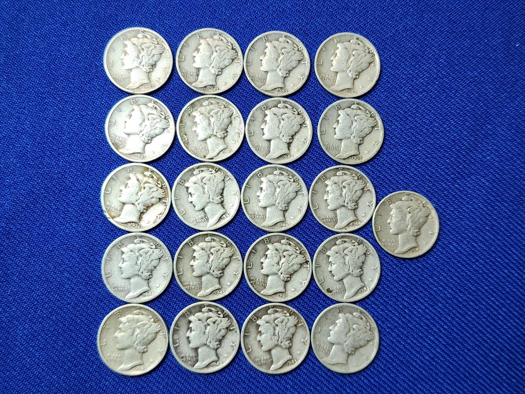Assorted Years Silver Mercury Dimes Face Value $2.10