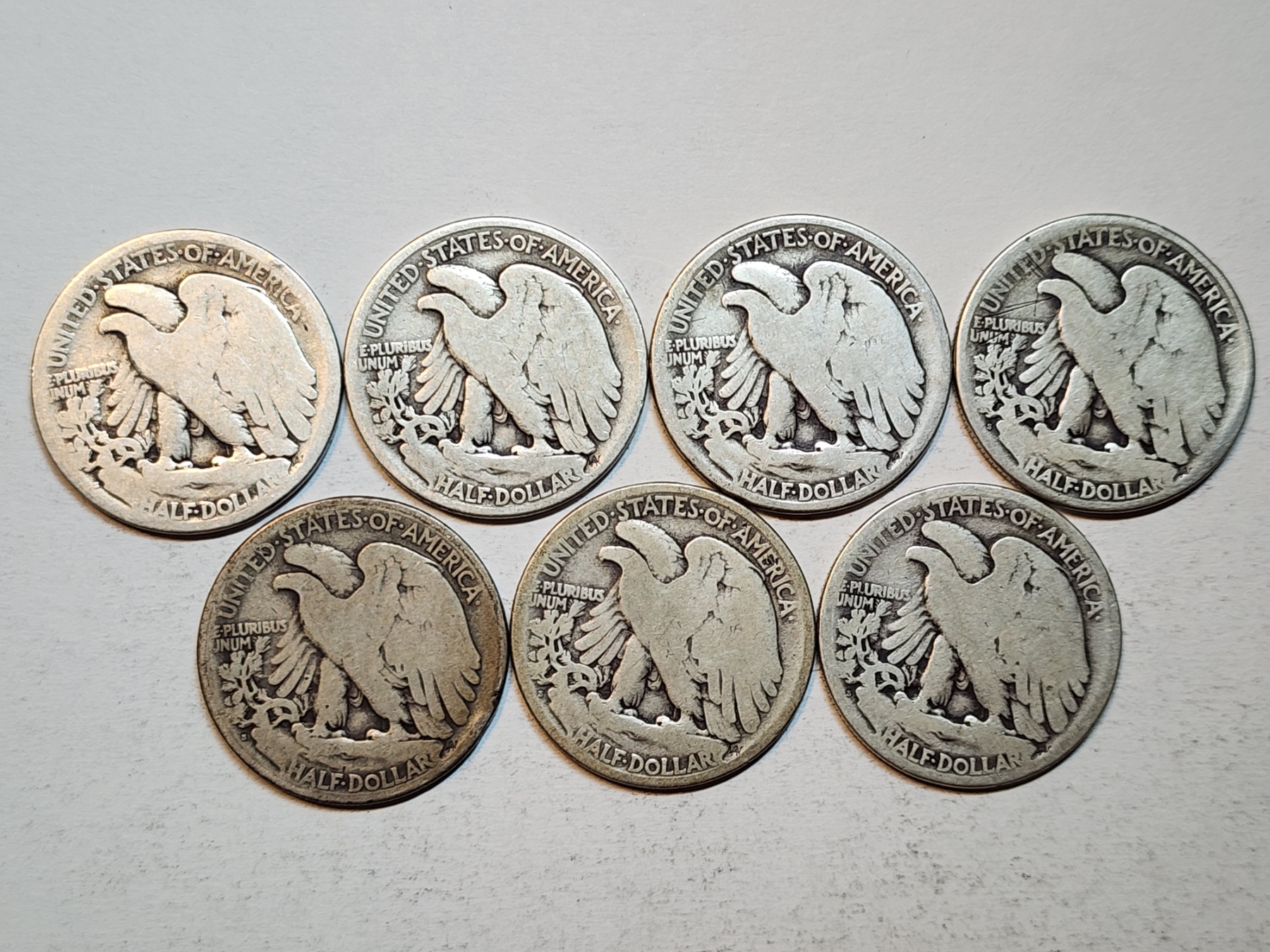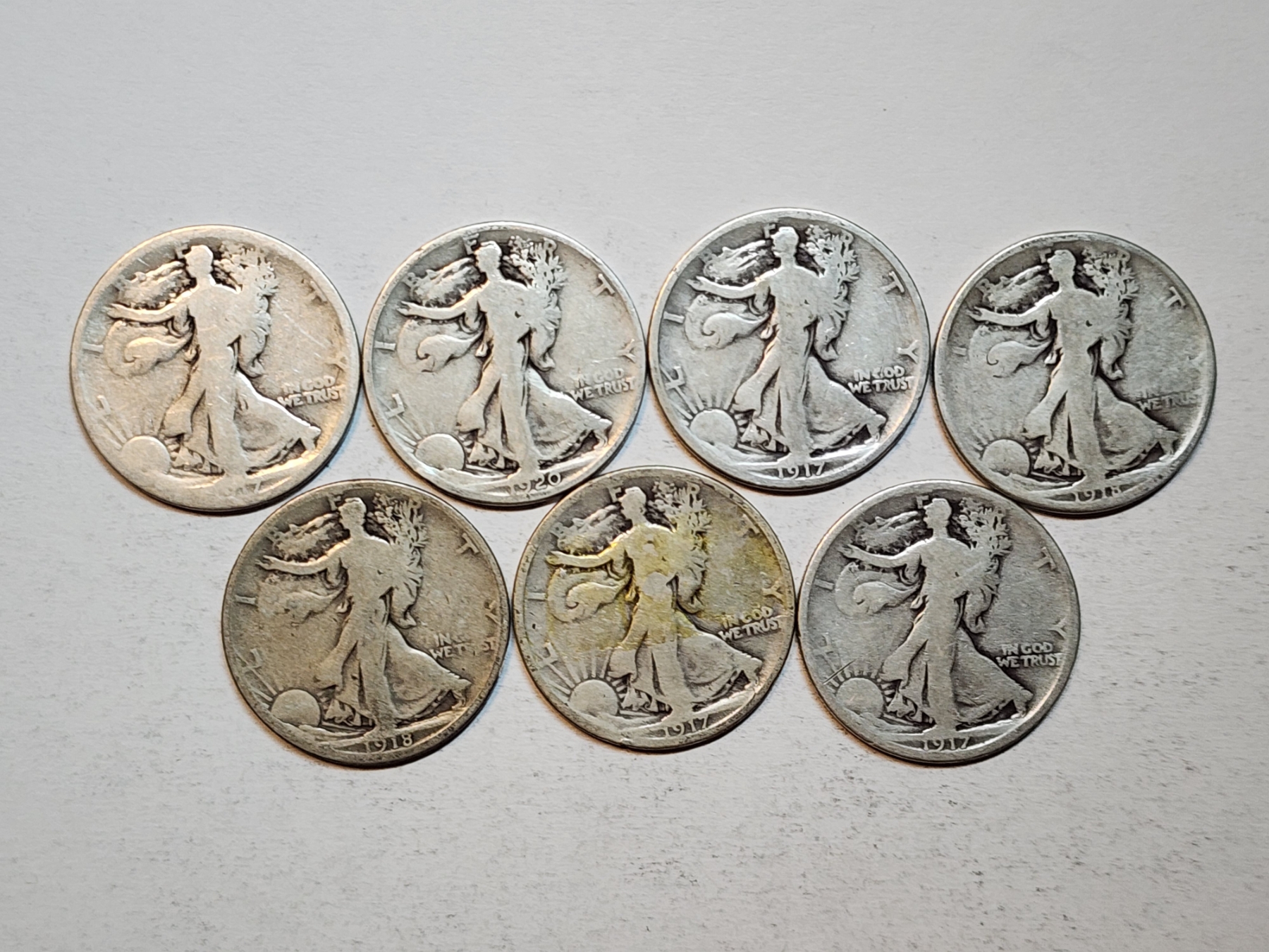 Assorted Years Silver Walking Liberty Half Dollars Face Value: $3.50