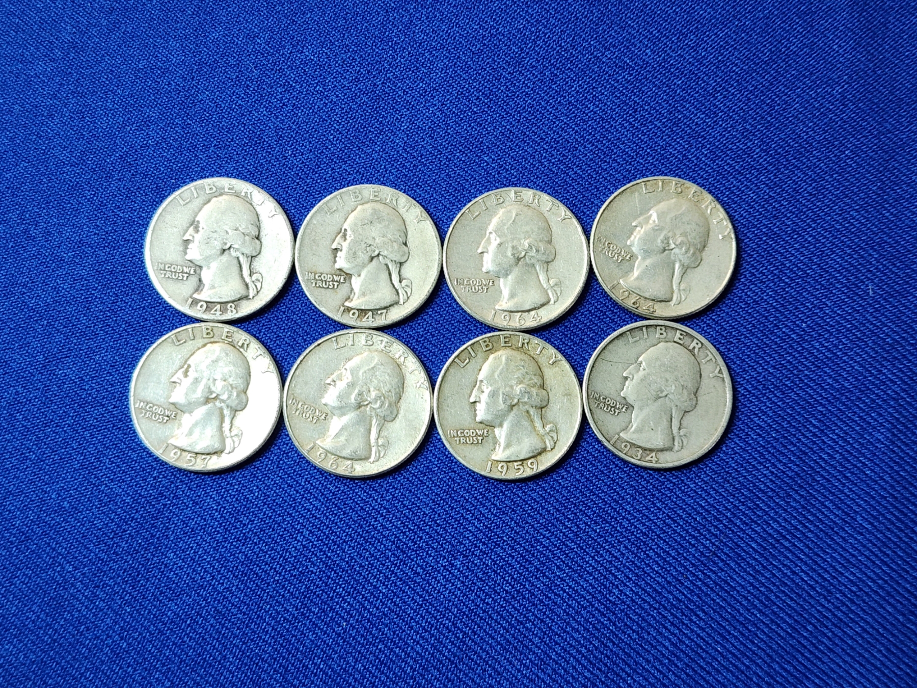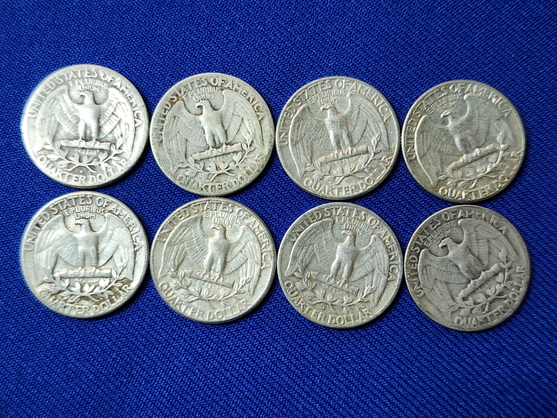 Assorted Years Silver Washington Quarters Face Value $2.00