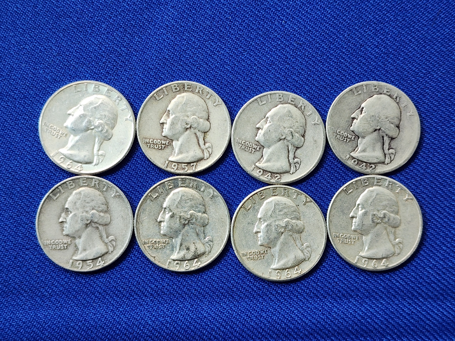 Assorted Years Silver Washington Quarters Face Value $2.00