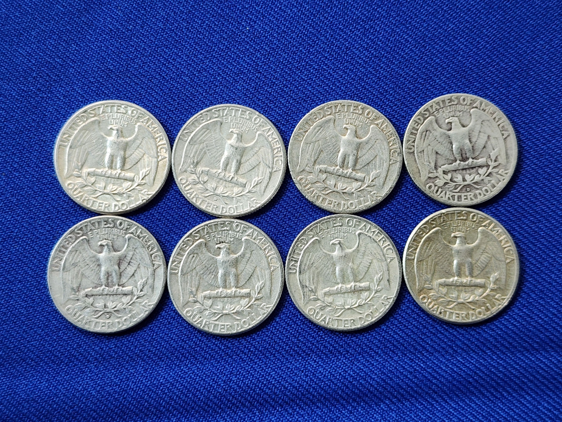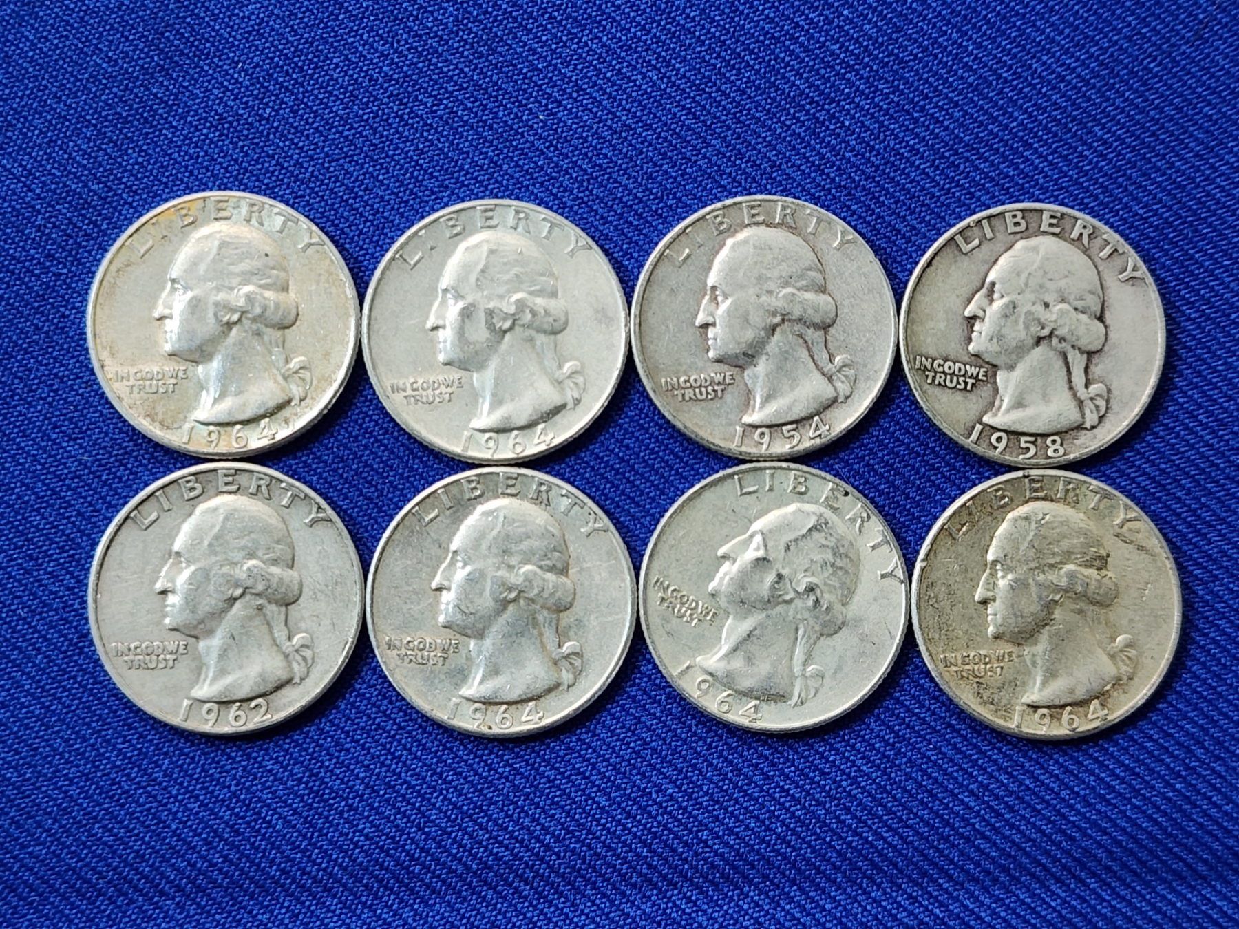 Assorted Years Silver Washington Quarters Face Value $2.00