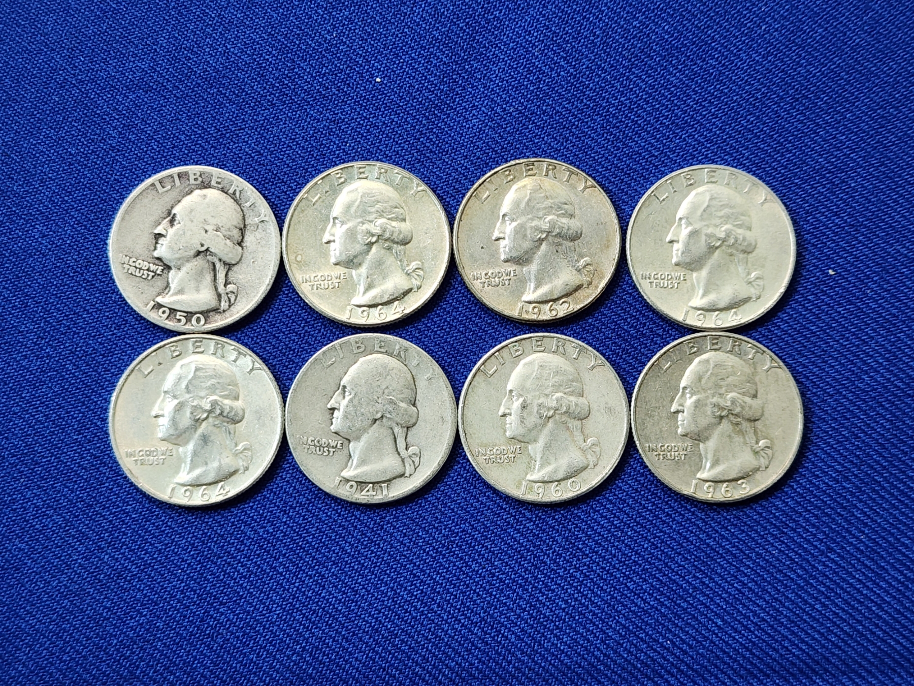 Assorted Years Silver Washington Quarters Face Value $2.00