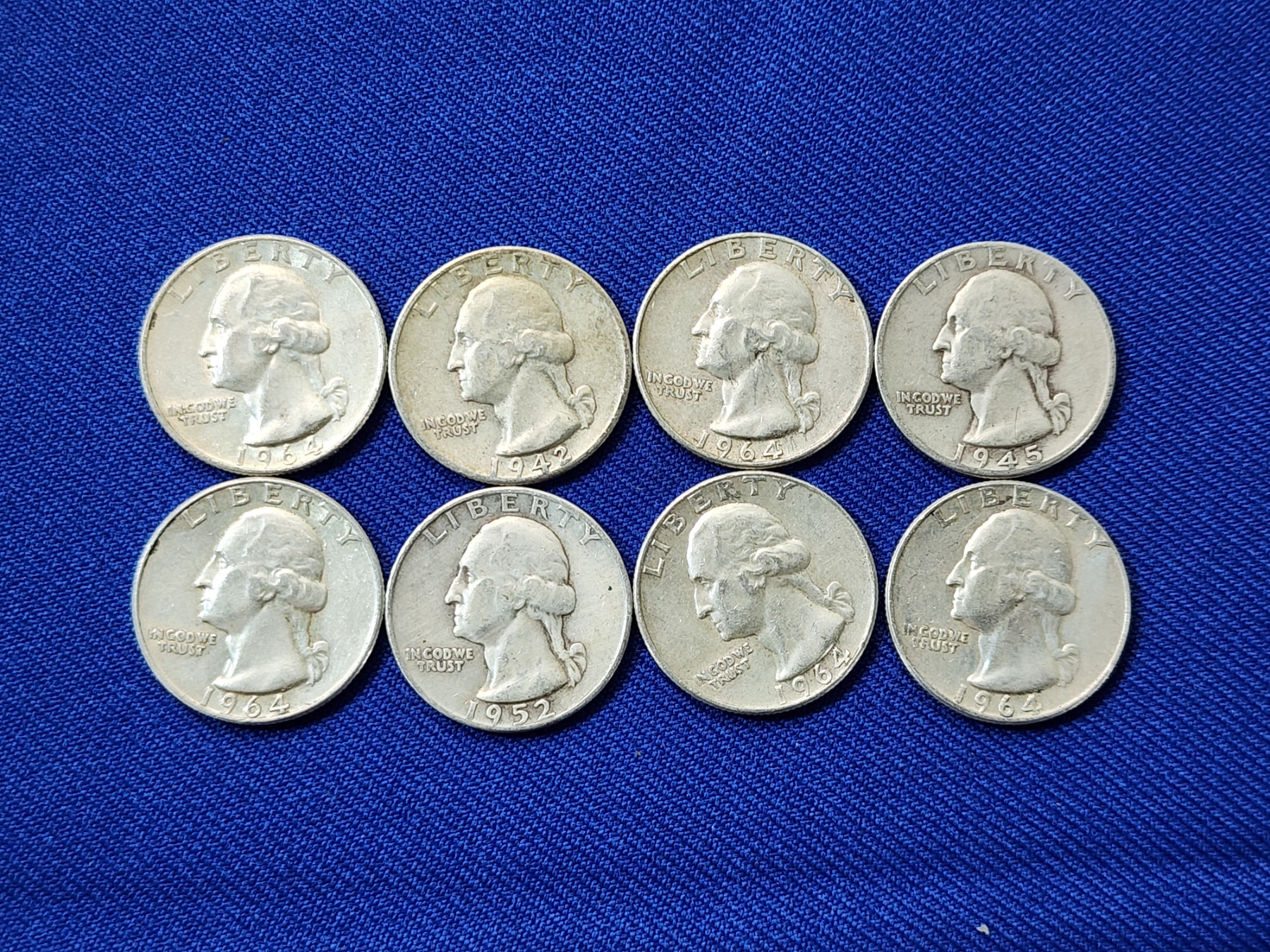 Assorted Years Silver Washington Quarters Face Value $2.00