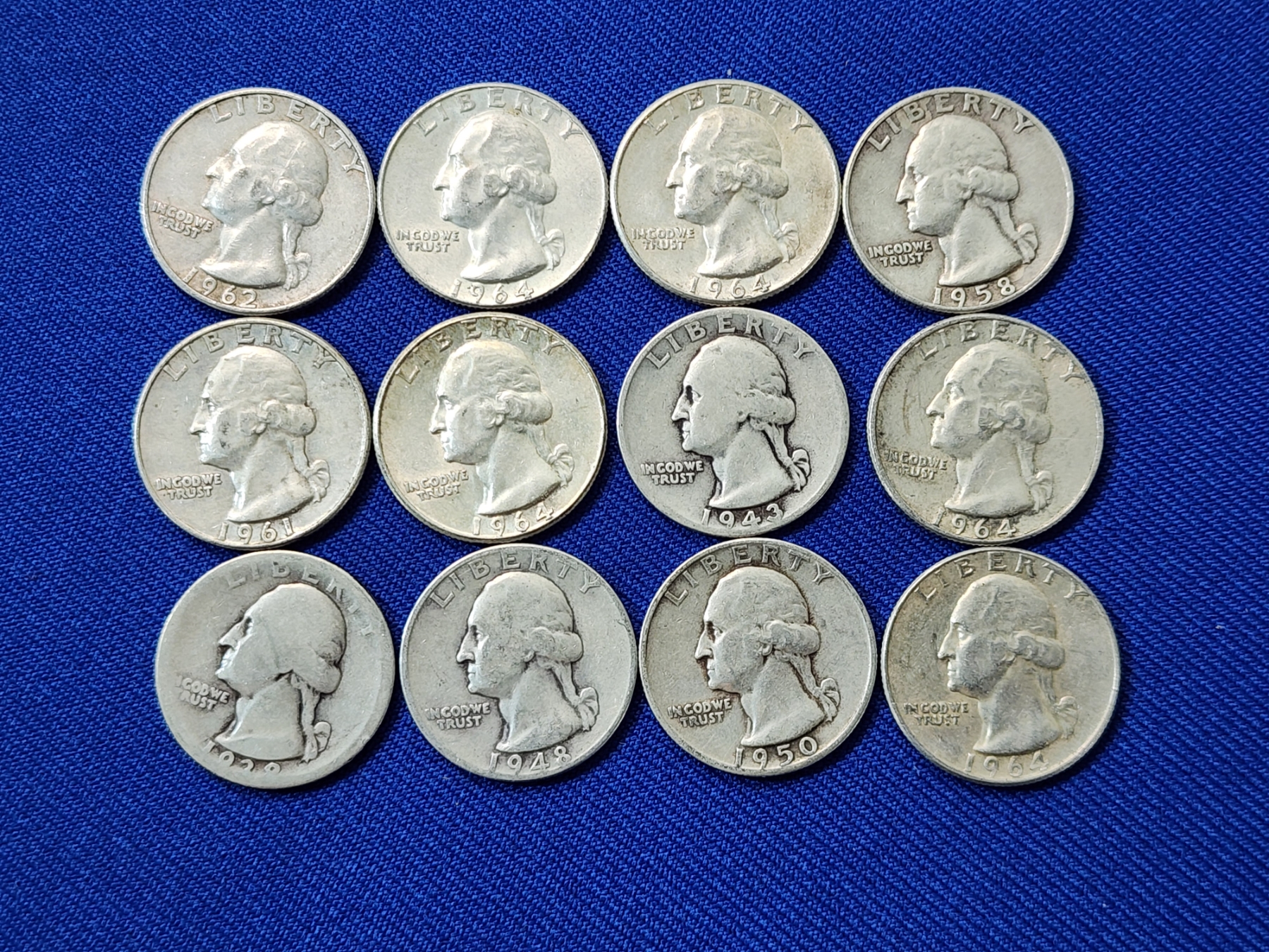 Assorted Years Silver Washington Quarters Face Value $3.00