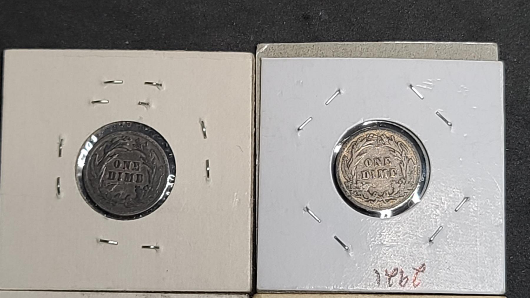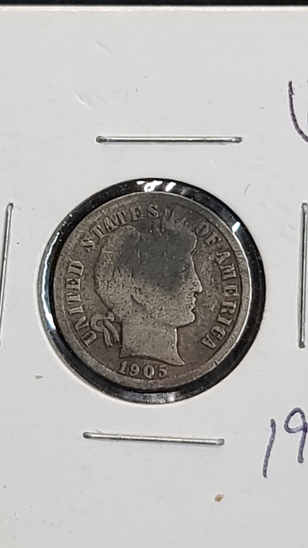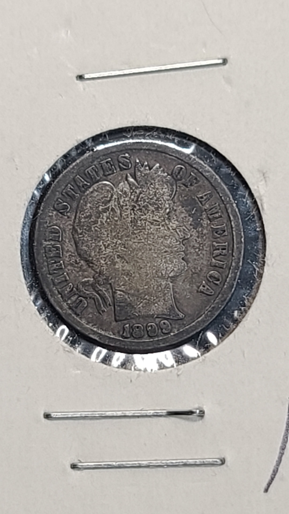 Assorted Years U.S Barber 90% Silver Dimes -1899, 1900, 1902, 1905, 1906 - Face Value: $0.50