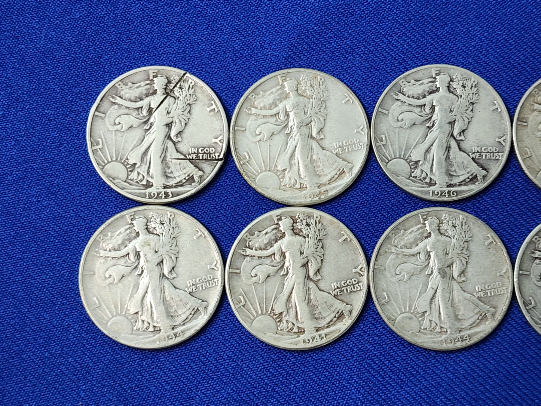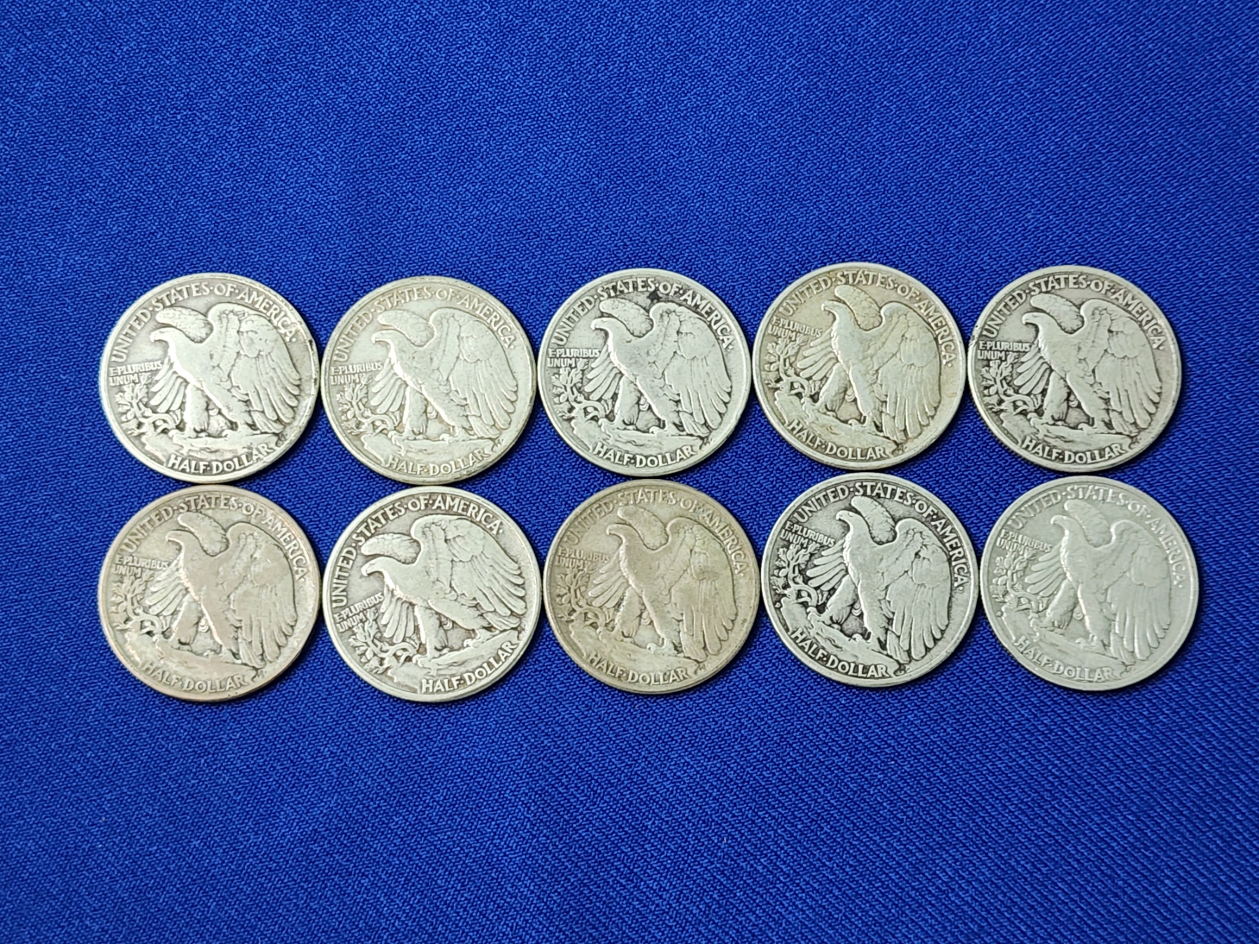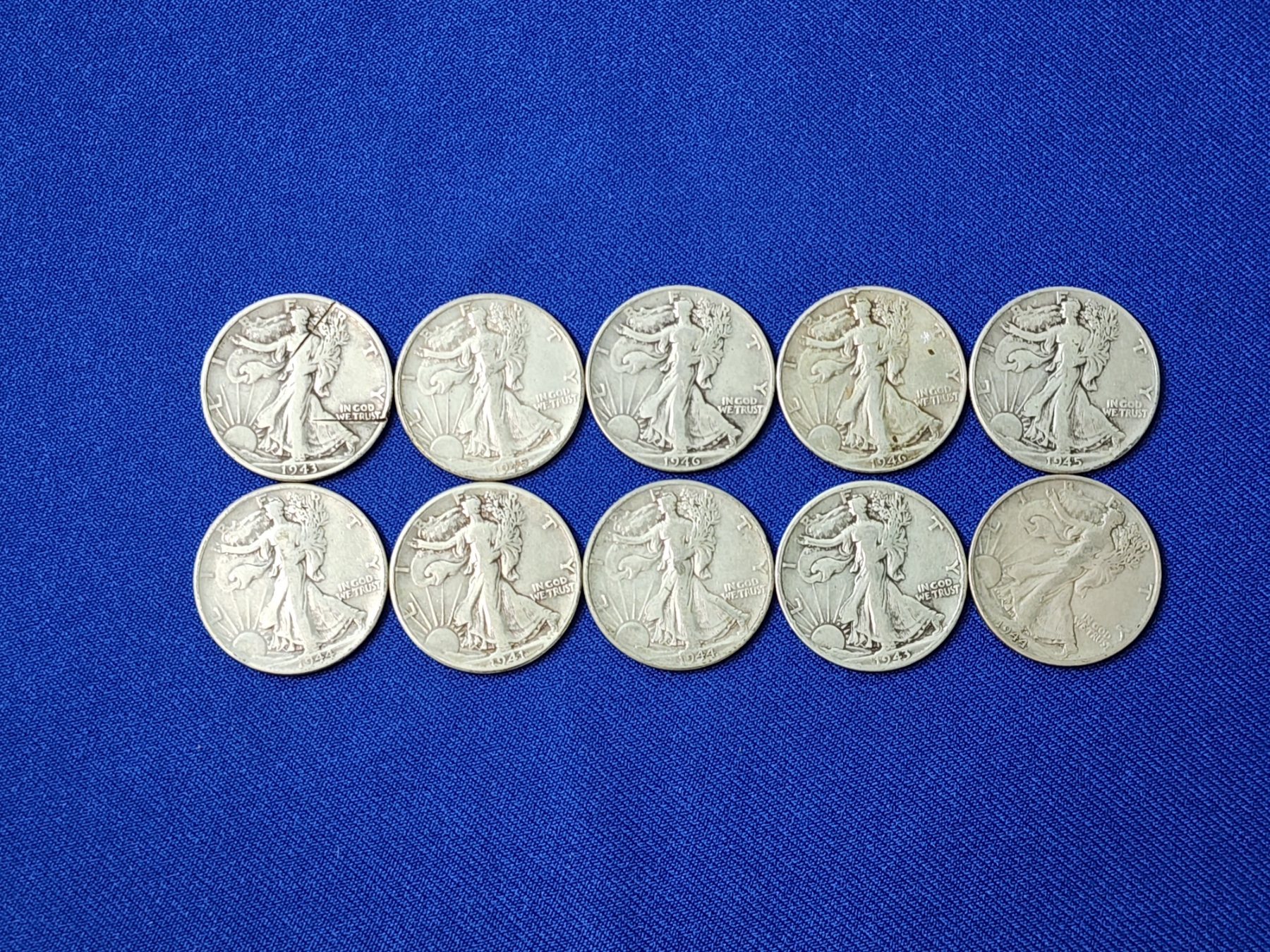 Assorted Years Walking Liberty Silver Half Dollars - FV: $5.00
