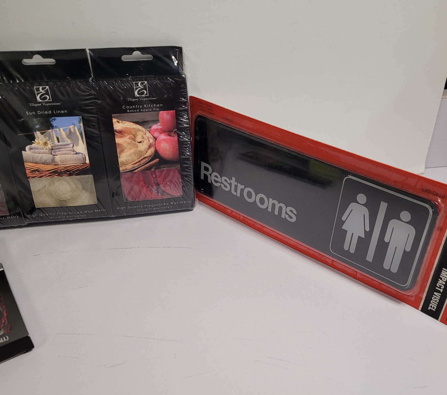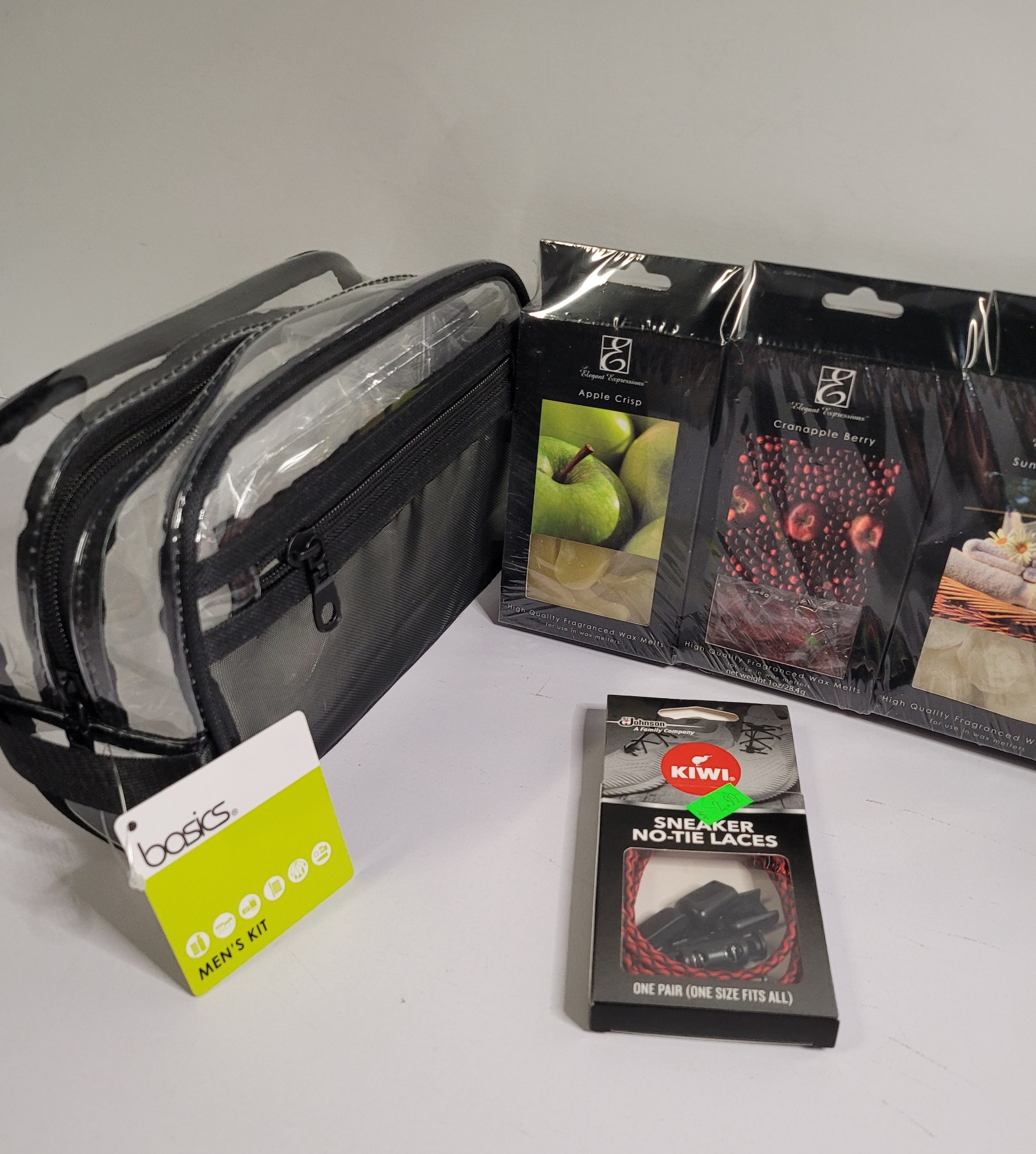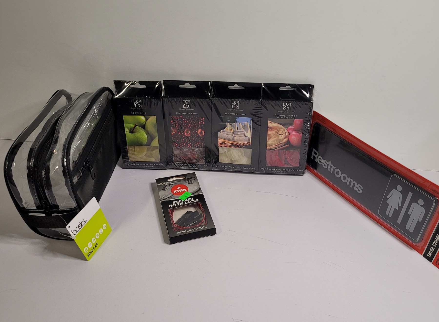 Assortment - No-Tie Laces, Restrooms Sign, Men's Kit Bag And Wax Melts