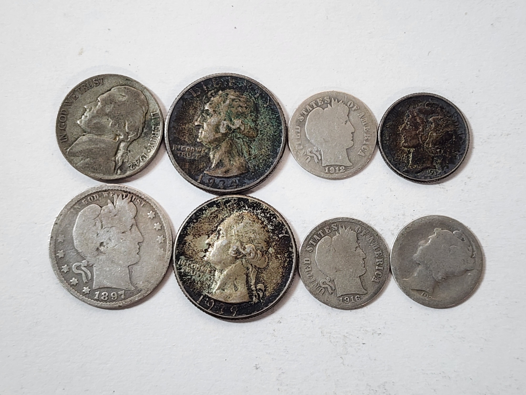 Assortment of U.S. Silver Coins: (1) Silver Wartime Nickel; 90% Silver FV: $1.15