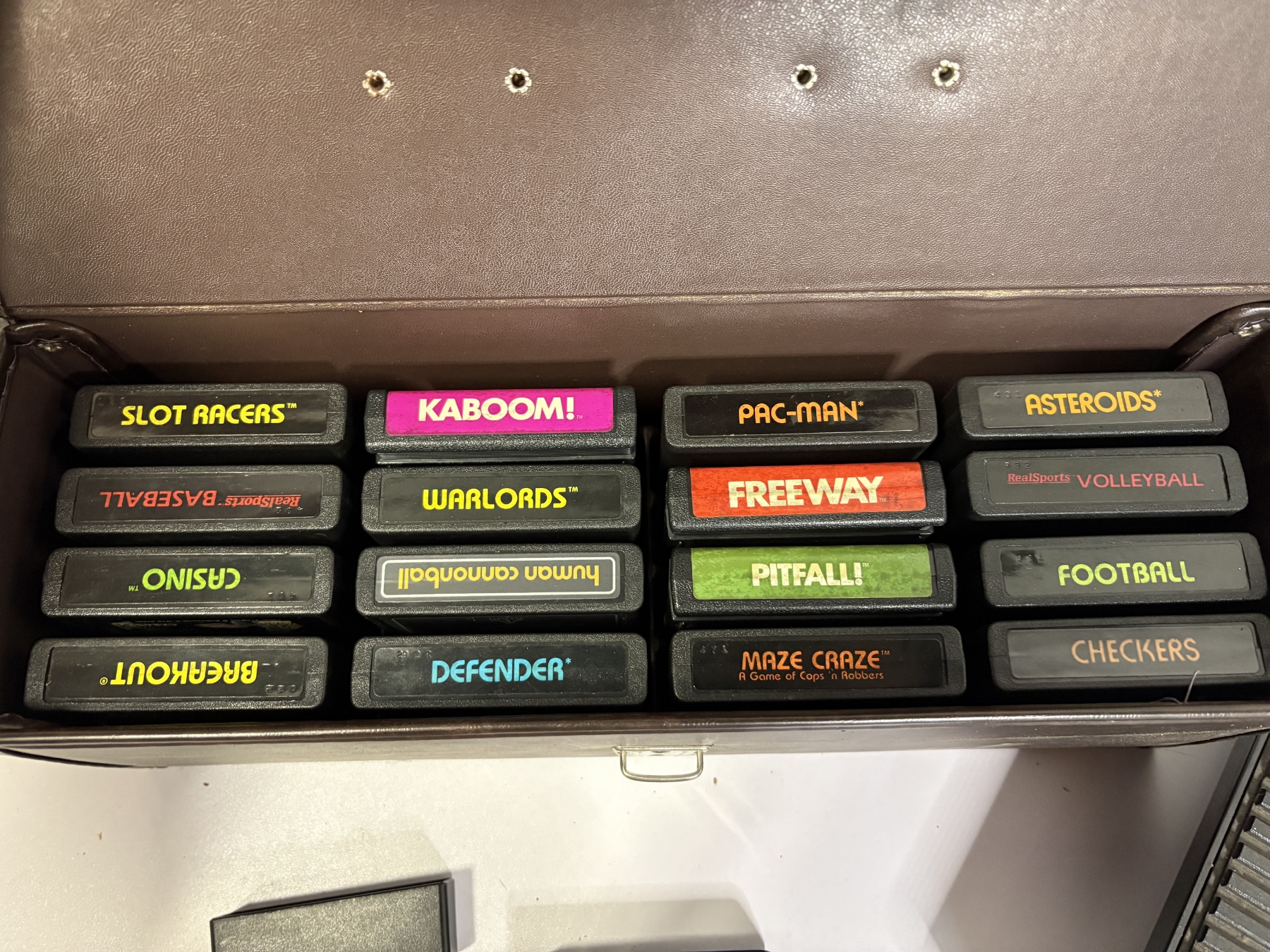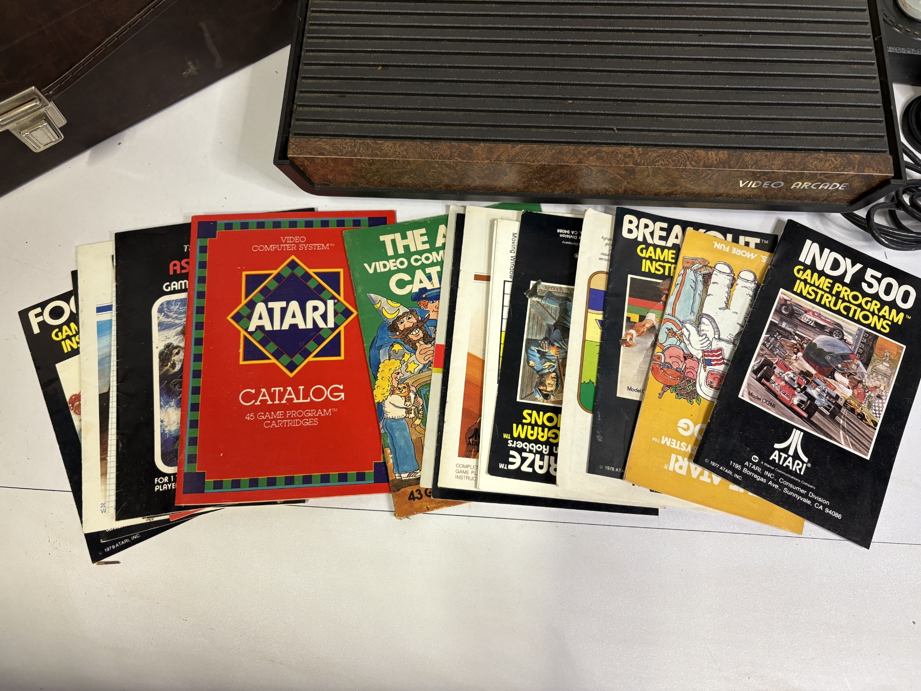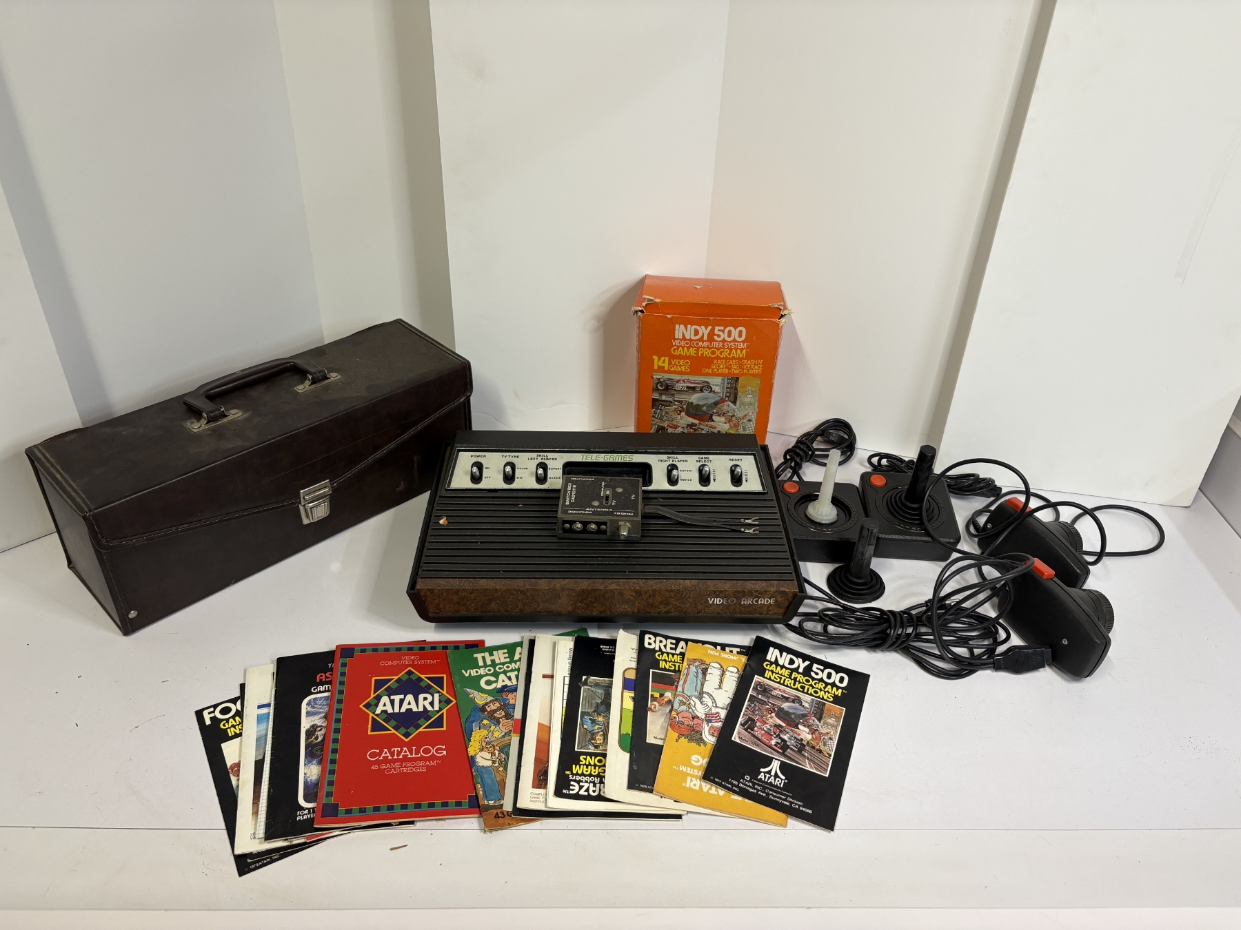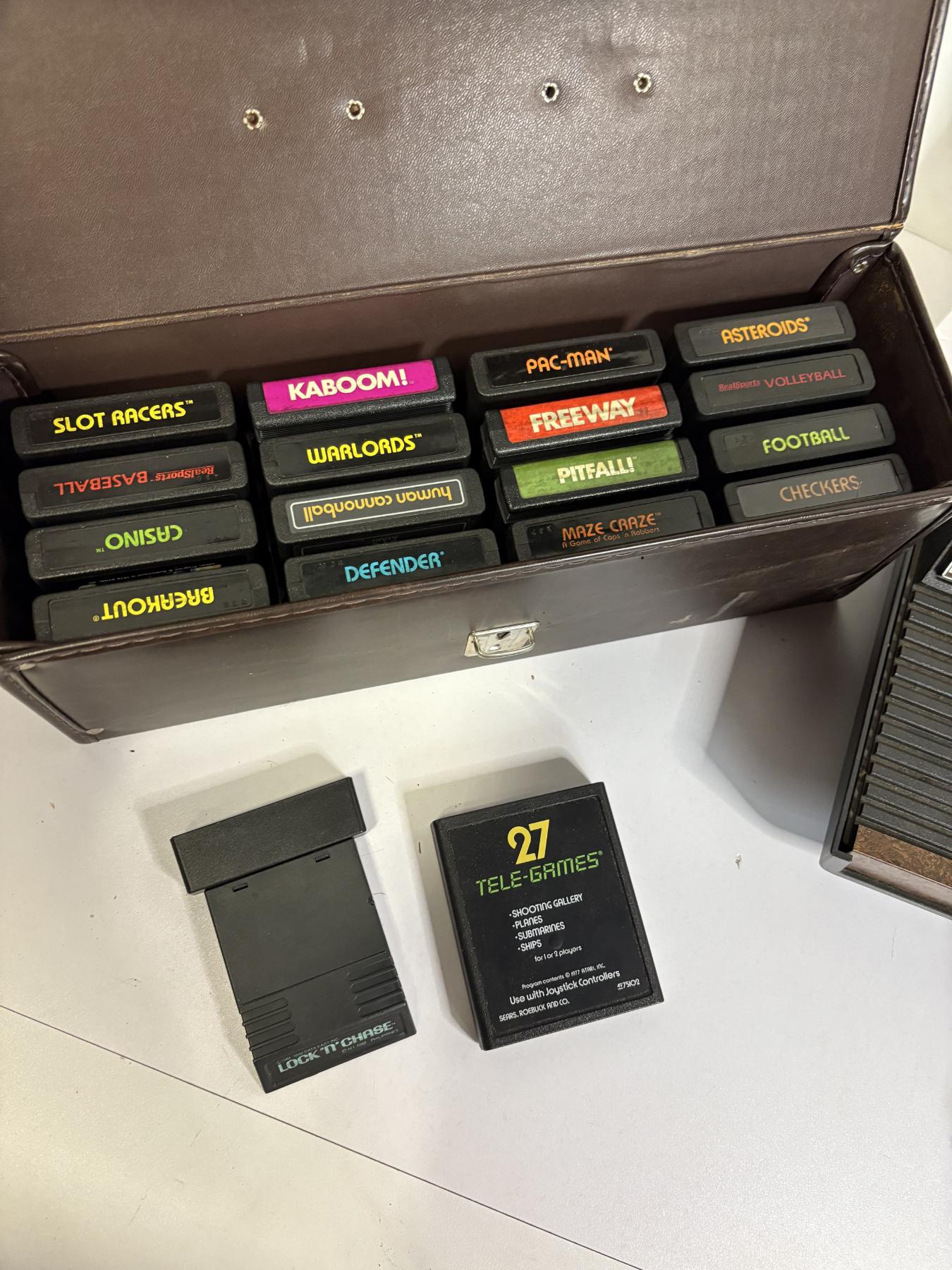 Atari System & Accessories - Atari Video Games in Box (12 Count) - Tele-Games - Video Arcade - Indy 500 Video Computer System Game Program - Controllers - Instruction Manuals - Slot Racers - Kaboom! - Defender - Freeway - Football - Pac-Man - etc.