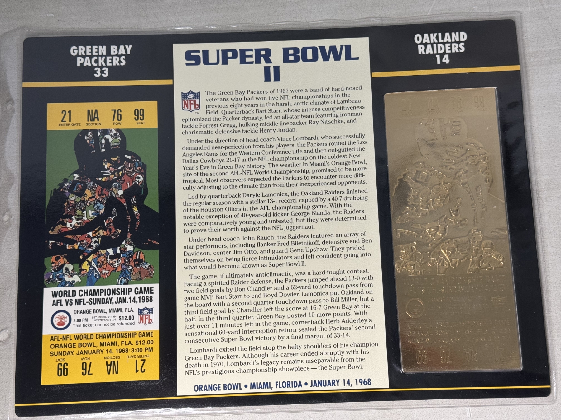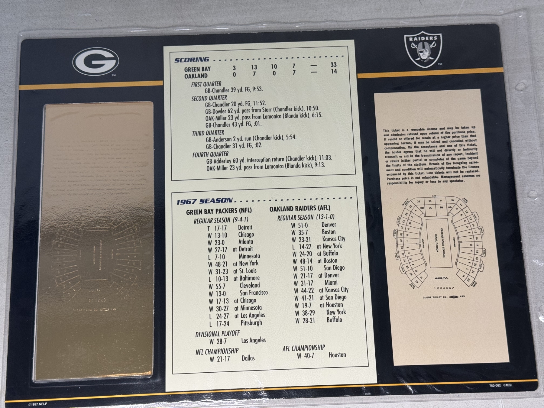 Authentic 1968 Super Bowl II NFL Football Ticket & 24K Gold Plated Ticket - Mint Condition