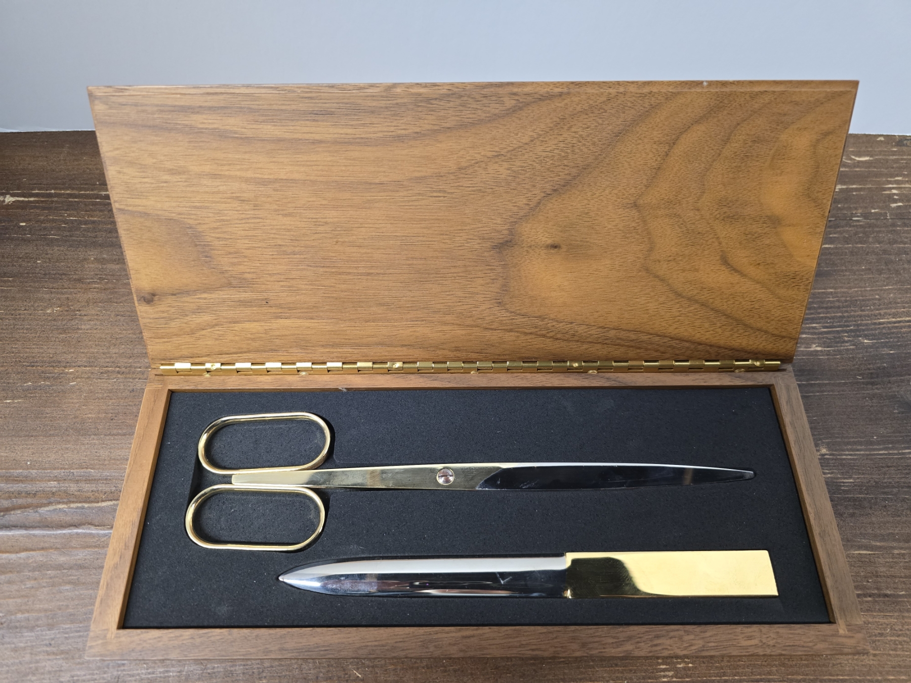B.F. Goodrich Commemorative Scissor and Letter Opener Set in Wooden Case Approx. 11x4.5