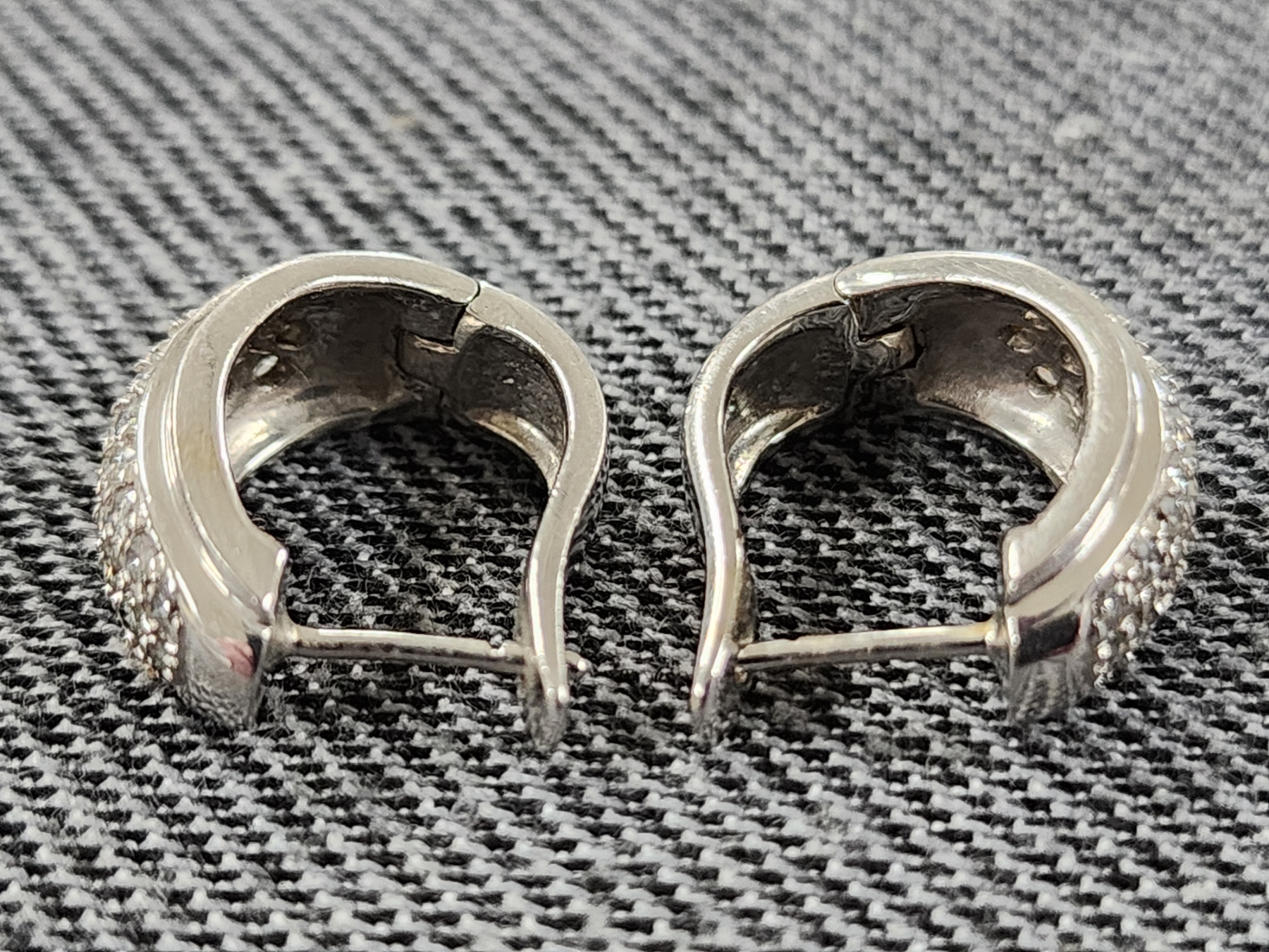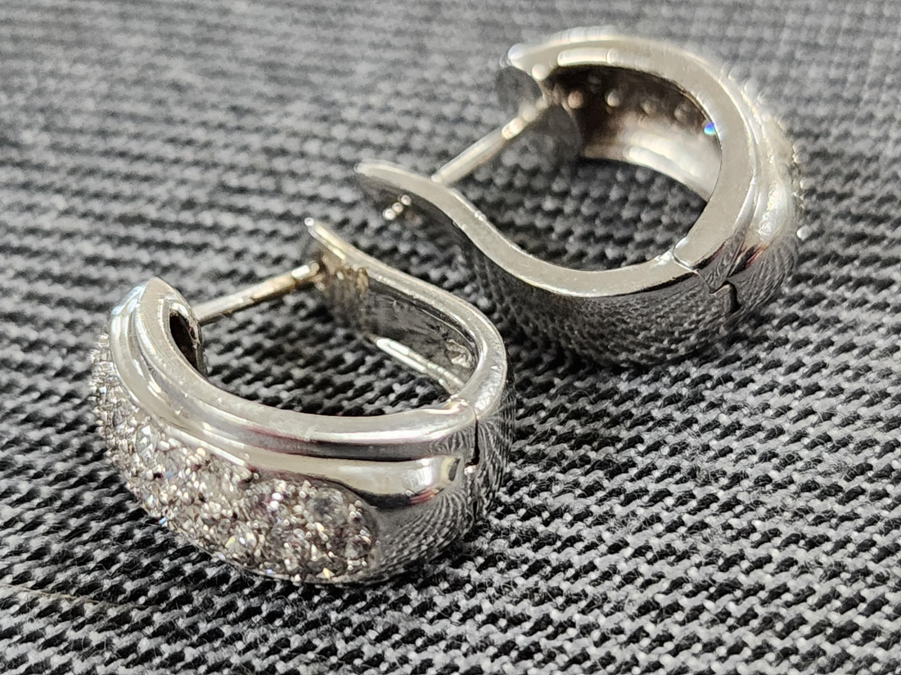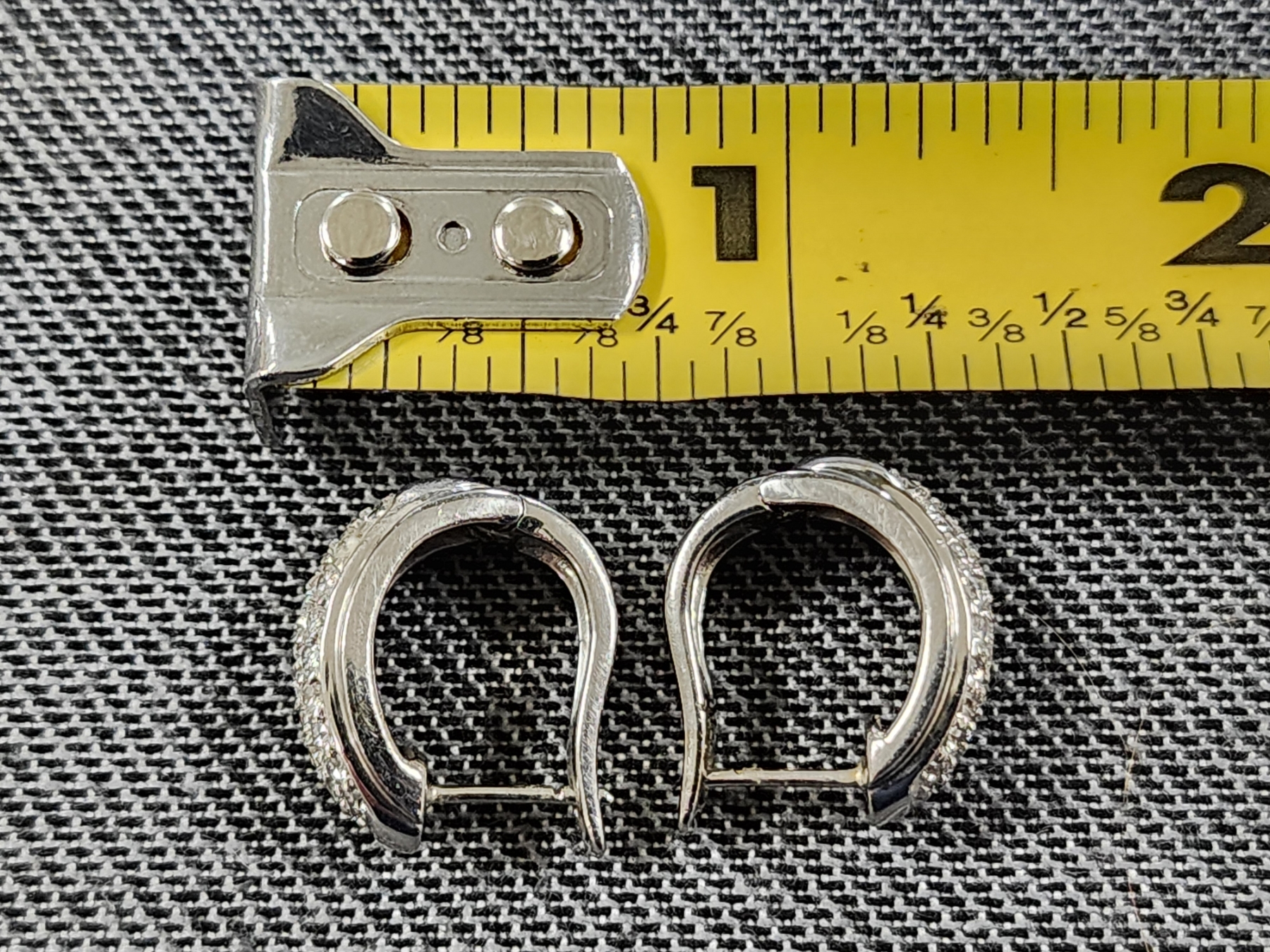 BEAUTIFUL 14K White Gold Hoop Earrings Featuring 54 Round Diamonds
