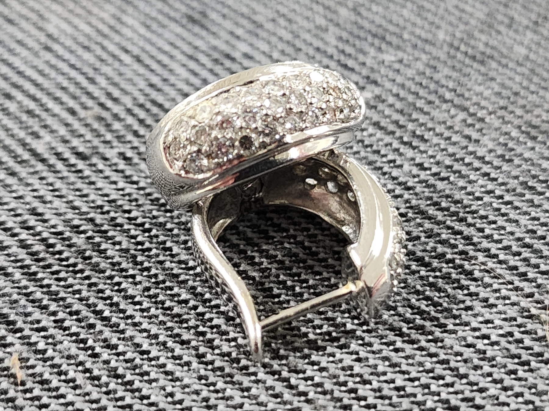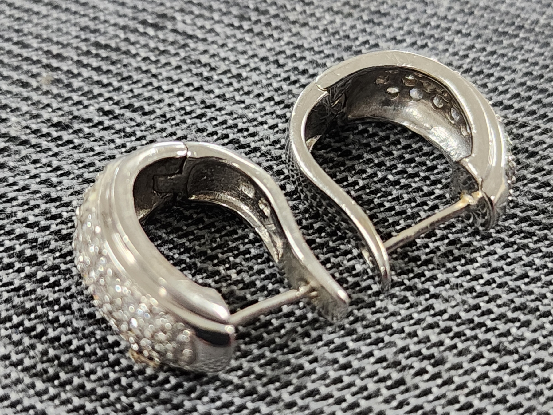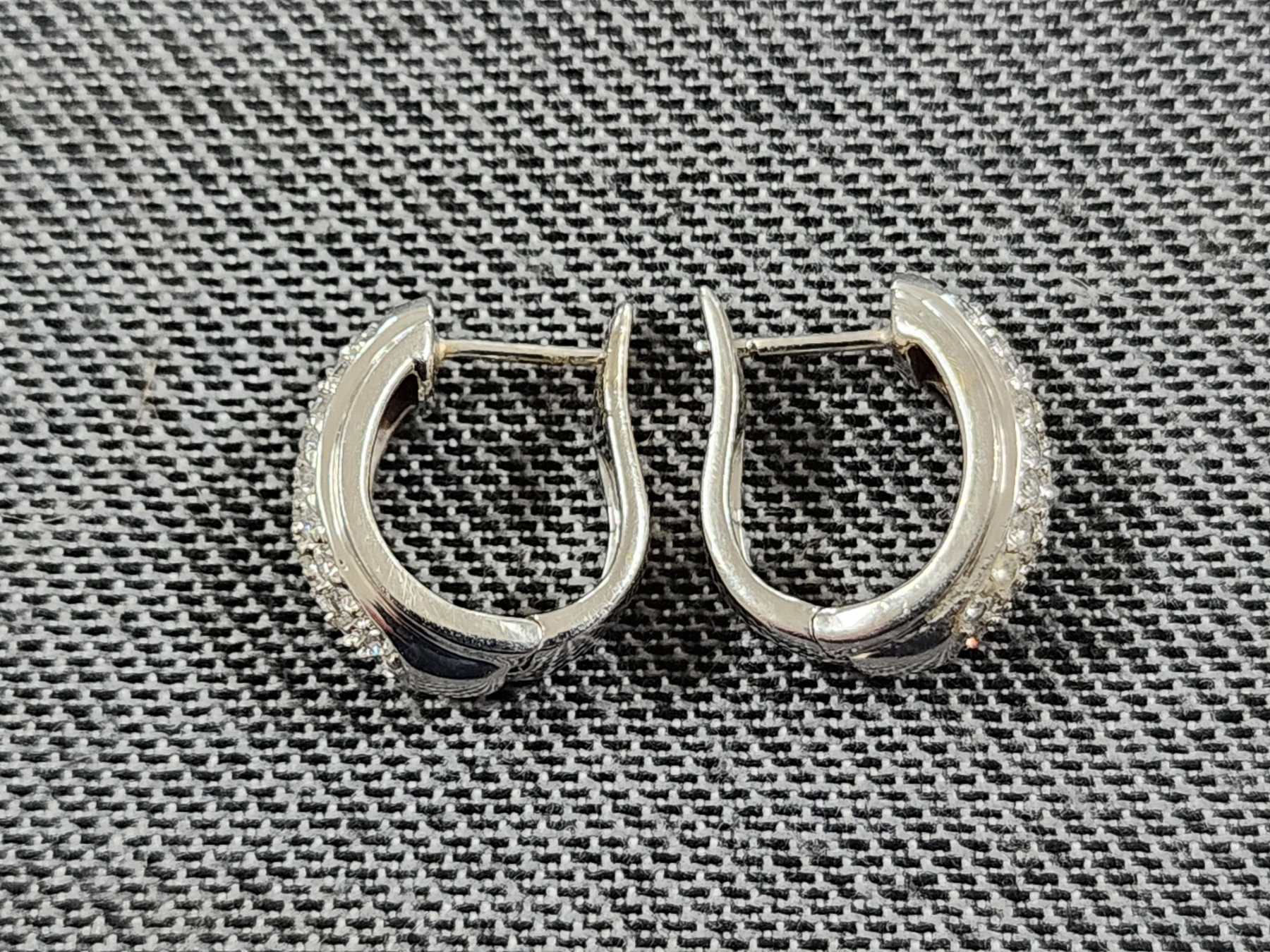BEAUTIFUL 14K White Gold Hoop Earrings Featuring 54 Round Diamonds