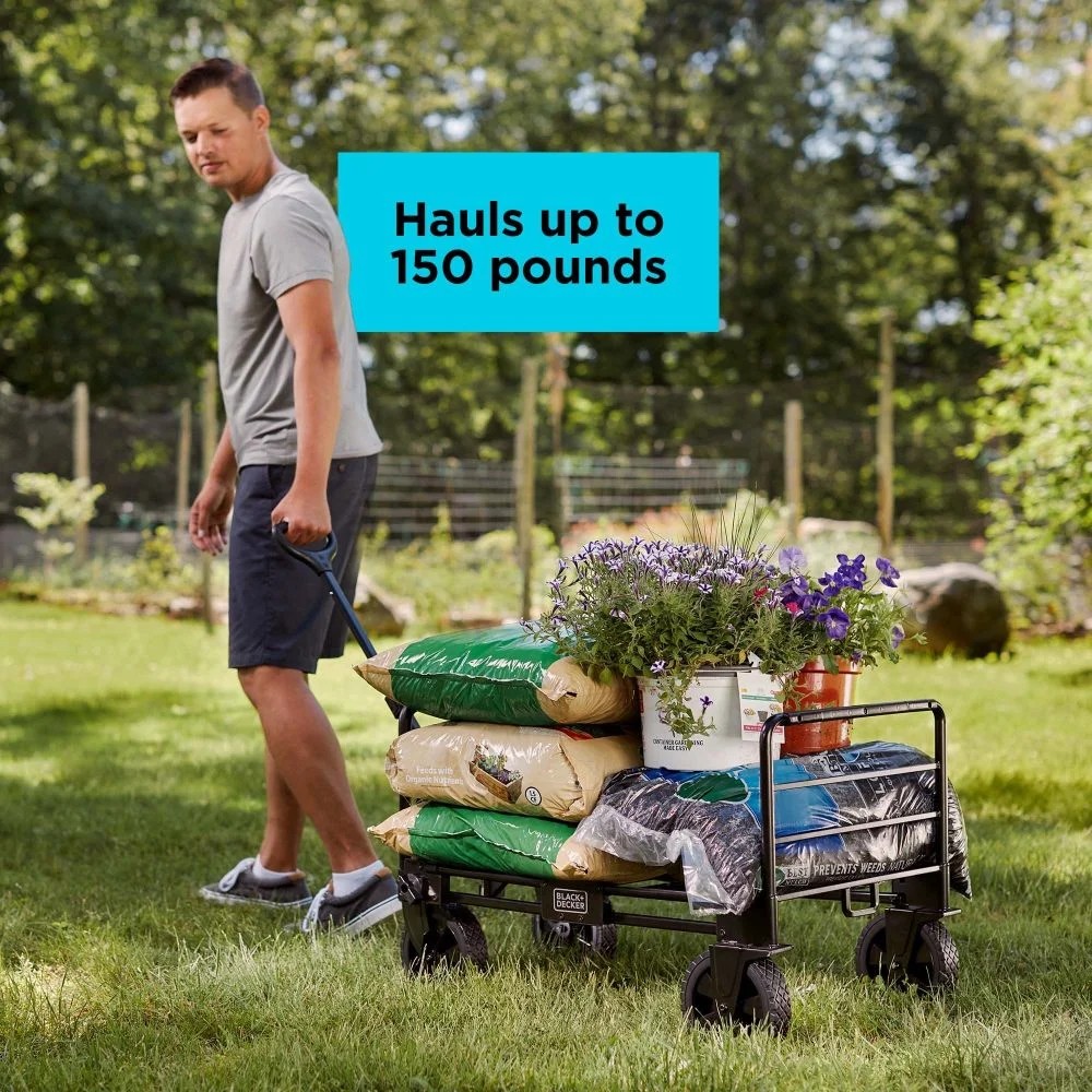 BLACK+DECKER 3 in 1 Collapsible Storage Cart, Utility Wagon, Hand Truck, Black (BDST3IN1CTFF)