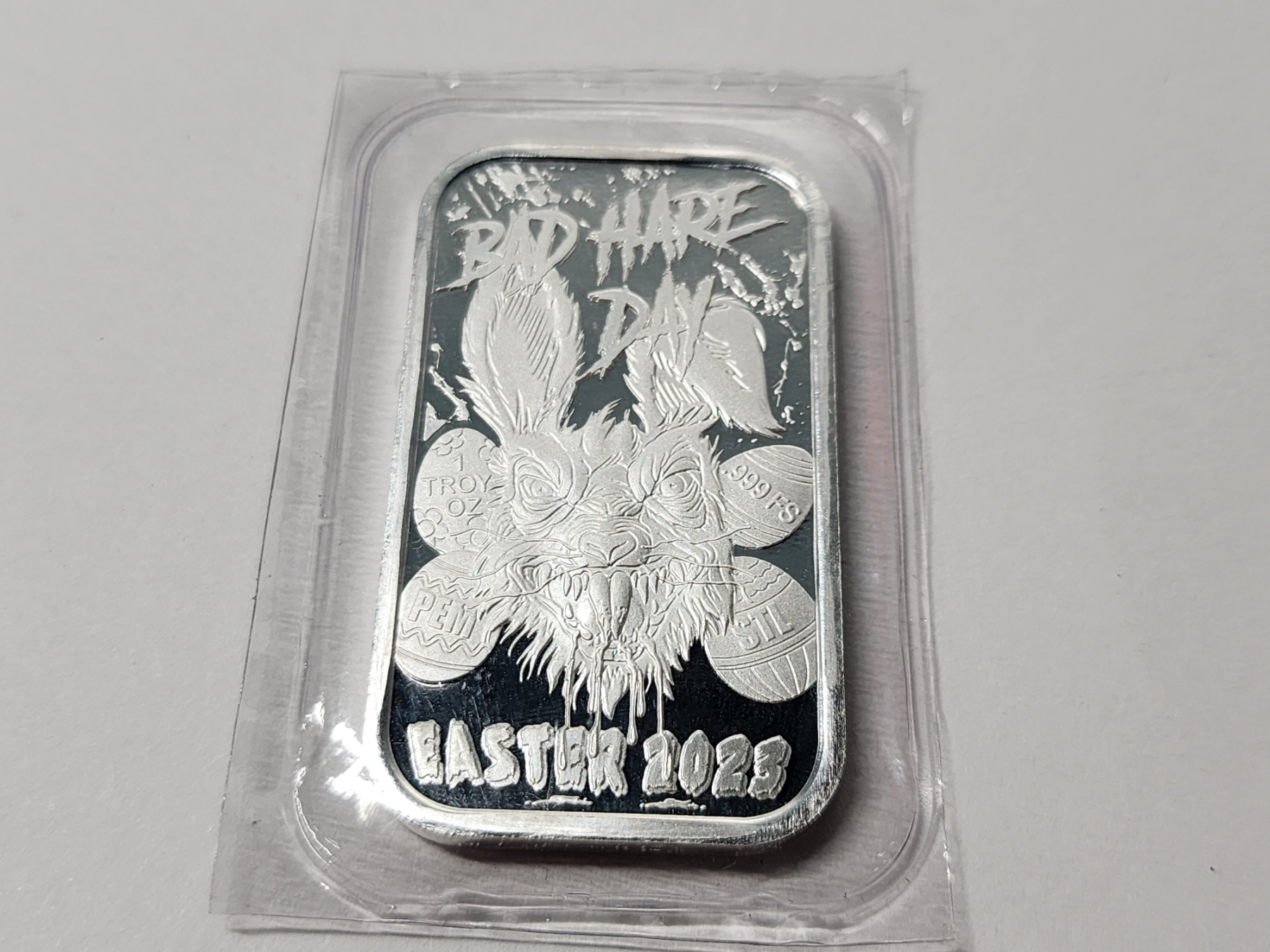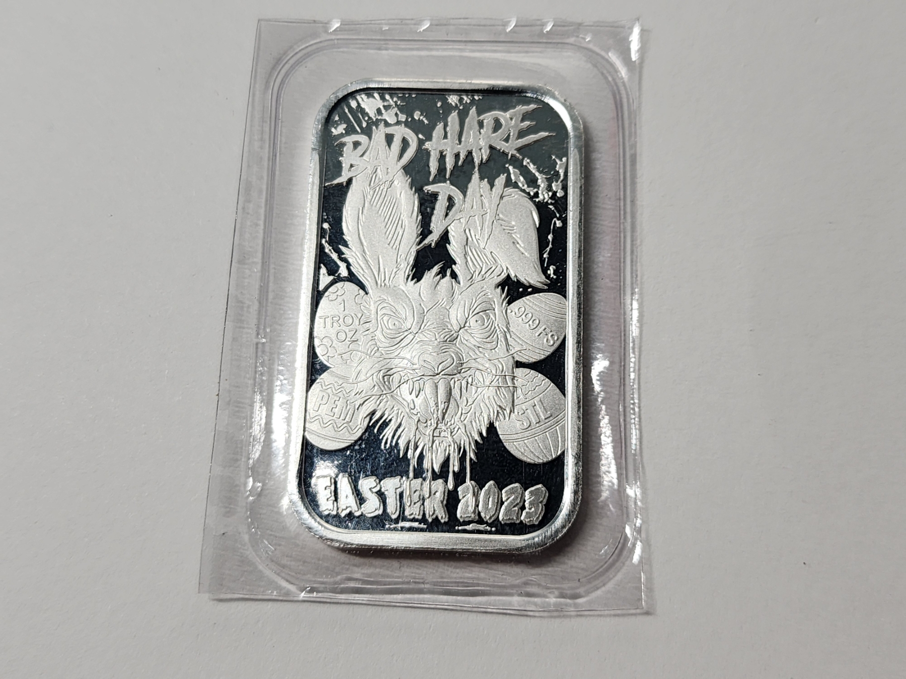 "Bad Hare Day / Egg Rush" Easter 2023 1oz .999 Fine Silver Art Bar Mintage 300!
