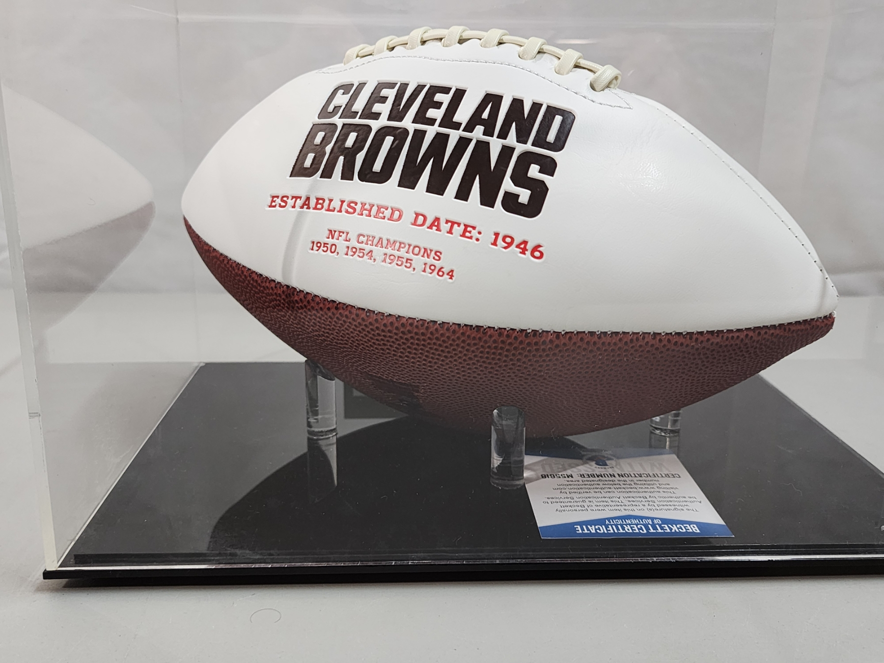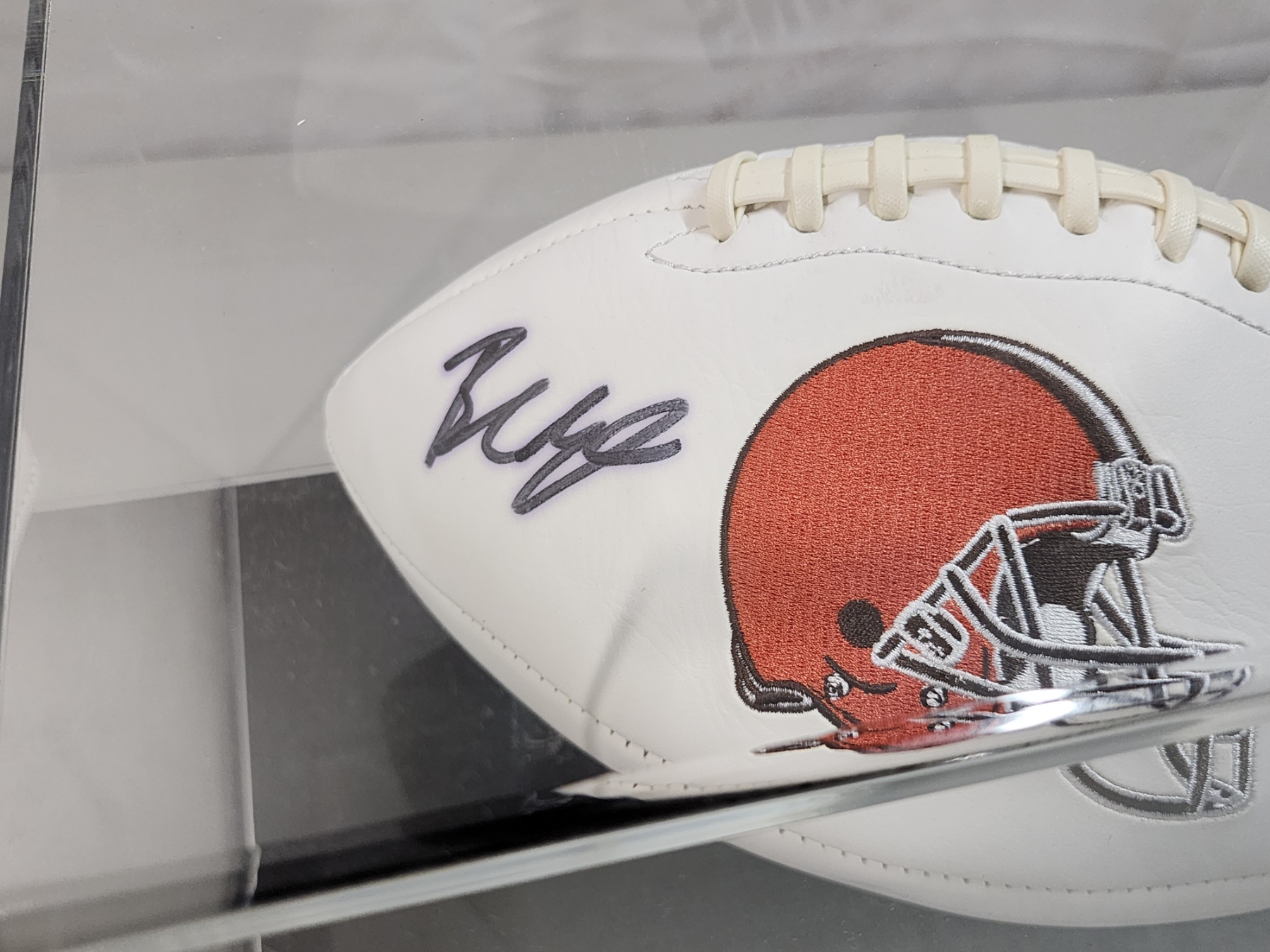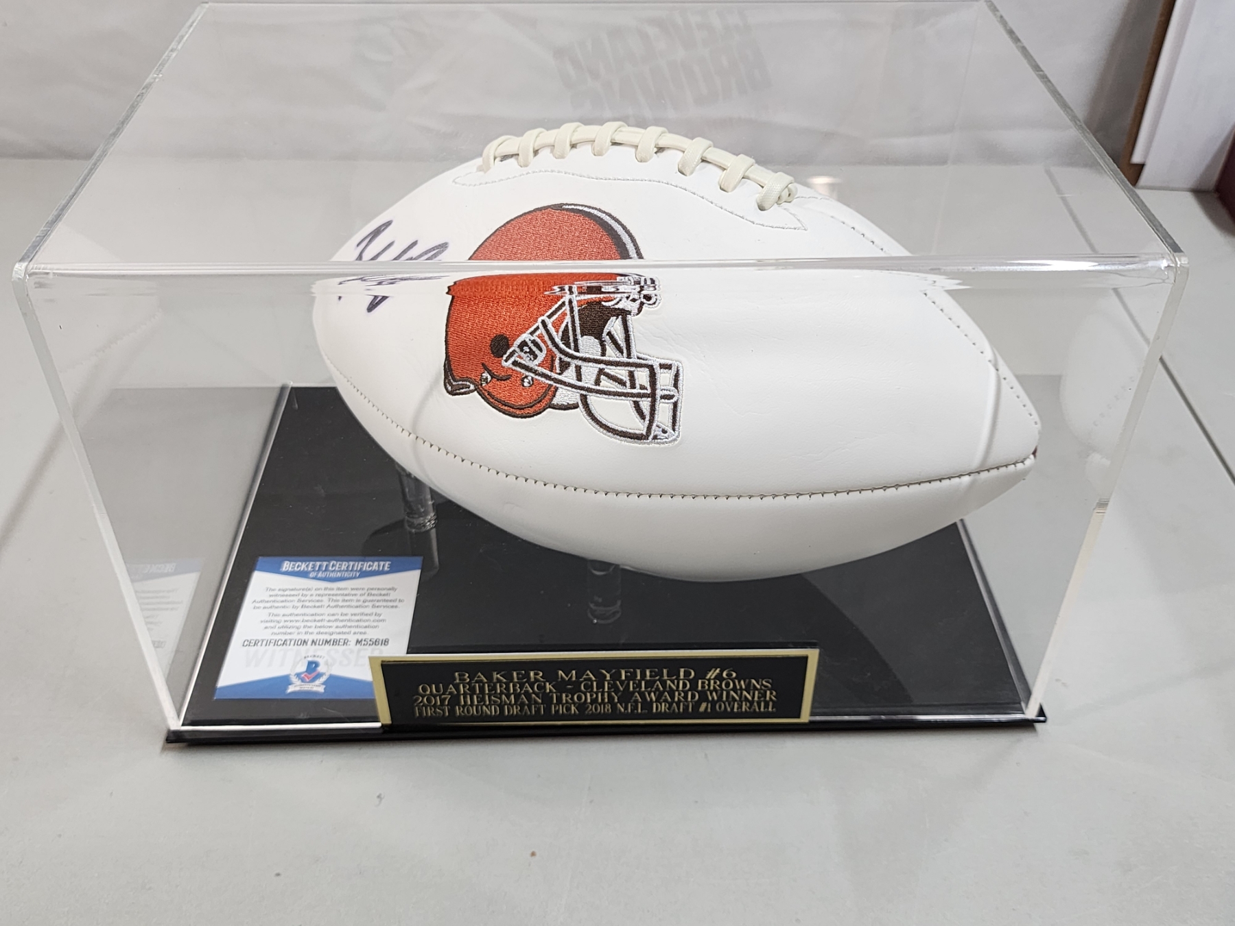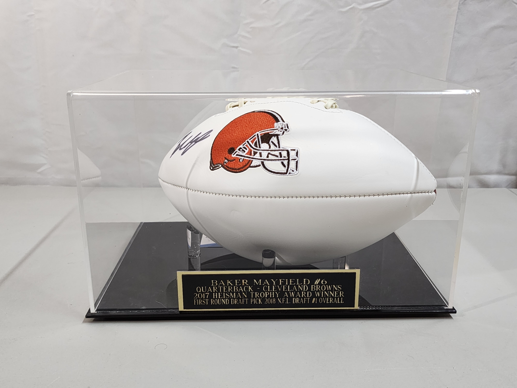 Baker Mayfield Cleveland Browns Autographed Football - Beckett Certified in Display Case
