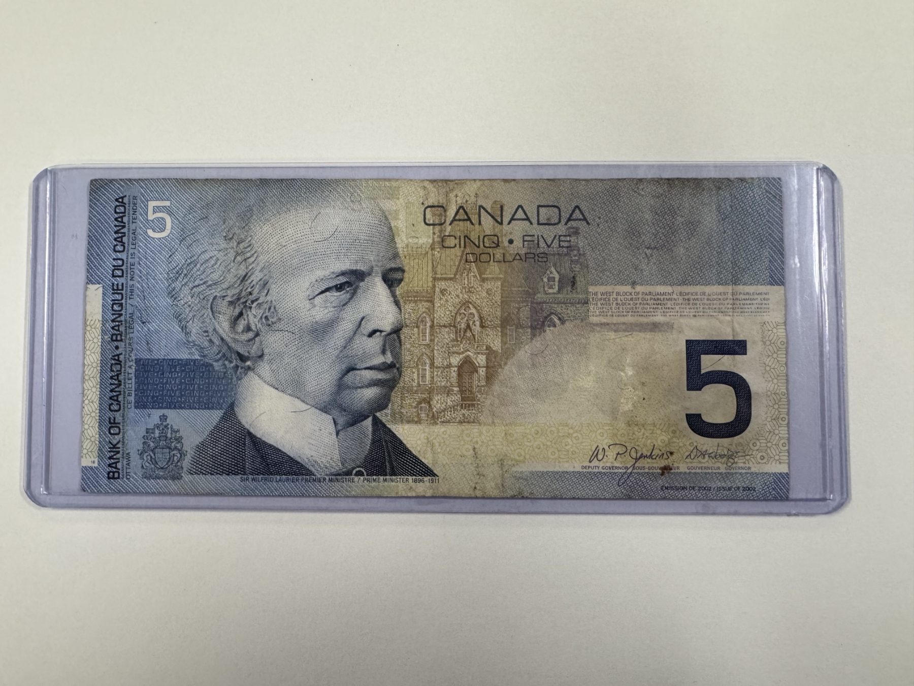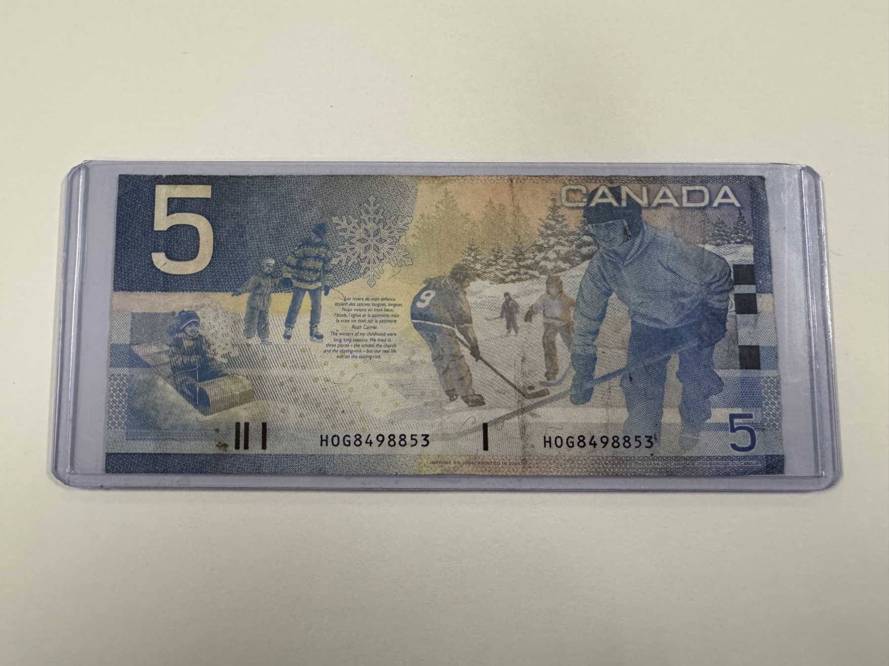 Bank Of Canada $5.00 Dollar Ice Hockey Note In Protective Holder - Great Piece