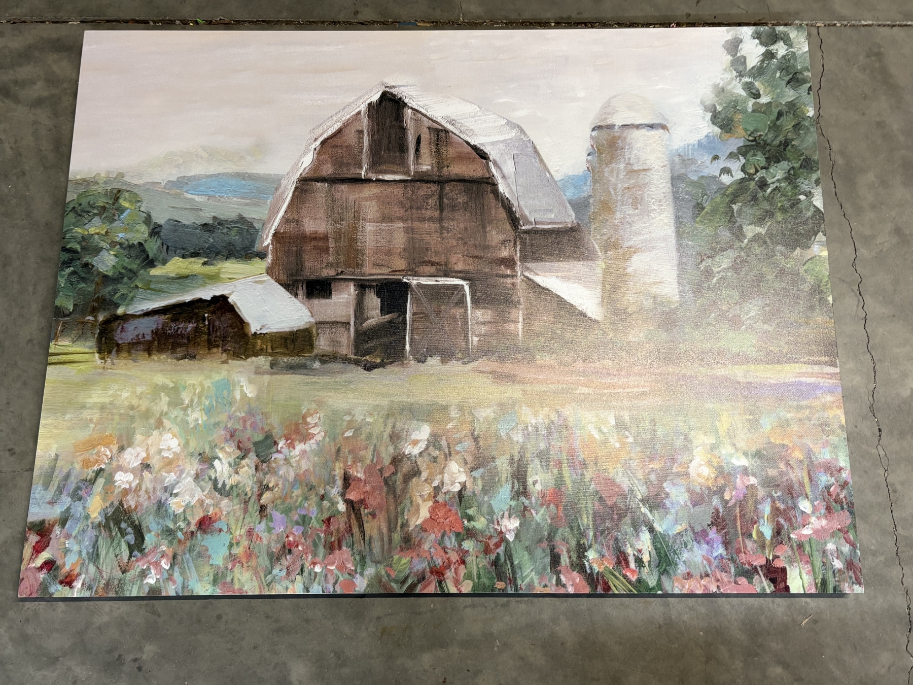 Barn Canvas Photo with Flower Field - 30x40"