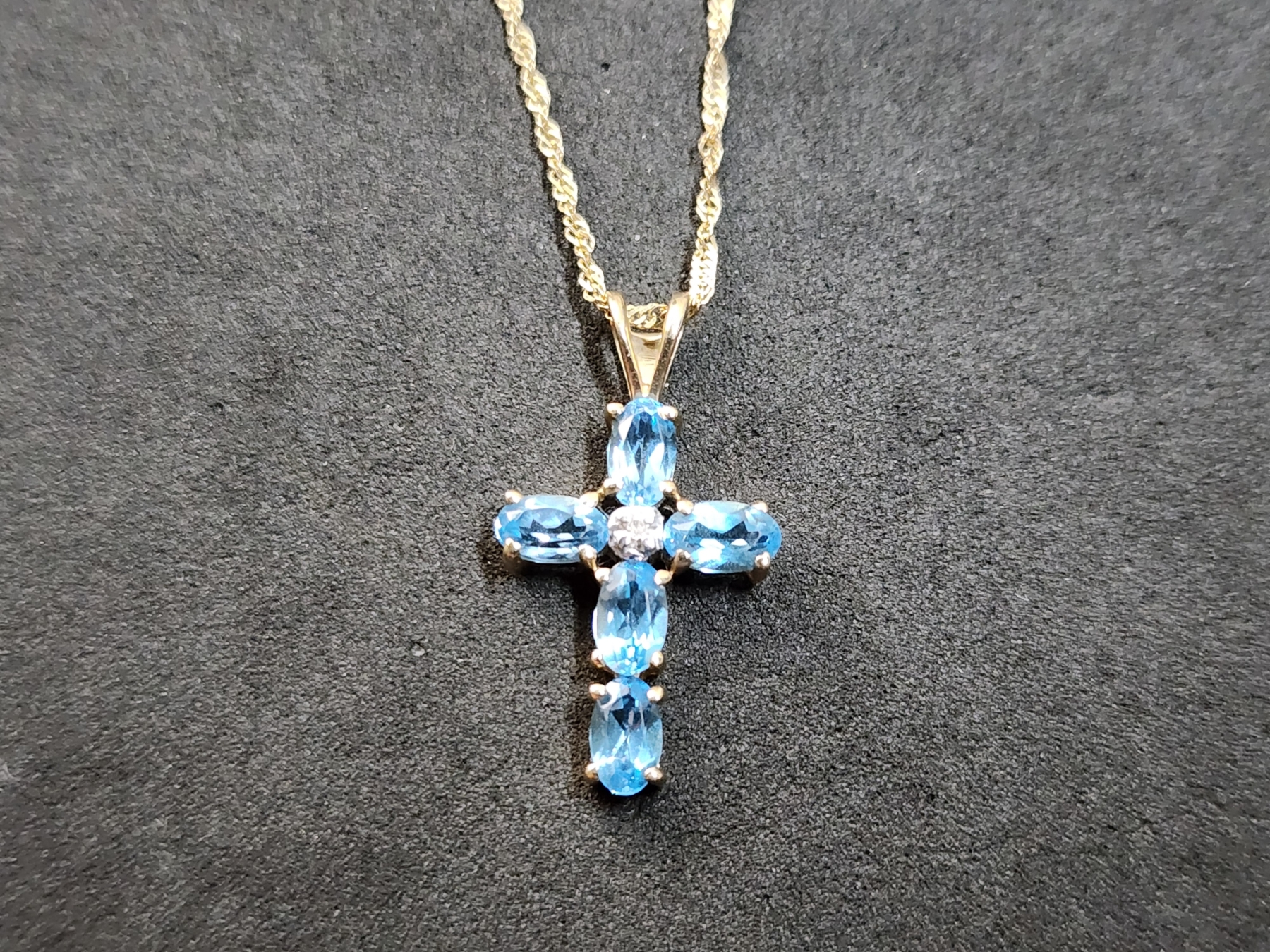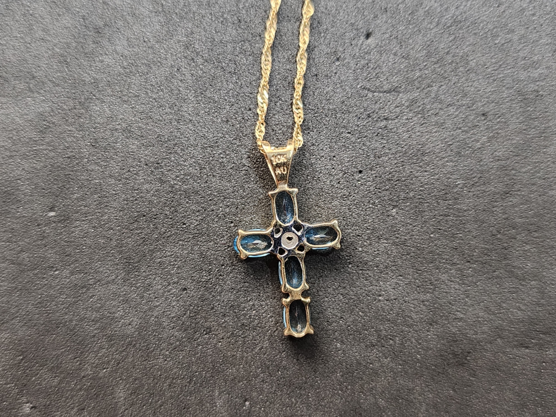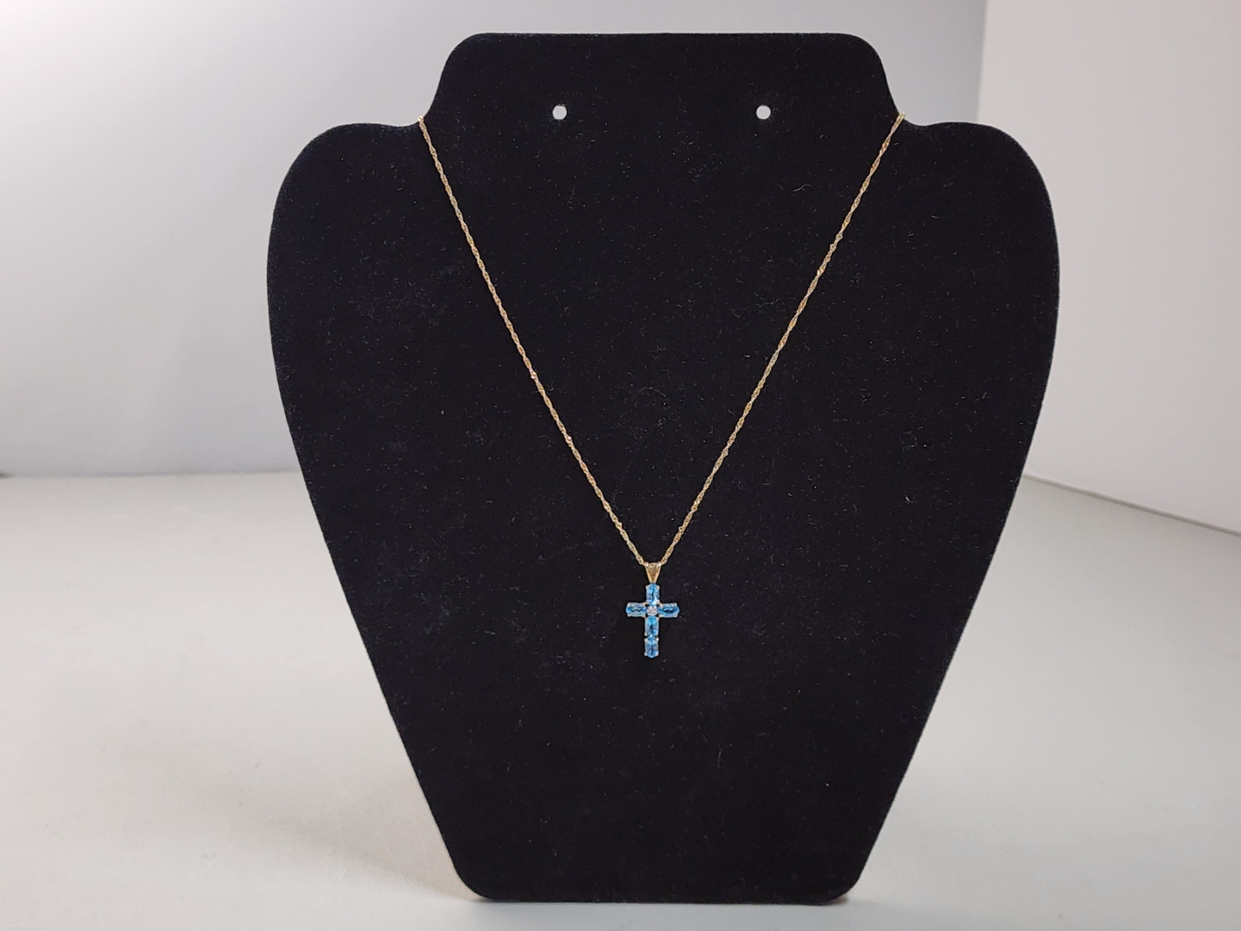 Beautiful 10K Gold Cross 16in Necklace with Blue Stones Total Weight 2.0g