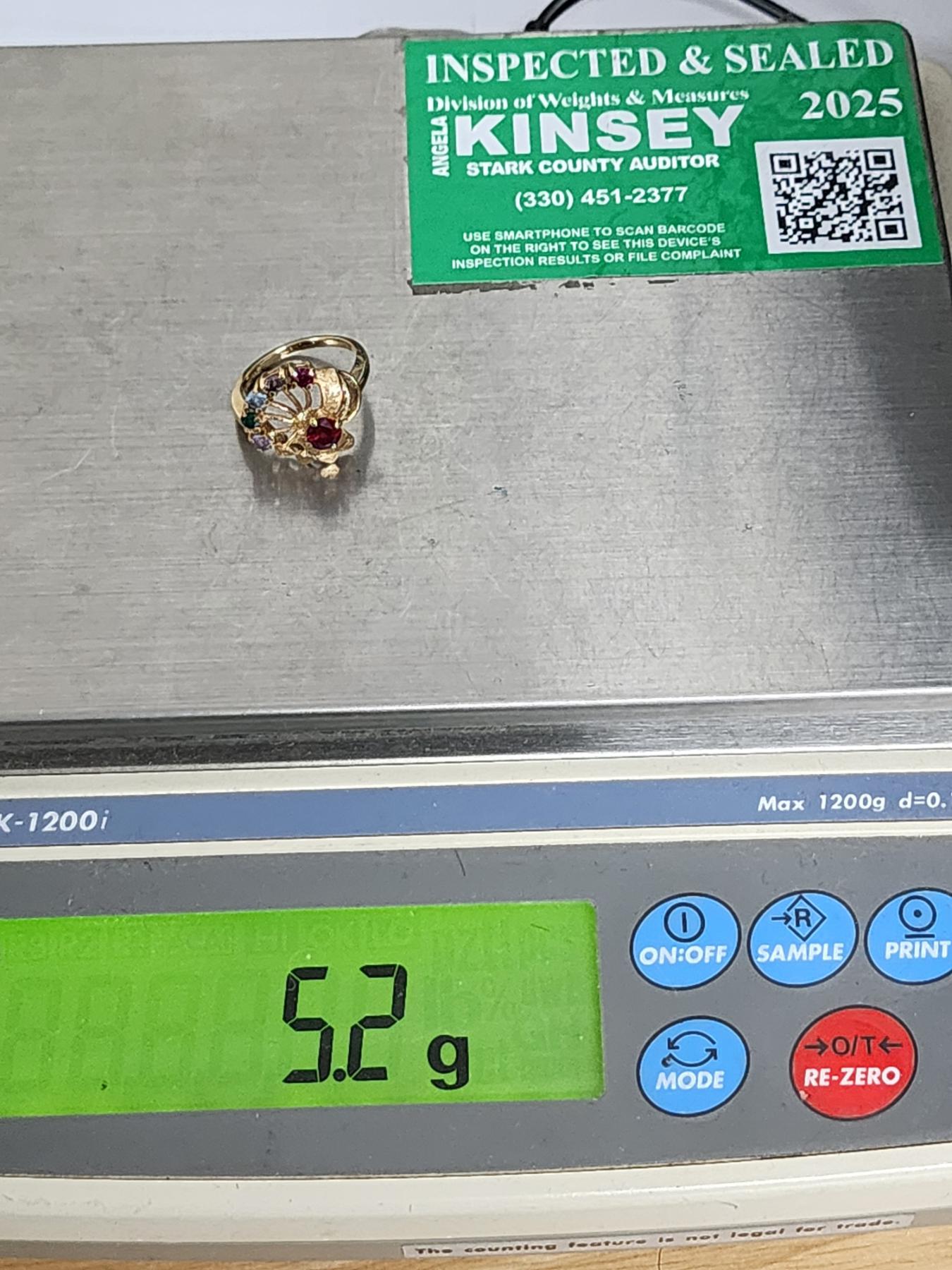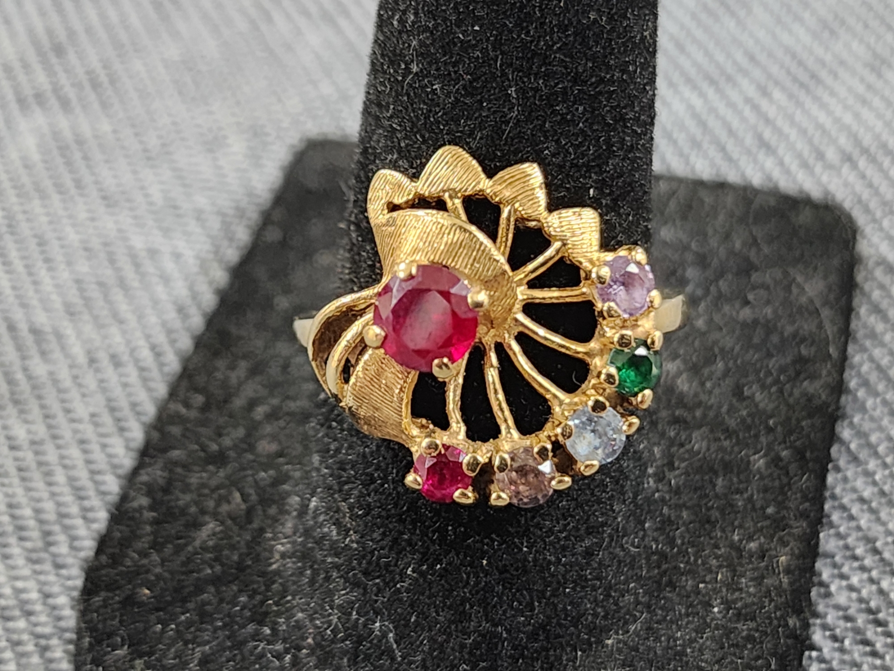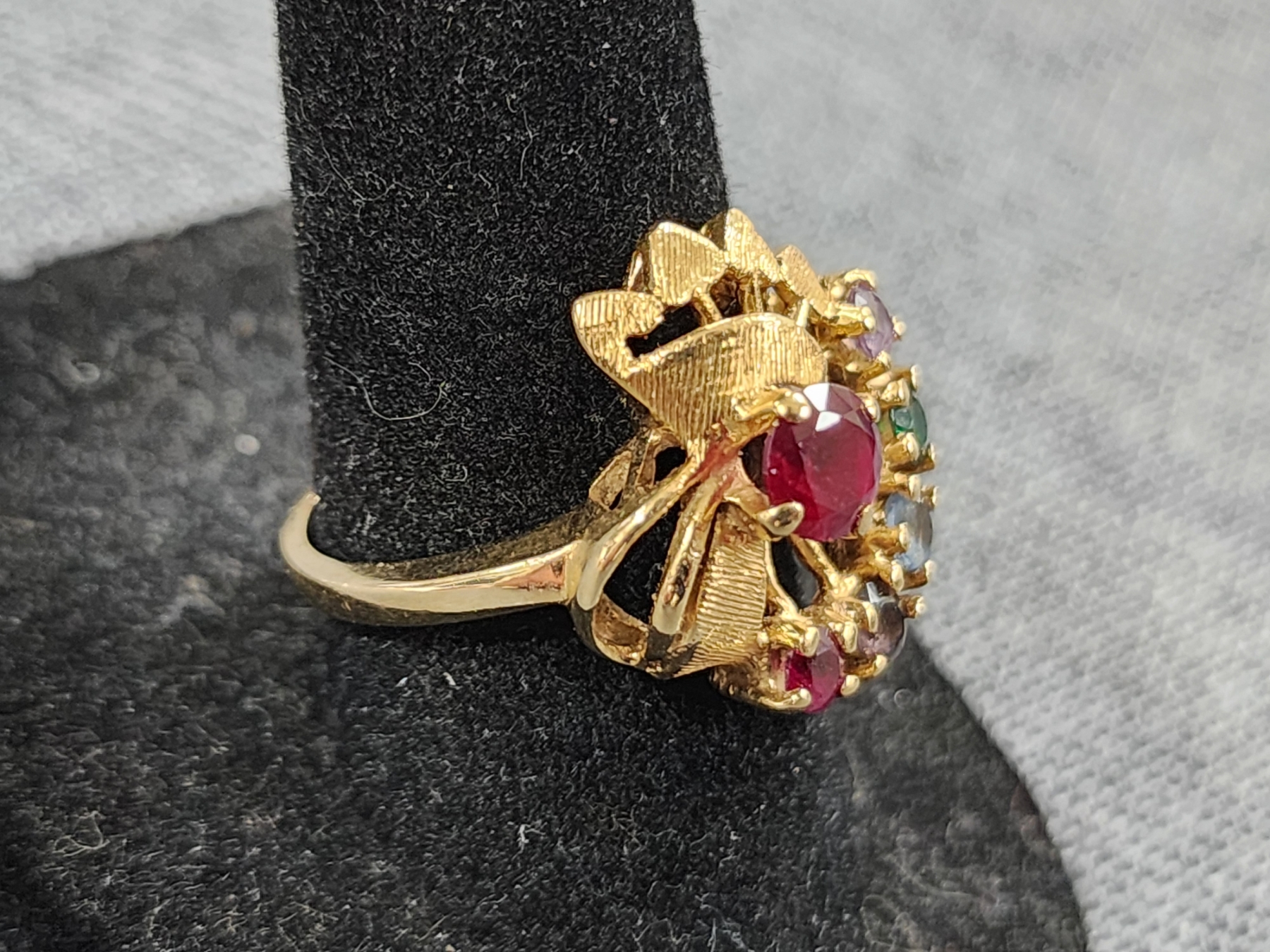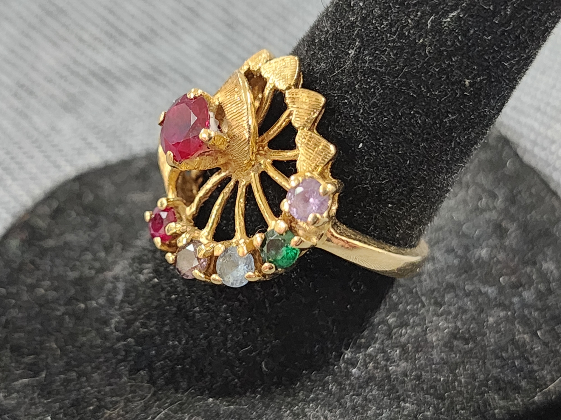 Beautiful 14K Gold Ring With Lovely Multi-Colored Stones - Weighs 5.2 Grams - Size 7.5