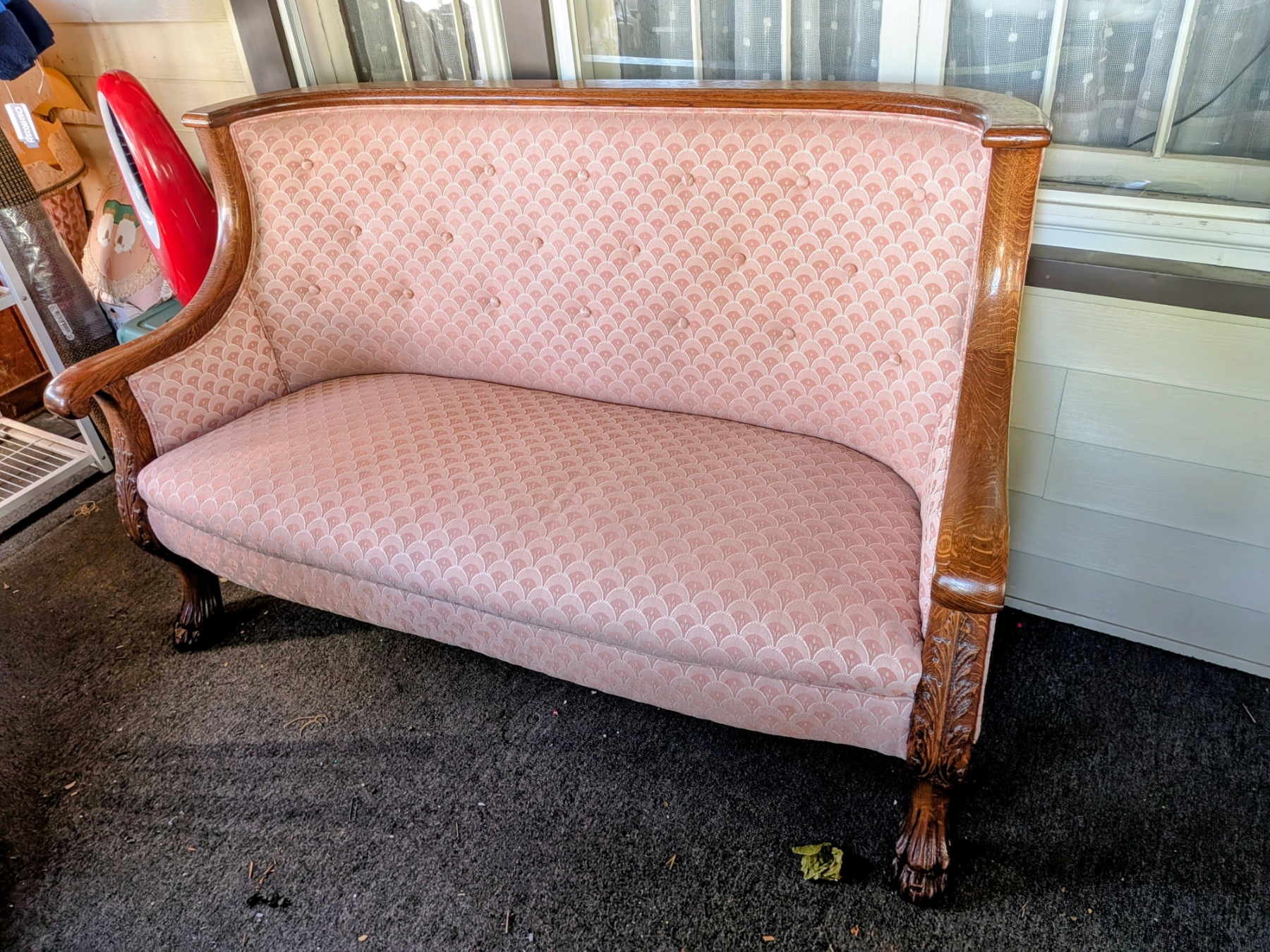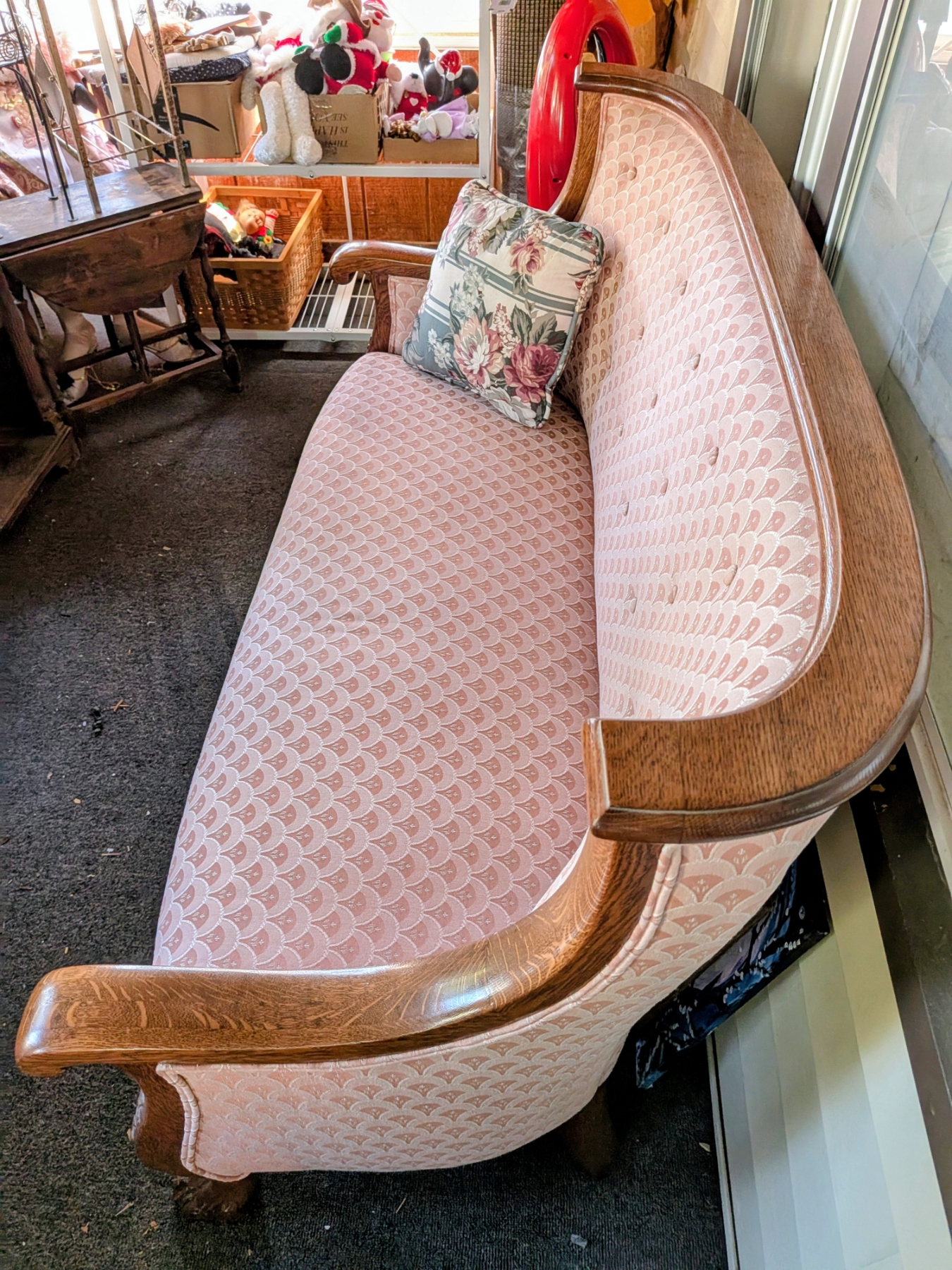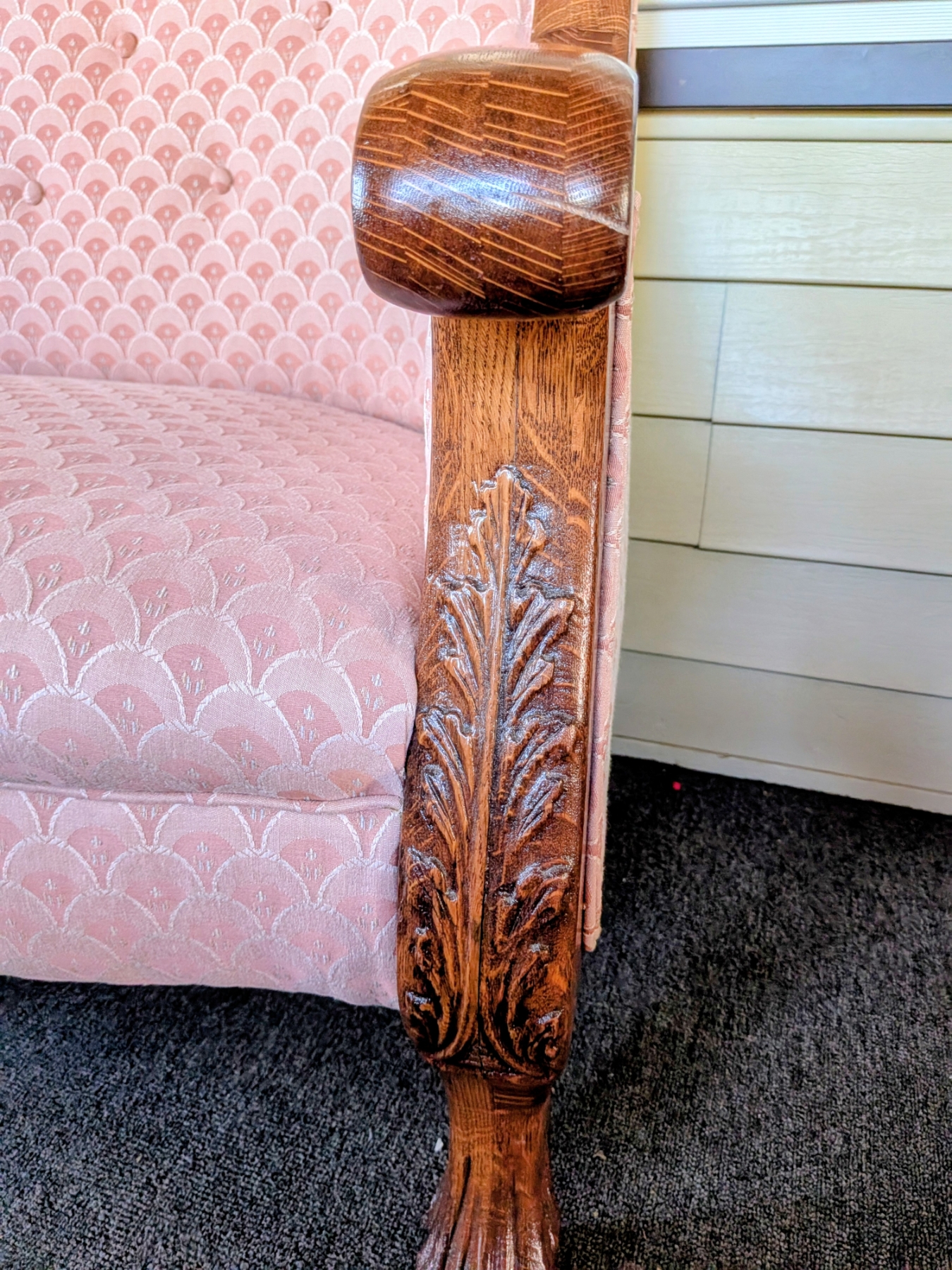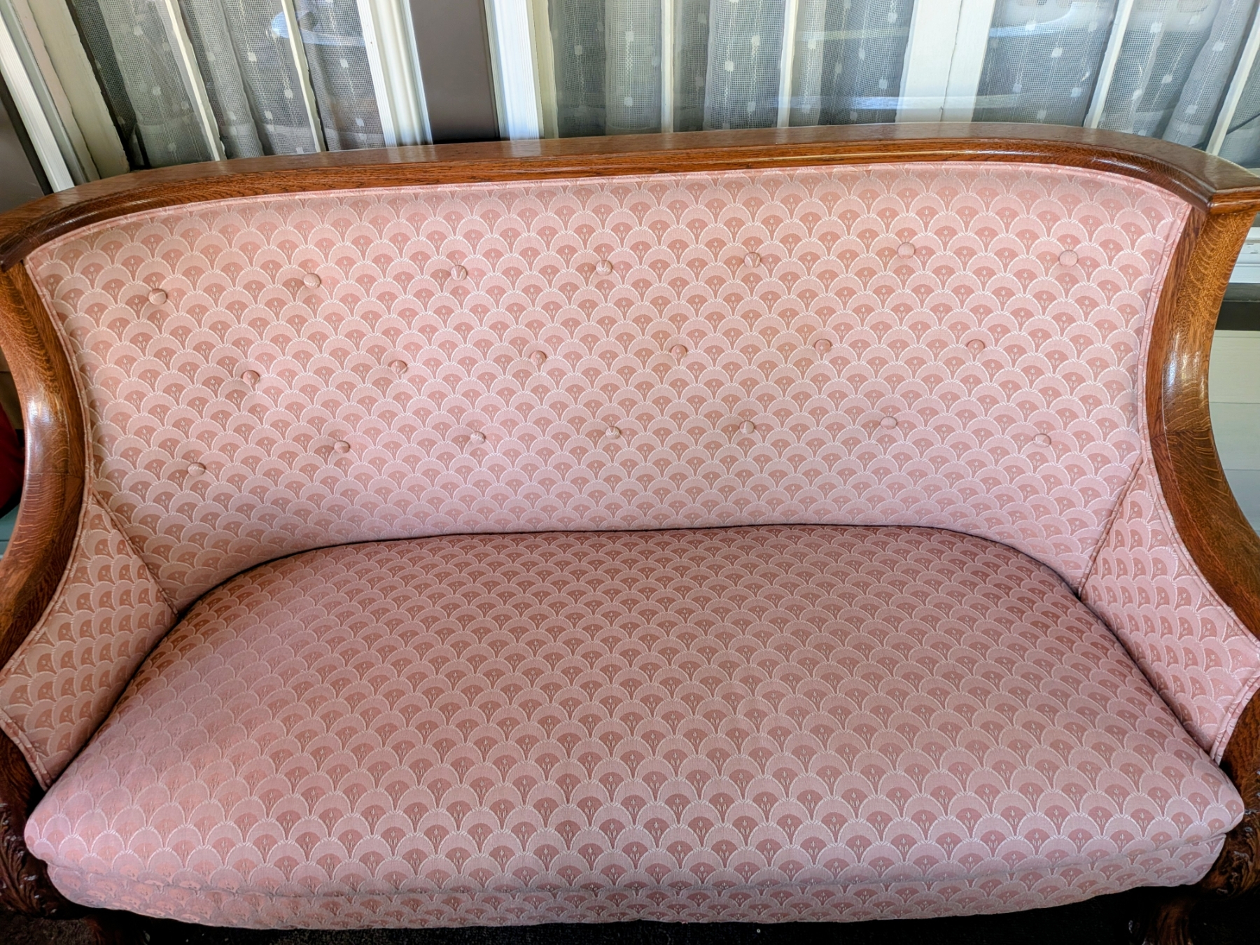 Beautiful French Style Pink Upholstered Settee 5ft Long, 25" Deep, 36" Tall