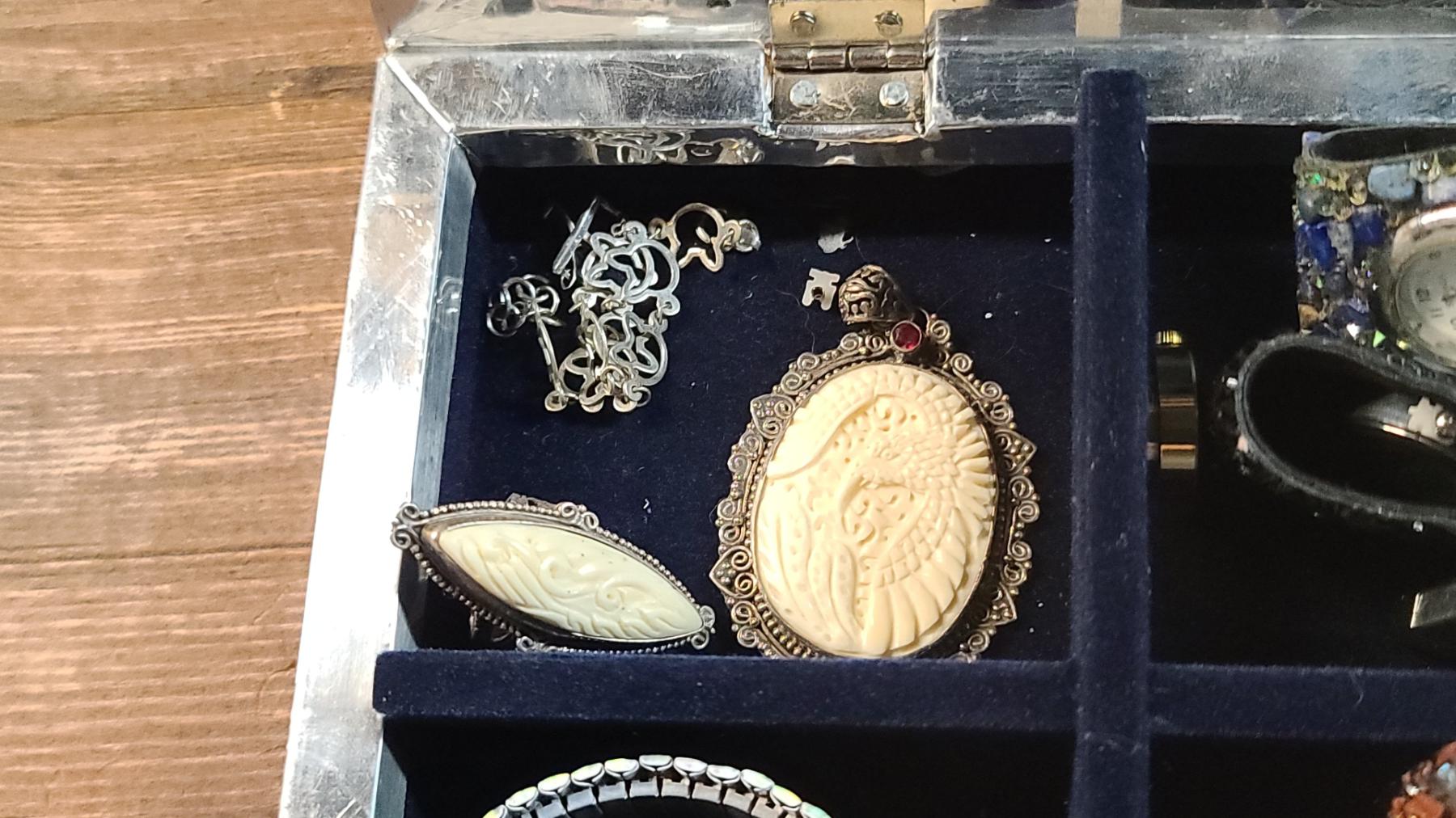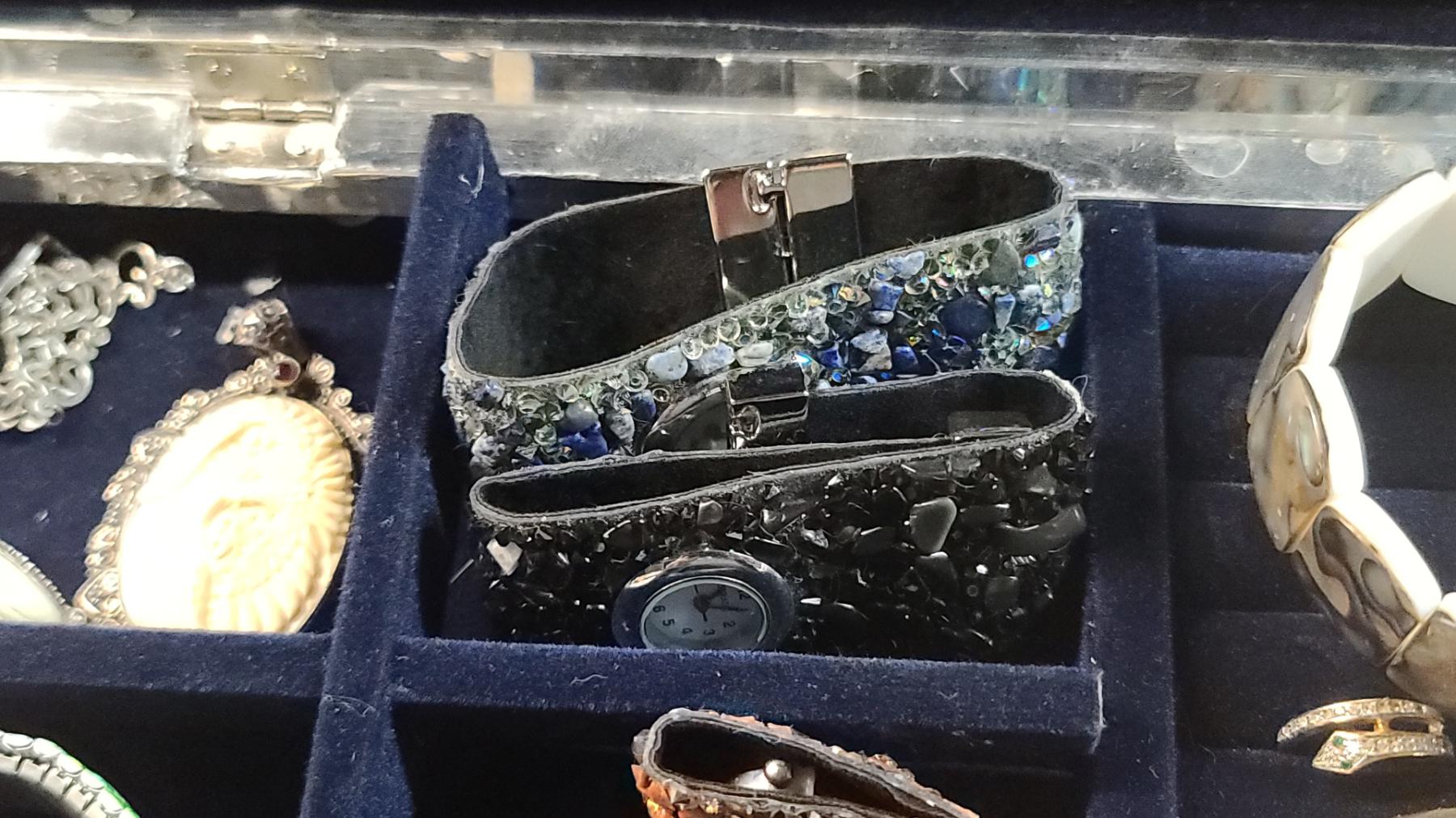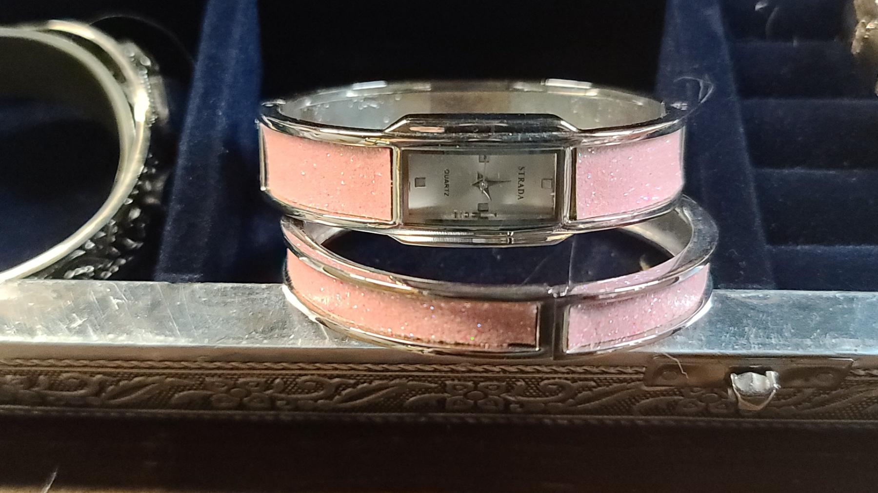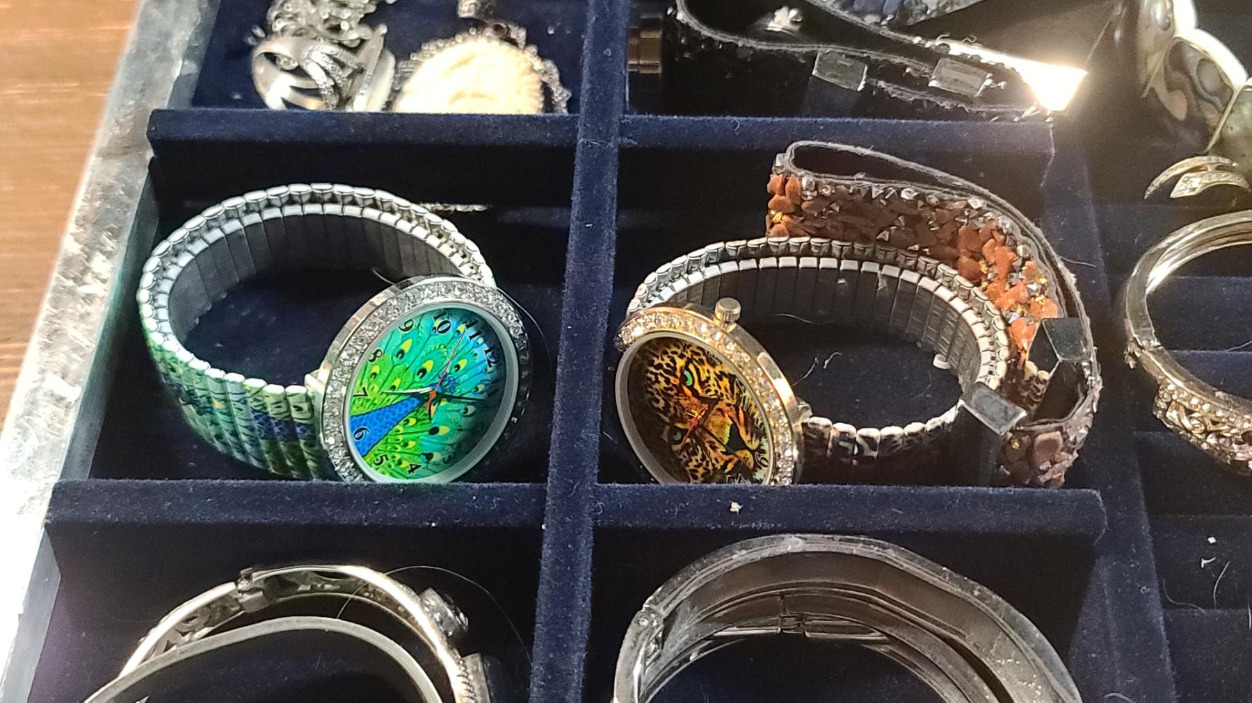 Beautiful Jewelry Box With Embossed Cat Motif & Fashion Watches, Bracelets & More