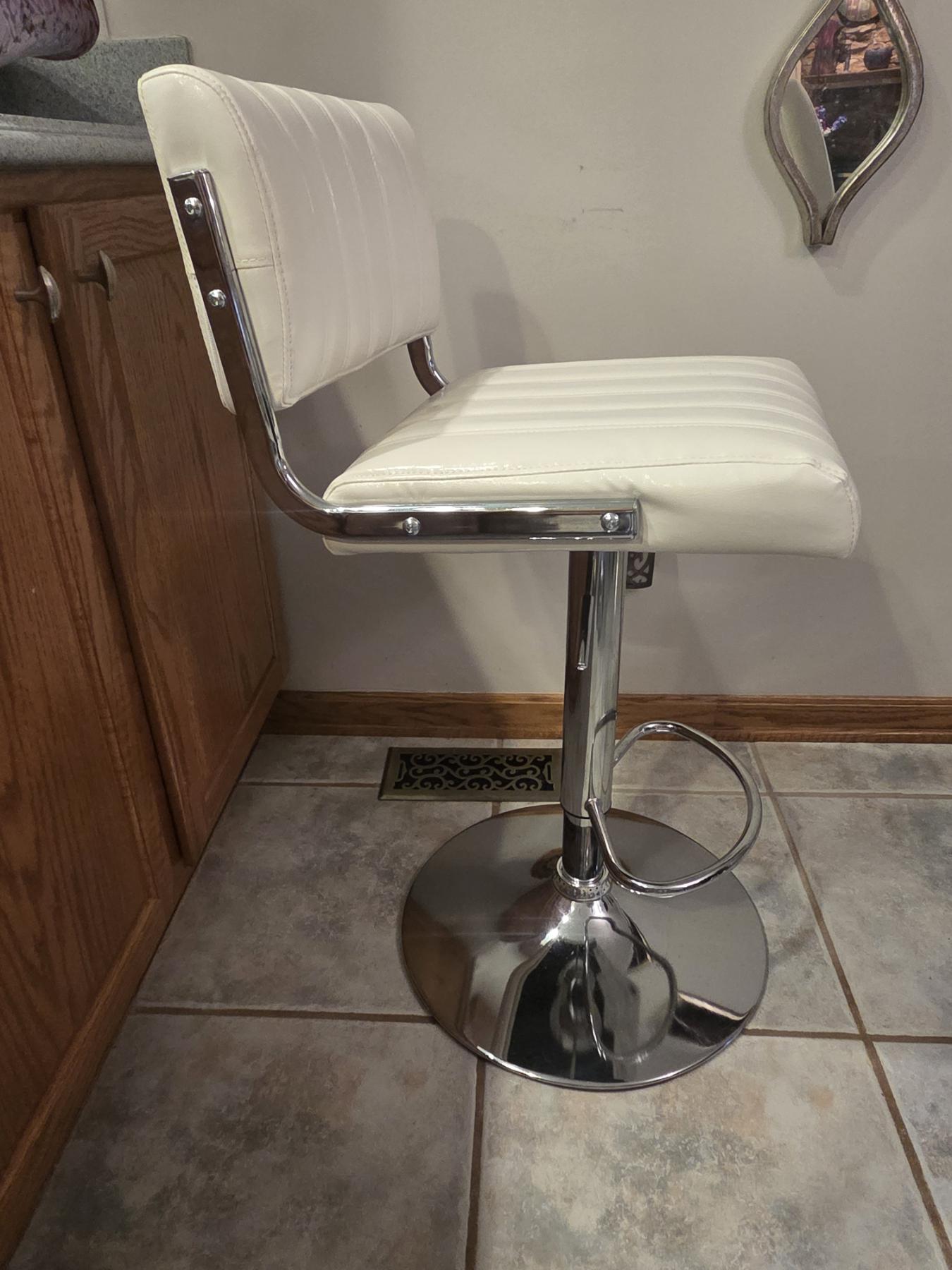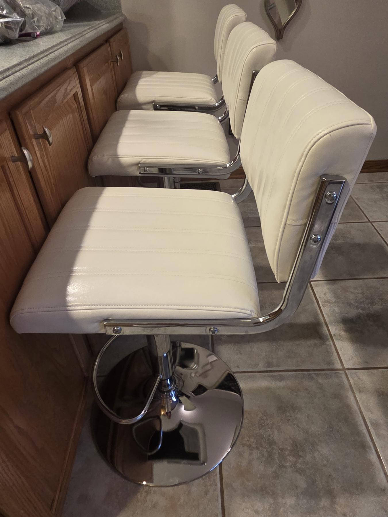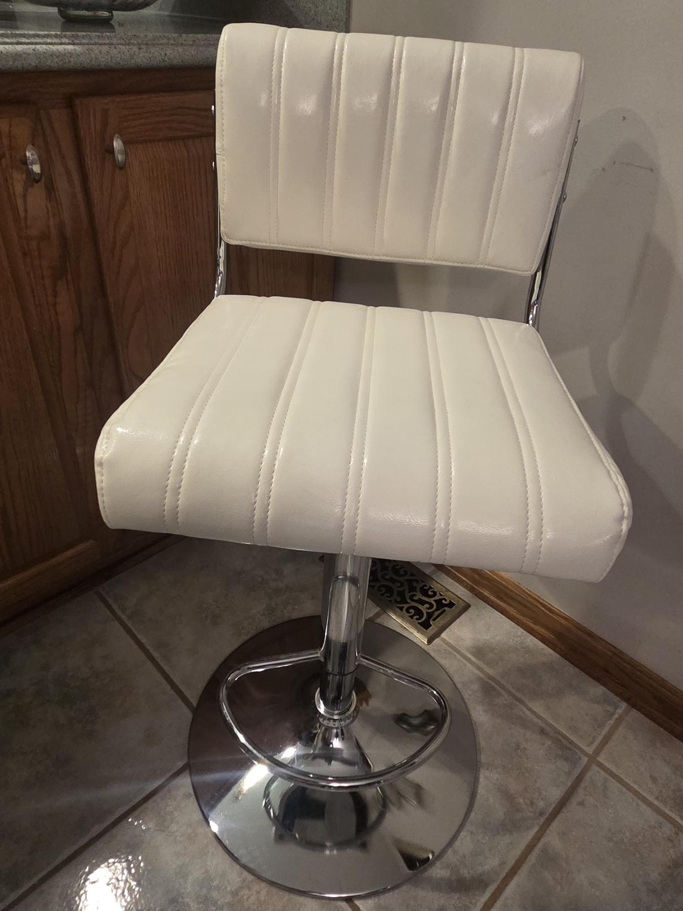 Beautiful Like New! Three White Leather Adjustable Height, Swivel Stools