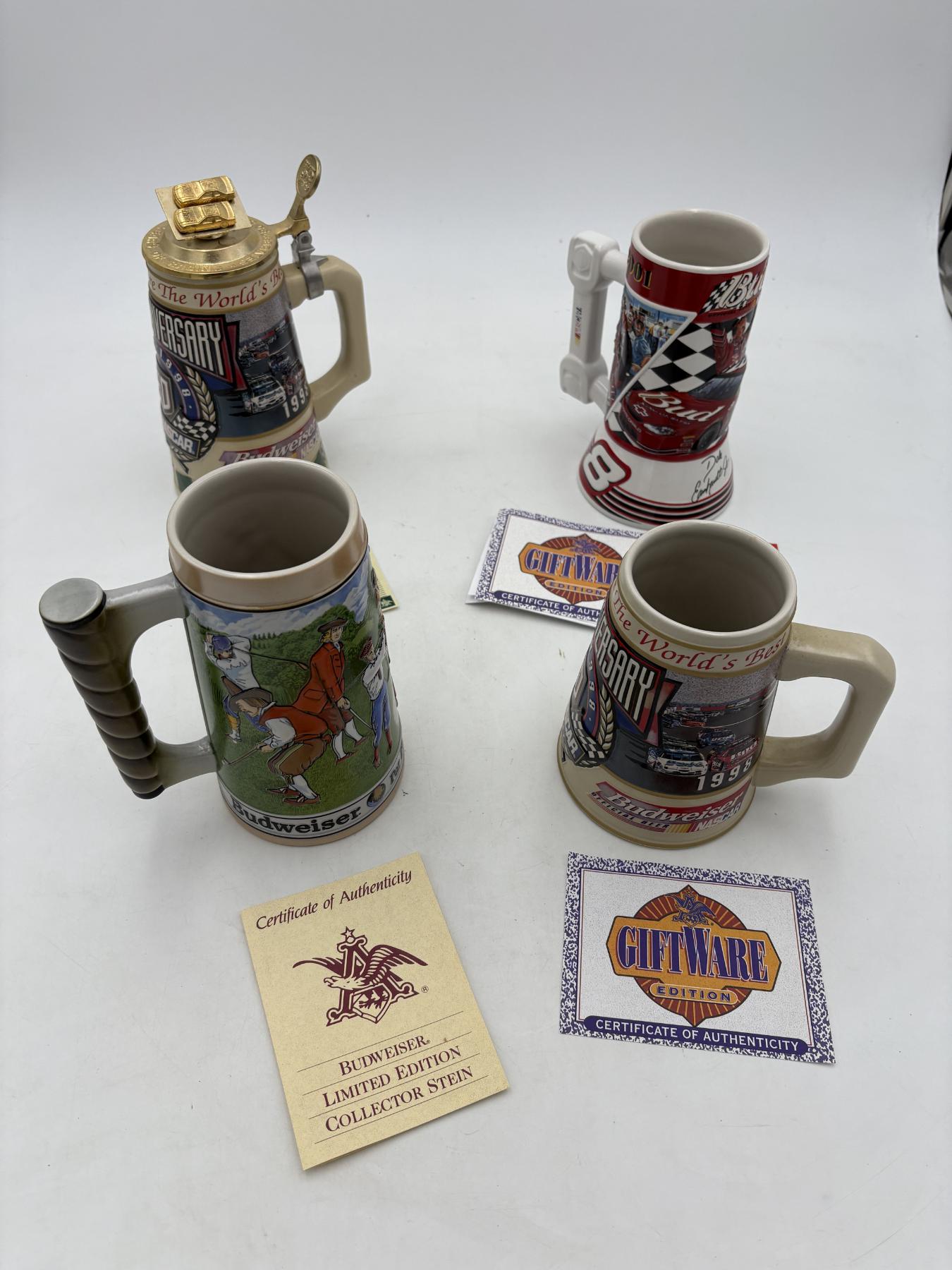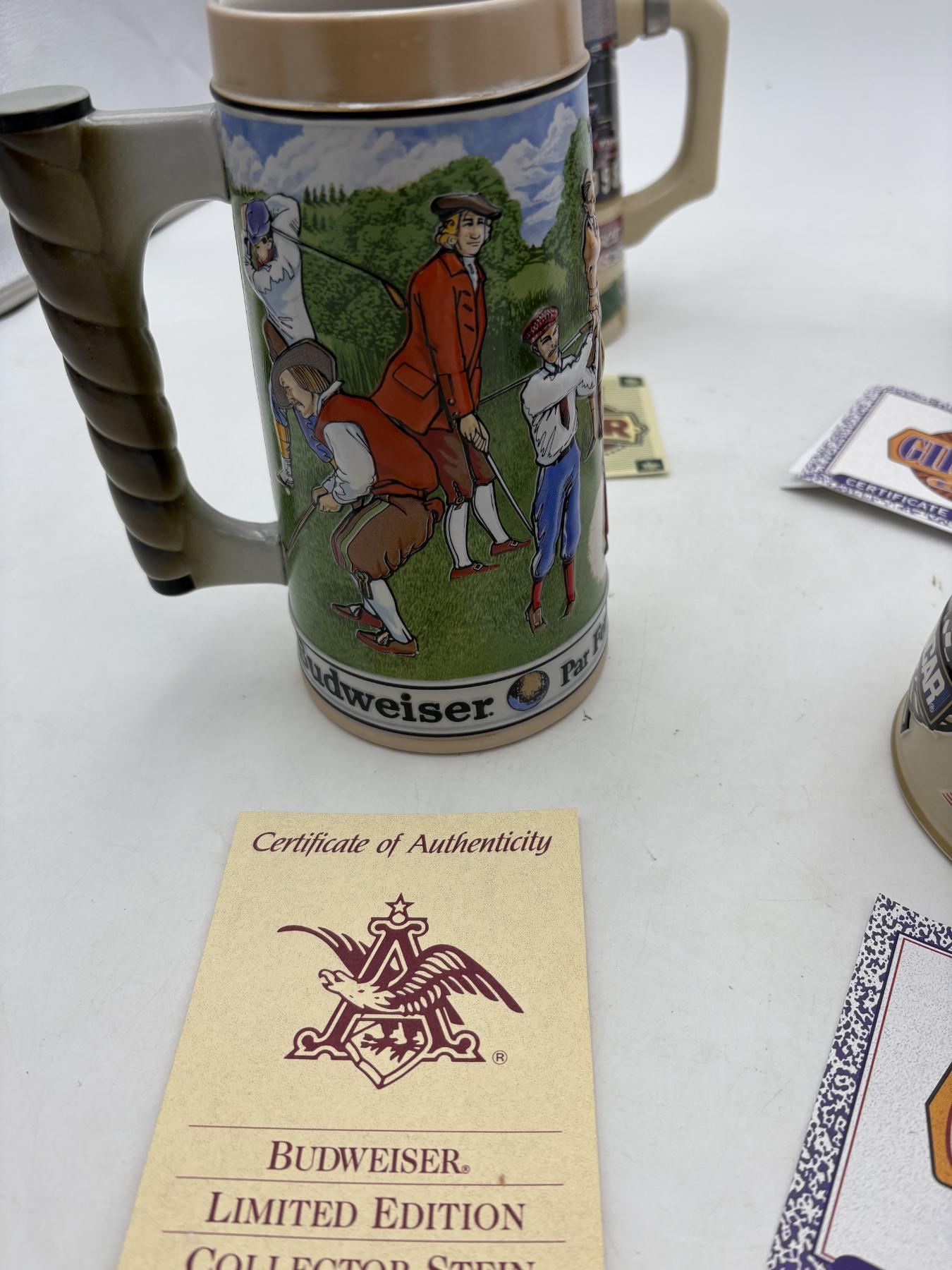 Beer Steins in Boxes - Budweiser Limited Edition Collector Steins with Certificate of Authenticity - Dale Earnhardt Jr. - Budweiser/NASCAR anniversary Steins - Golf Series