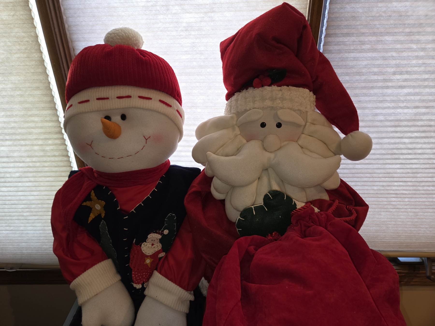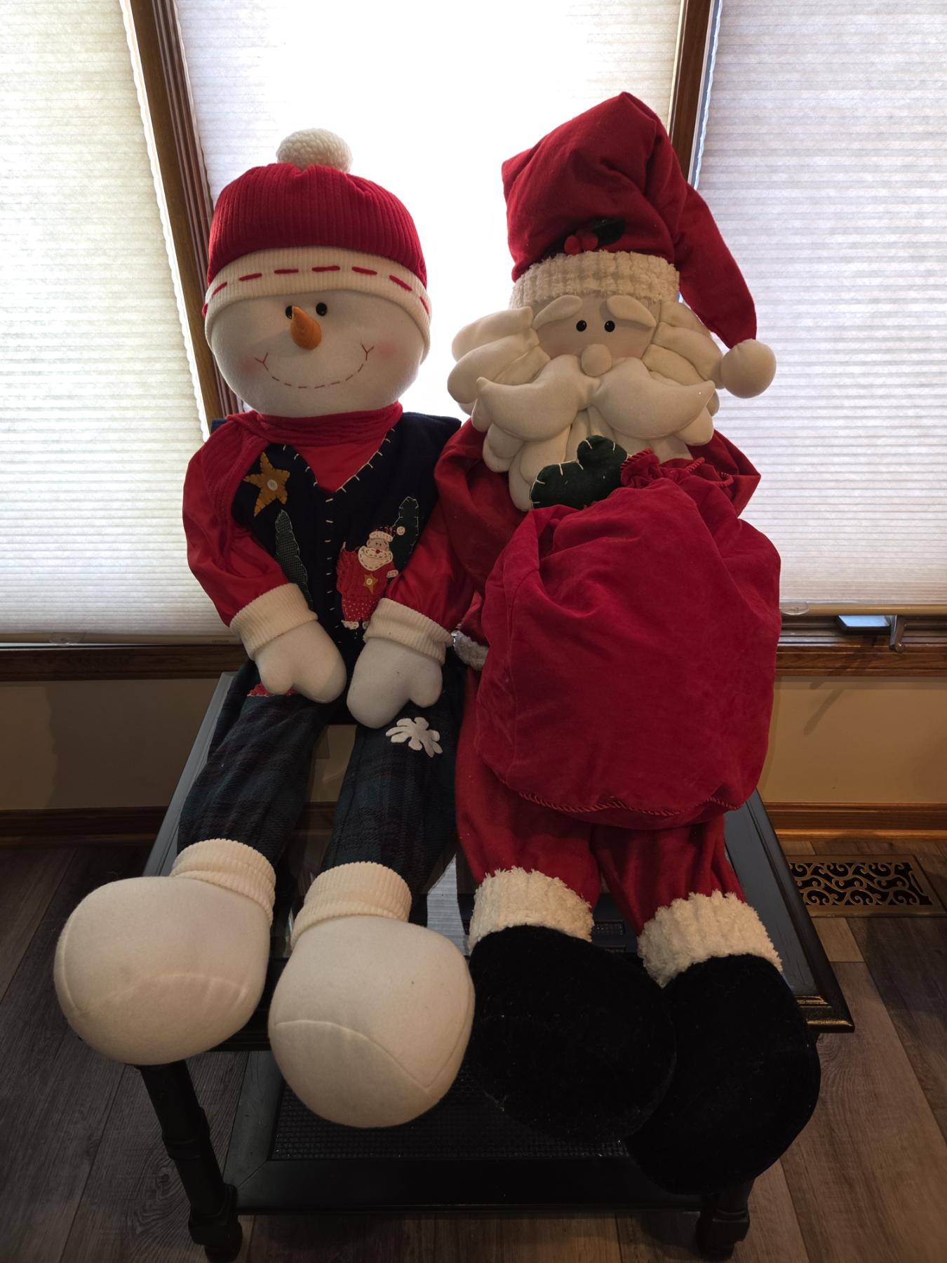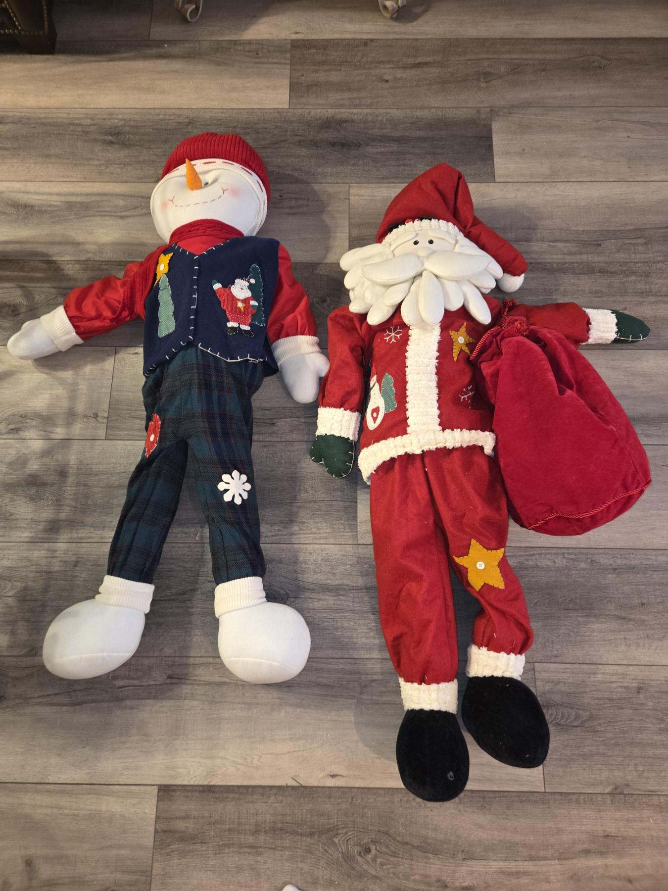 Big 50" Fabric Santa And Snowman Decorations Like New Condition