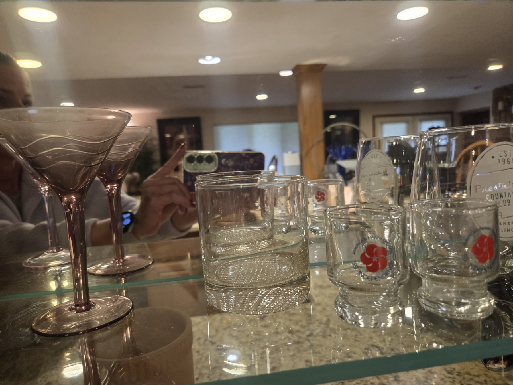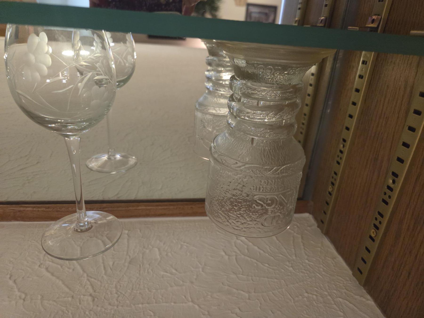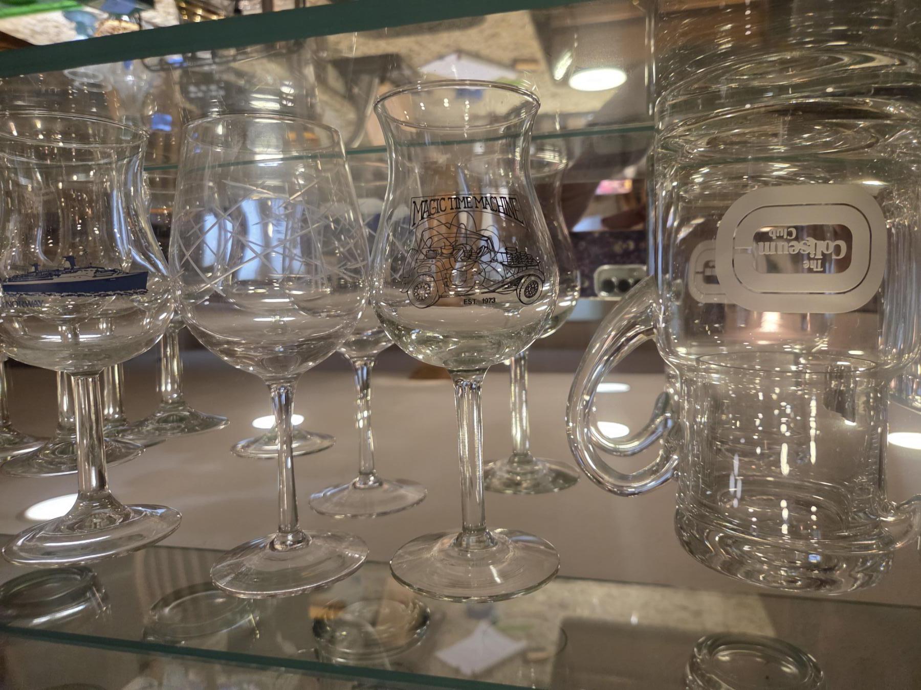 Bormioli Martini Glasses, Glass & Silver Wine Carafe, Crystal Bourbon Decanter, Assorted Bar Glasses, Vintage Jim Beam Bottle
