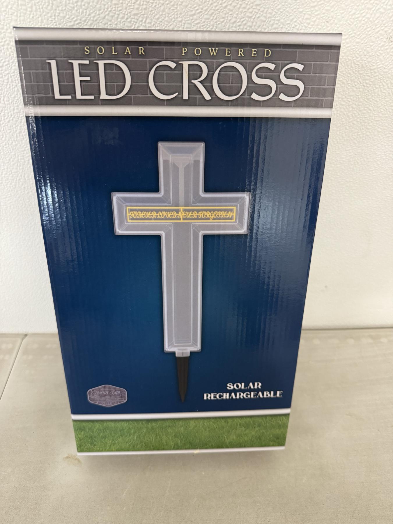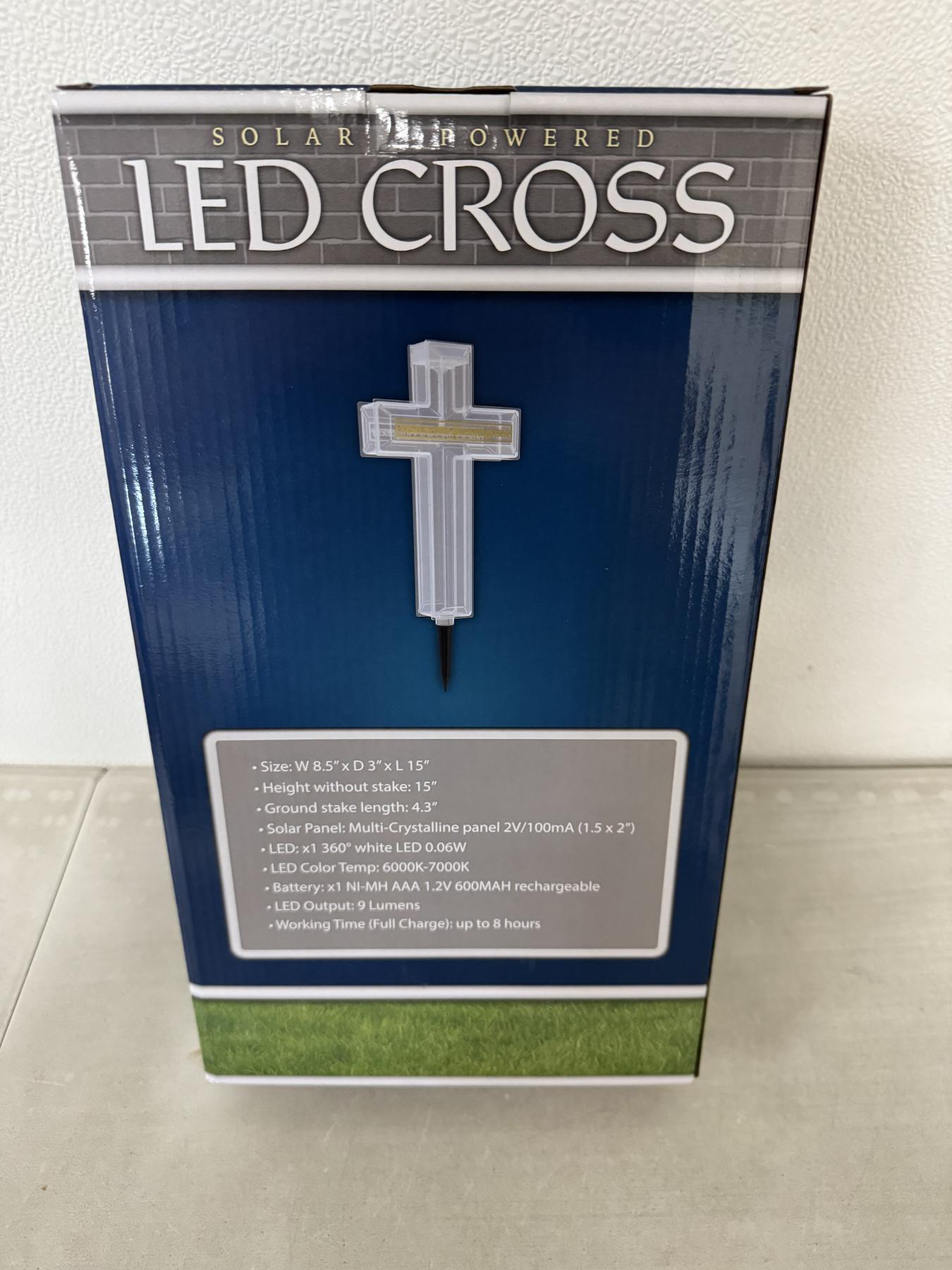 Brand New 15 Inch Tall Solar Powered LED Cross With Stake - New In Box