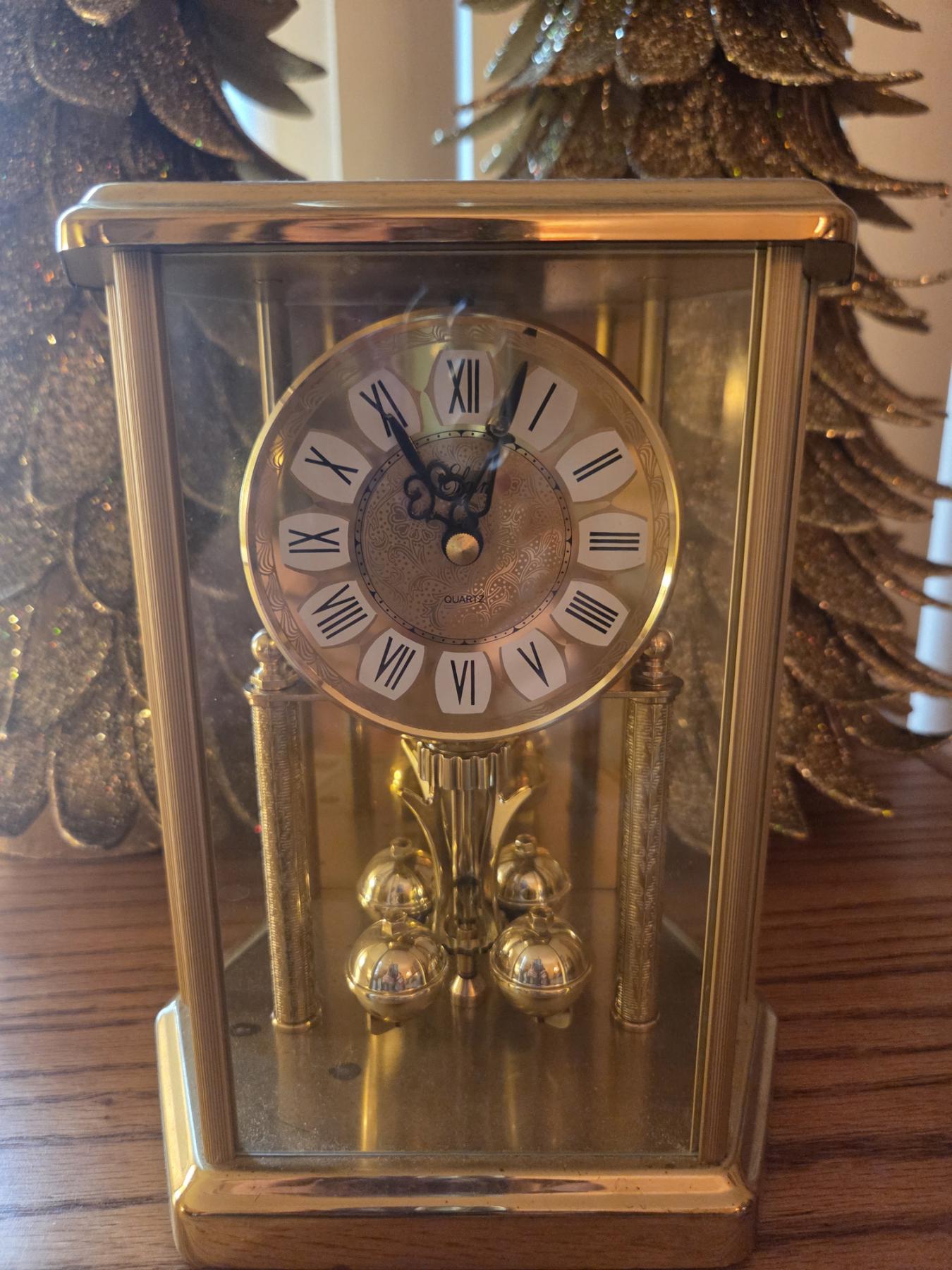 Brass Table Clock, Pair Of Beautiful Glittering 23"x8" Table Or Mantle Trees