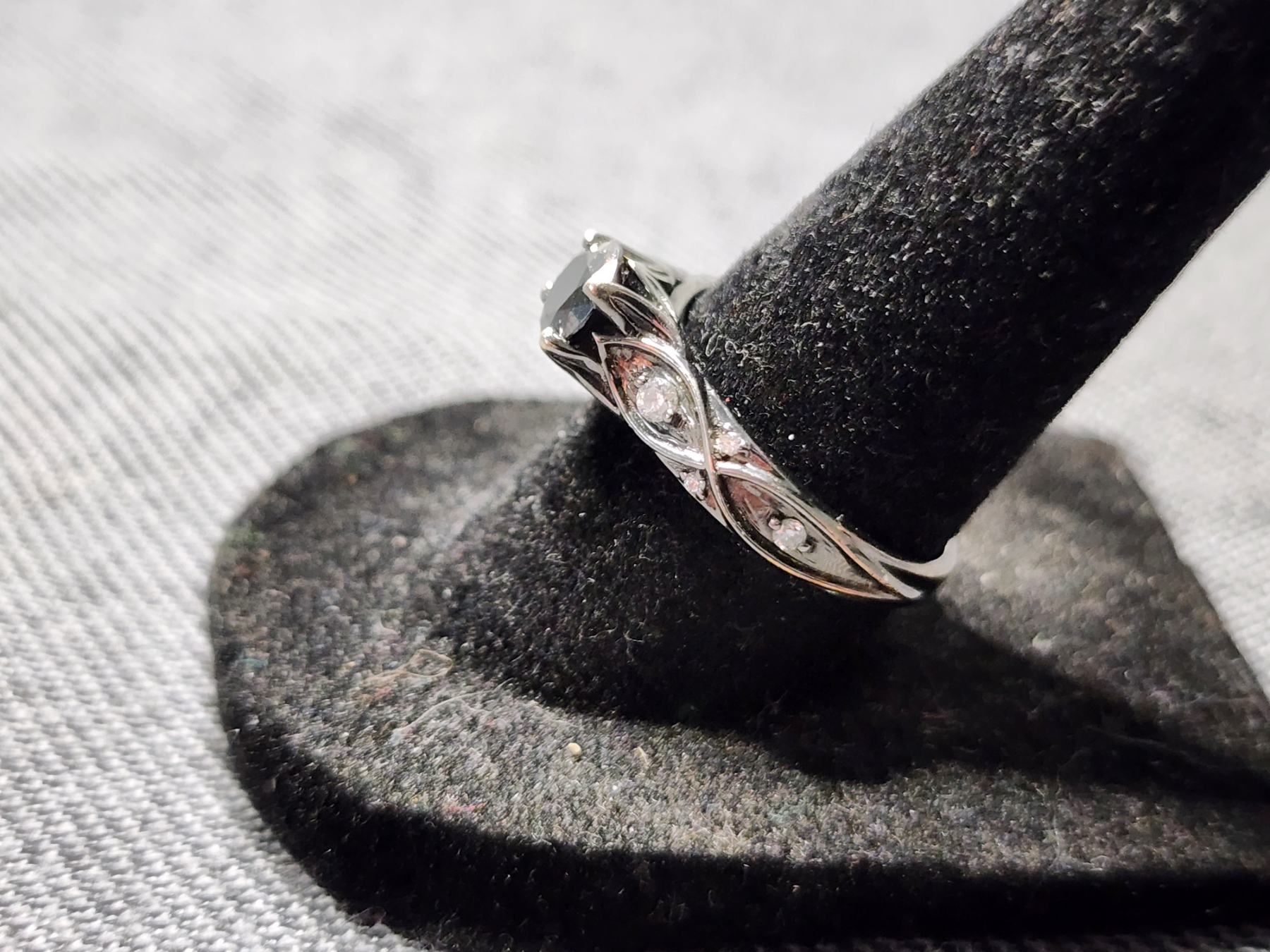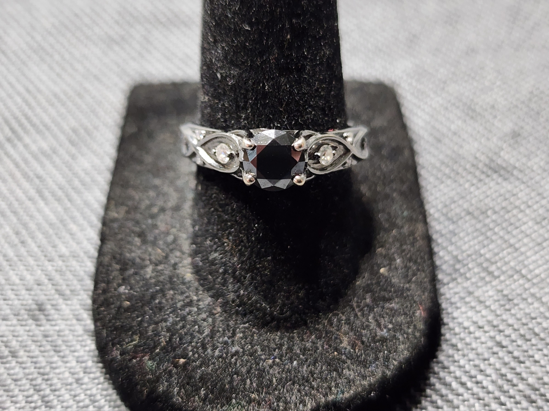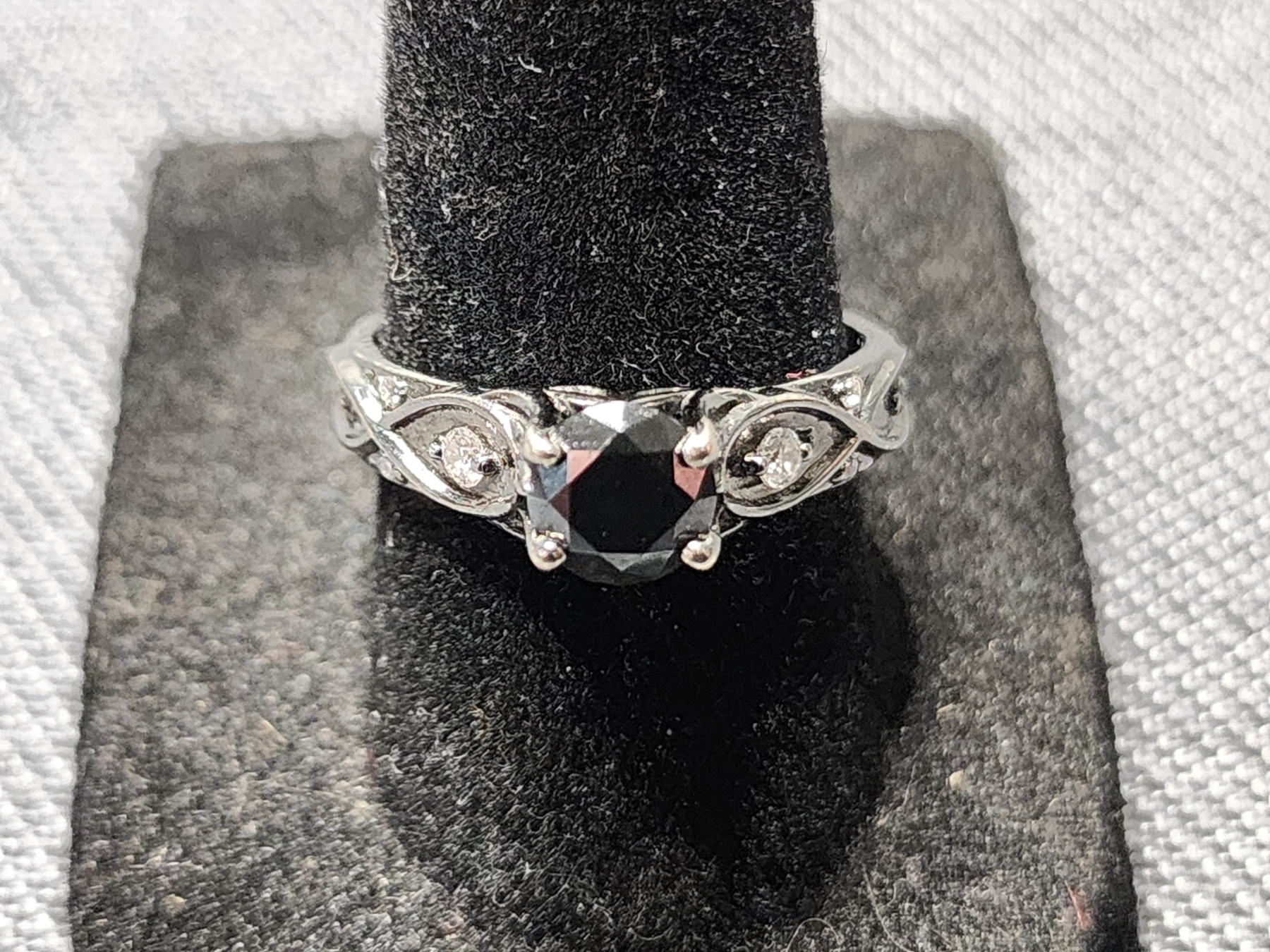 Breathtaking 14K White Gold Ring Featuring Stunning Black Center Stone & Small Diamond Accents - Weighs 4.2 Grams Total - Approximate Size 7.5