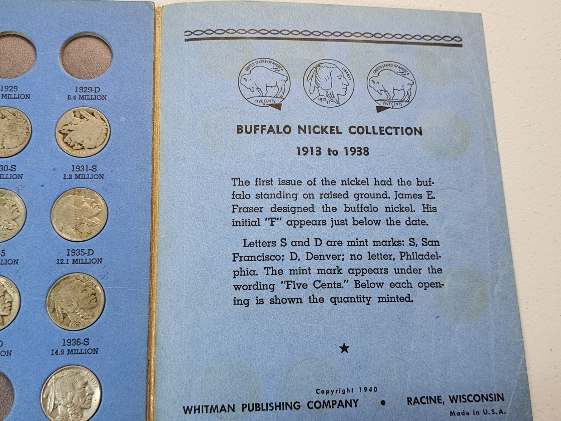 Buffalo Nickel Collection Book (Incomplete) FV: $0.90