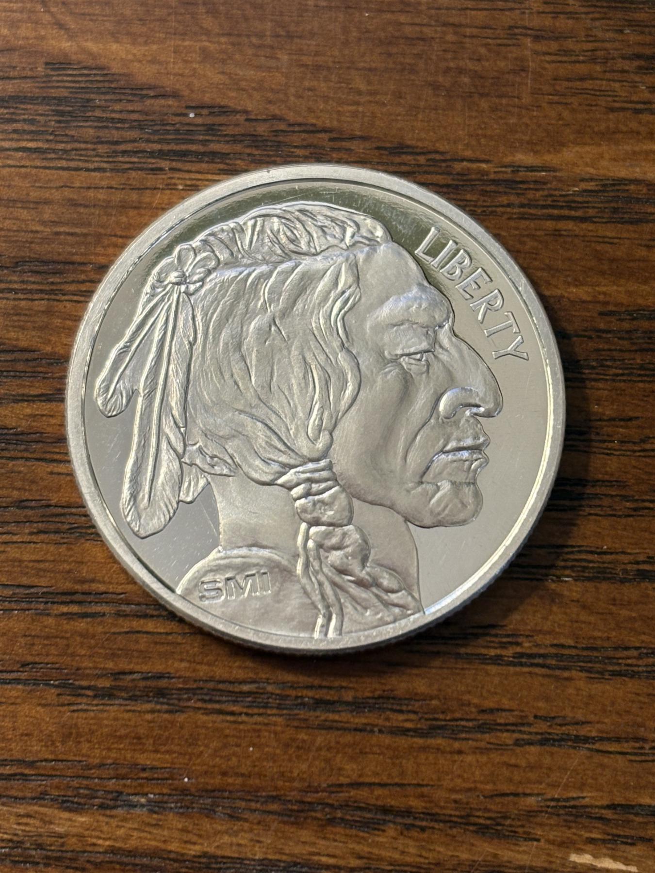 Buffalo Silver Round Coin .999 One Troy Ounce Fine Silver with Indian SMI