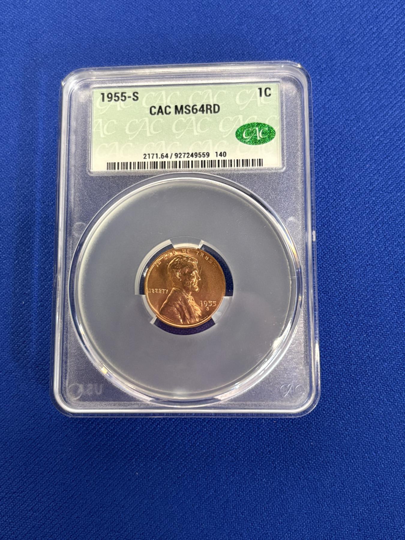 CAC MS64RD 1955-S Lincoln Penny FV $0.01