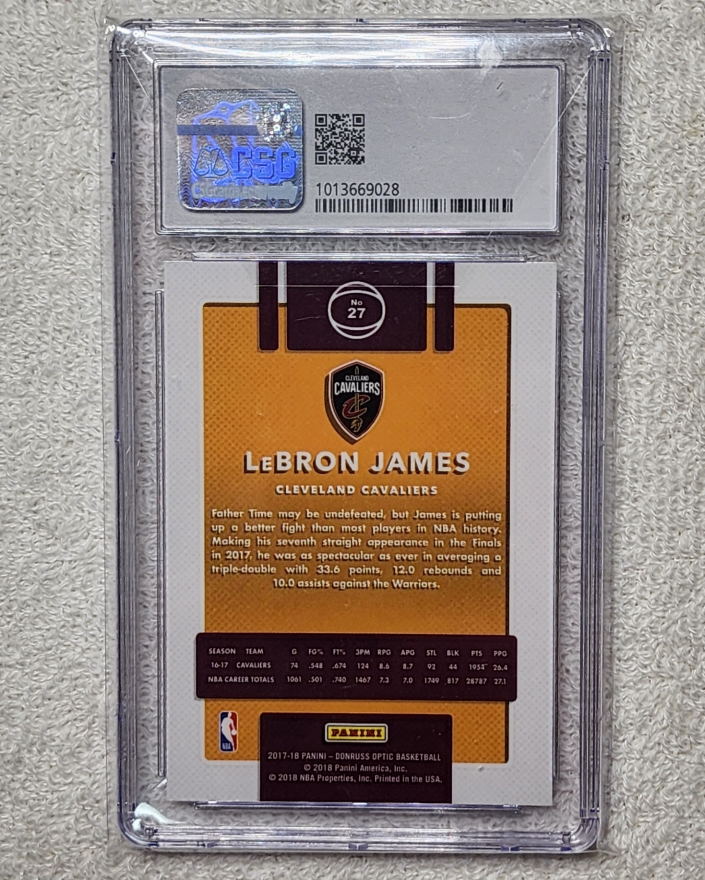 CSG Mint 9 2078-18 Donruss Optic #27 LeBron James Basketball Trading Card