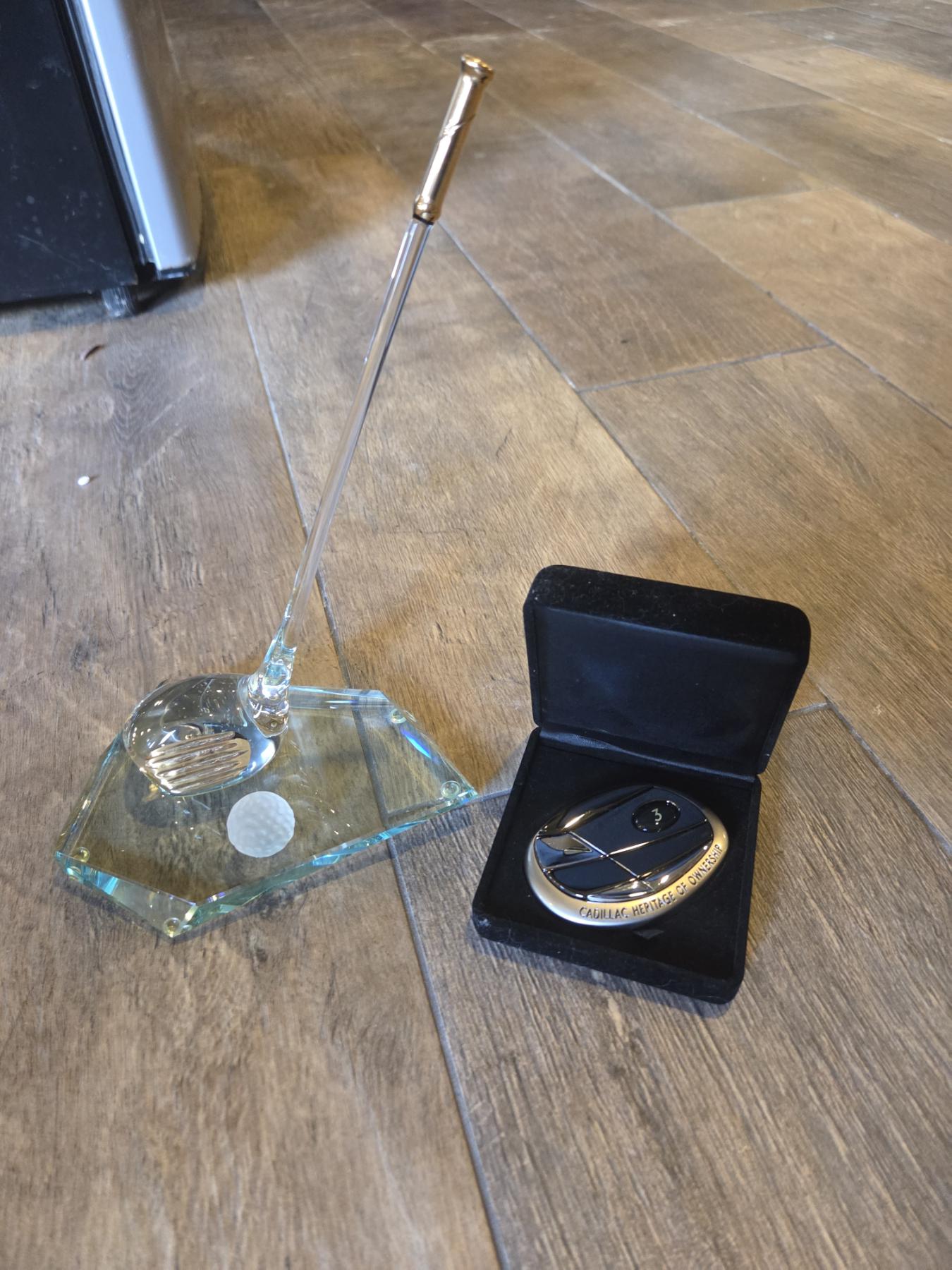 Cadillac Heritage Of Ownership Medallion, & Stunning Crystal Putter And Ball Decor Piece