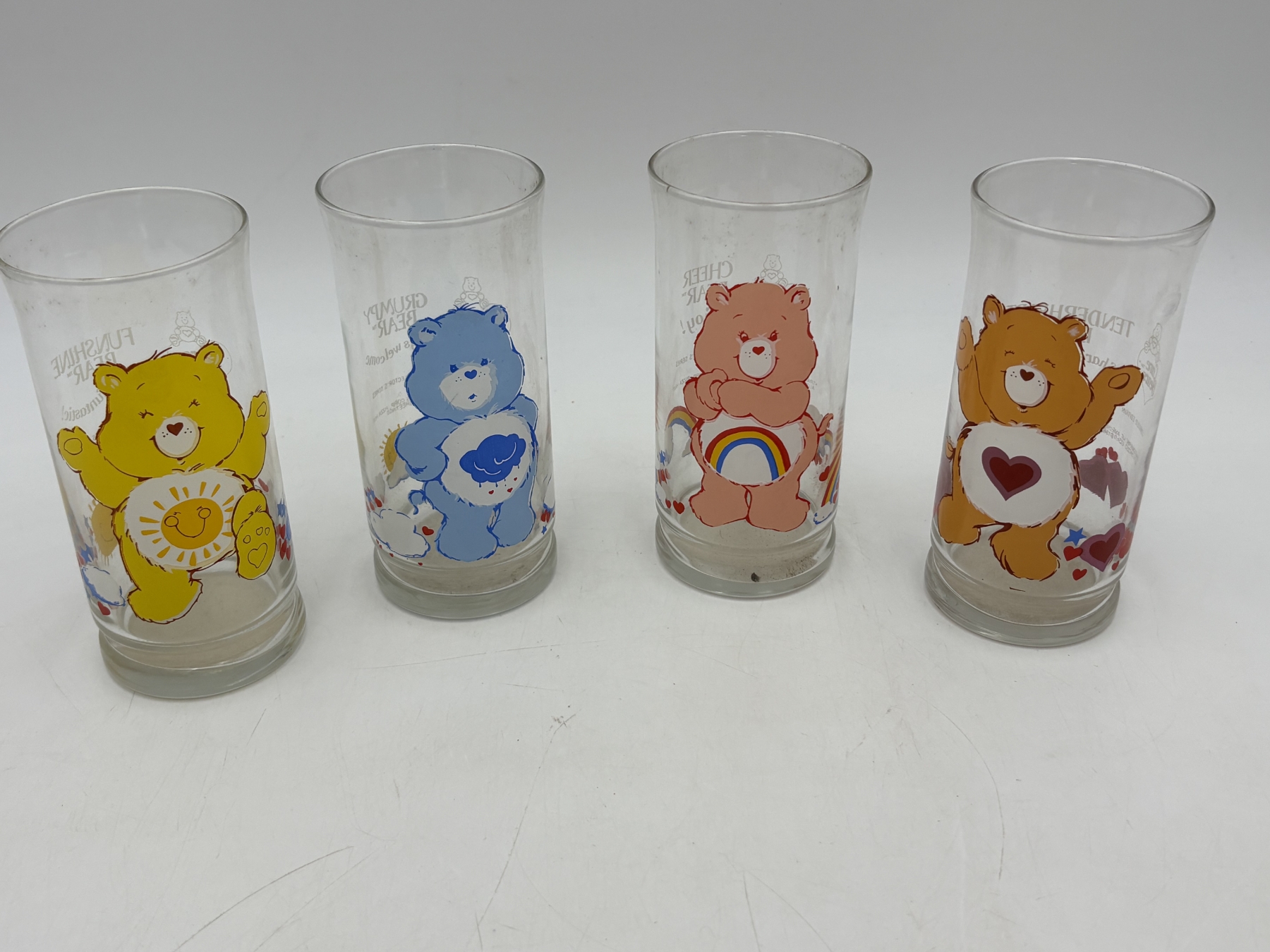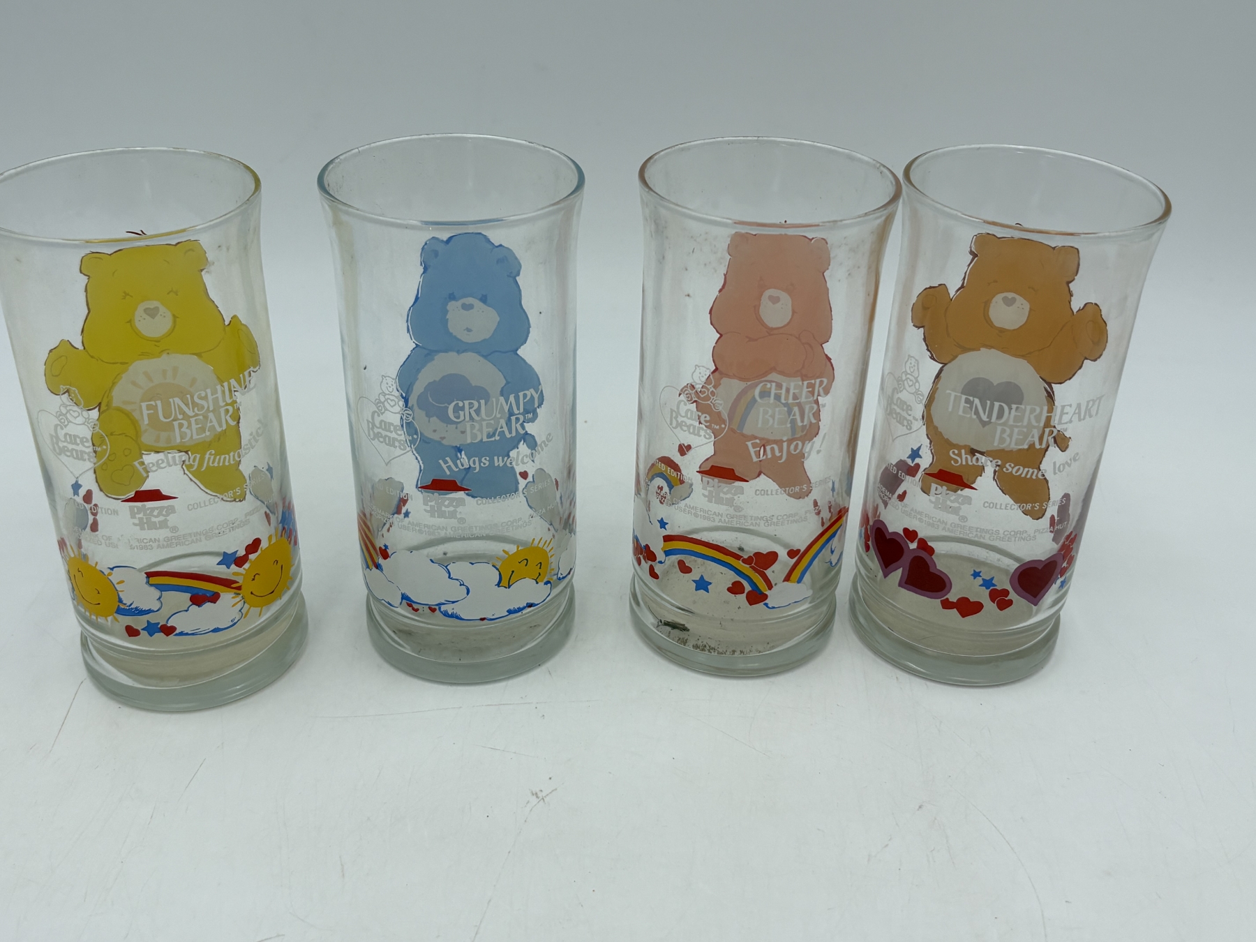 Care Bears collectible Glasses - Pizza Hut Collectibles - Funshine Bear - Grumpy Bear - Cheer Bear - Tenderheart Bear - Collector's Edition