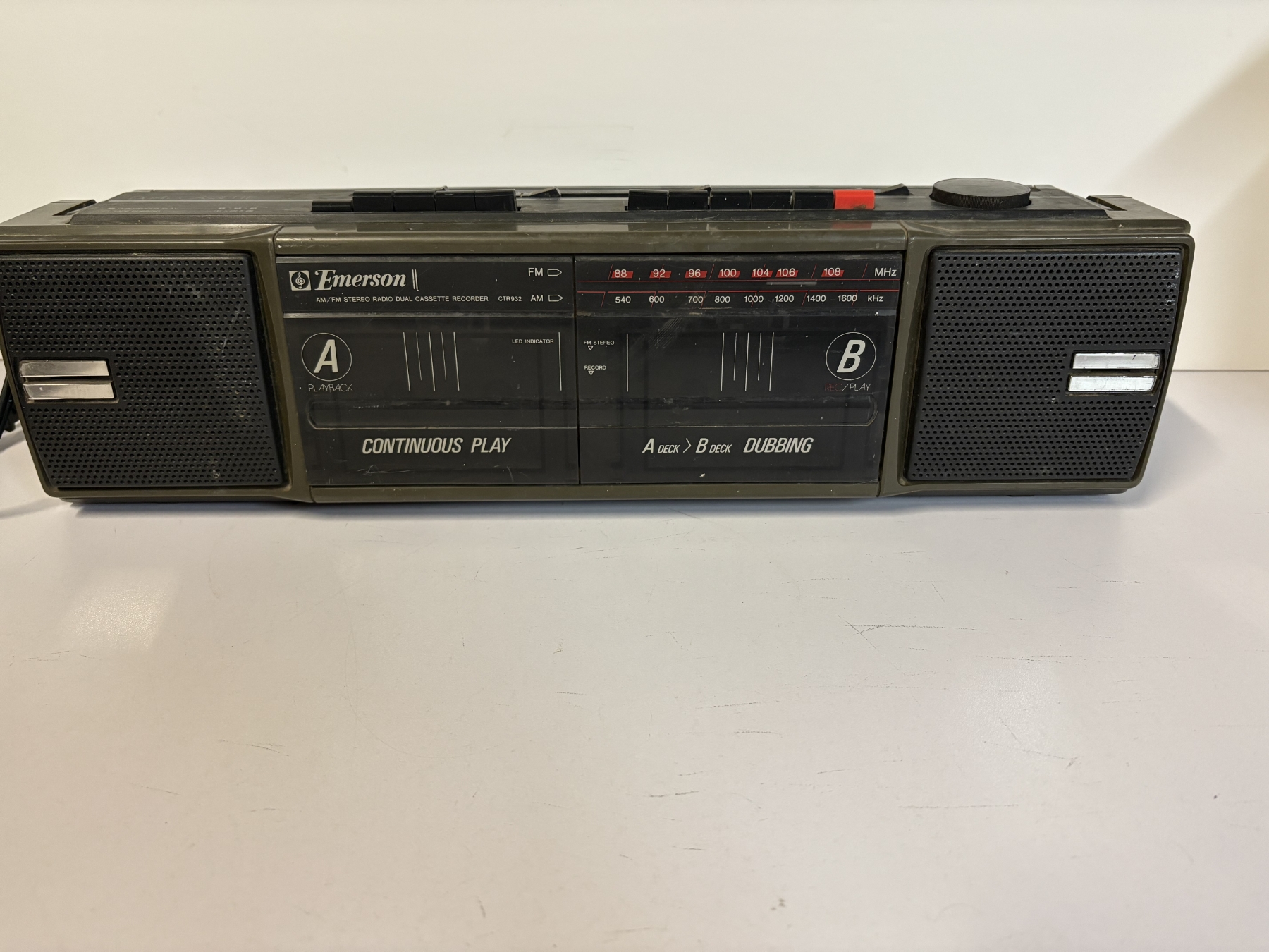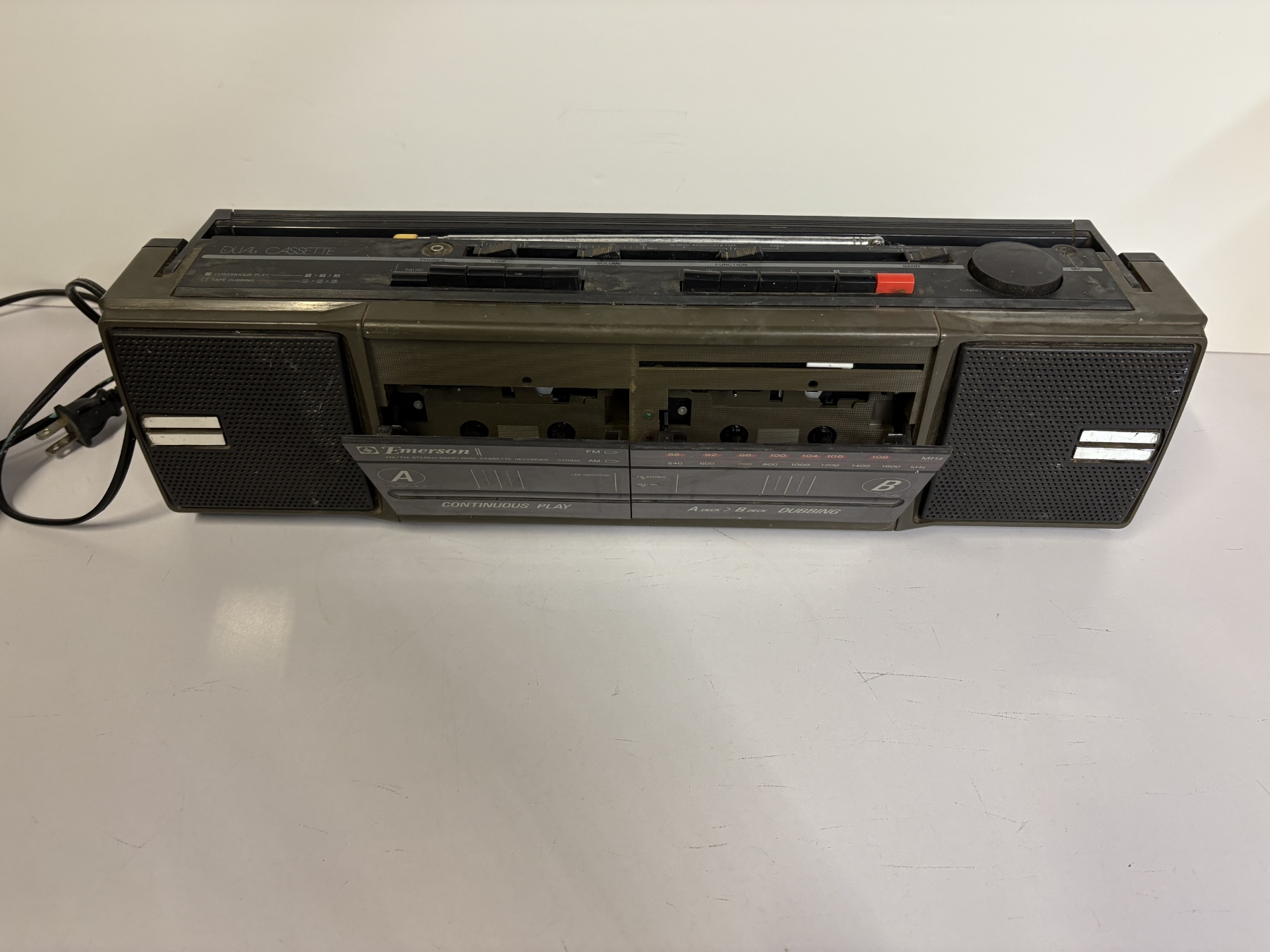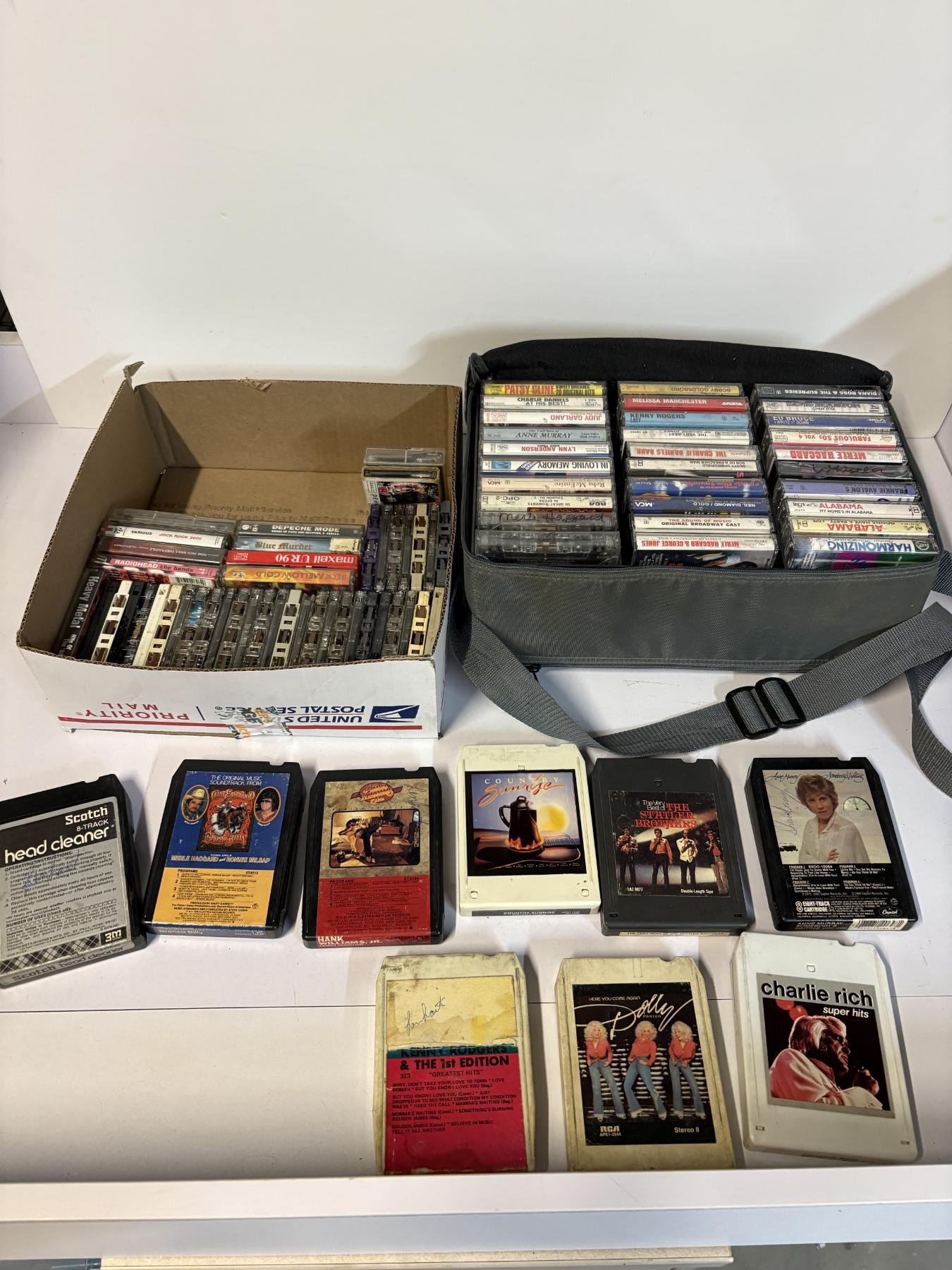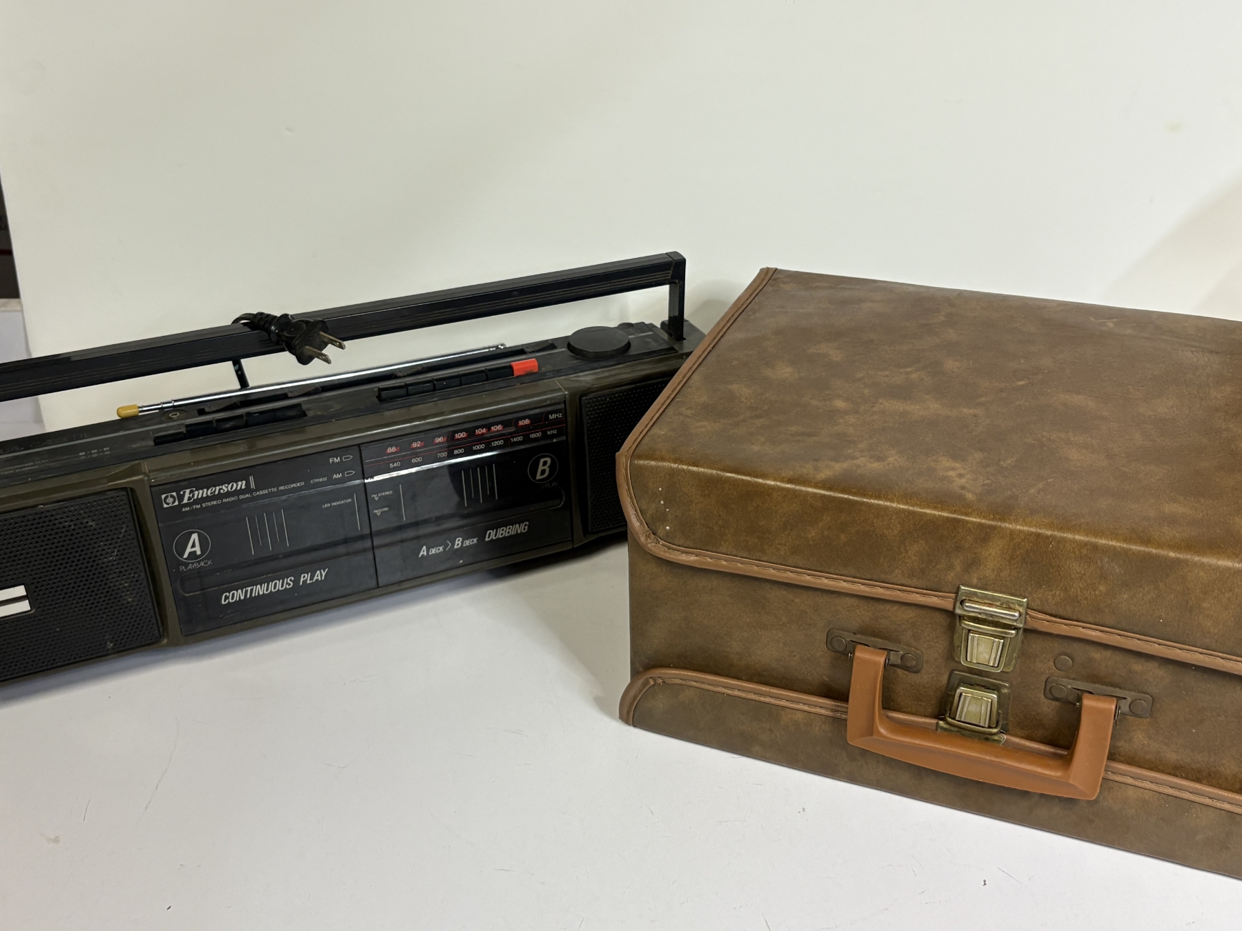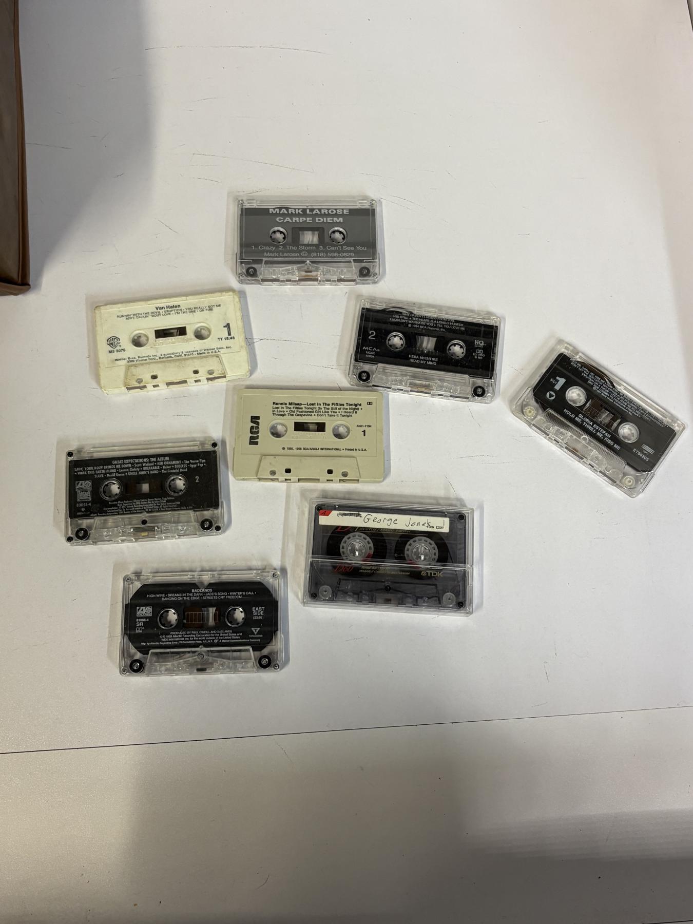 Cassette Player & Case of Cassettes - Emerson Brand - Double Sided Brown Case - Various Cassettes - Jerry Lee Lewis - Johnny Lee - Elvis' Gold Records Vol 5 - Van Halen - George Jones - Last Photo is Cassette Boxes ONLY (7)- No Cassettes inside