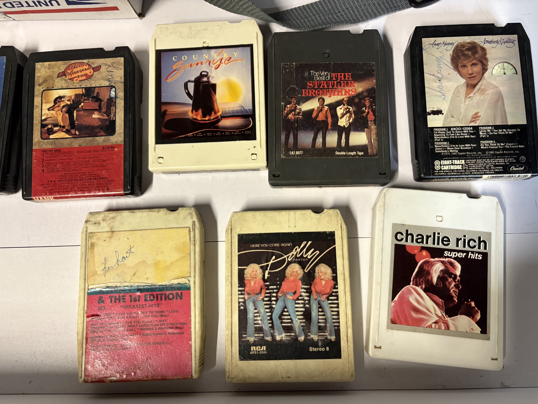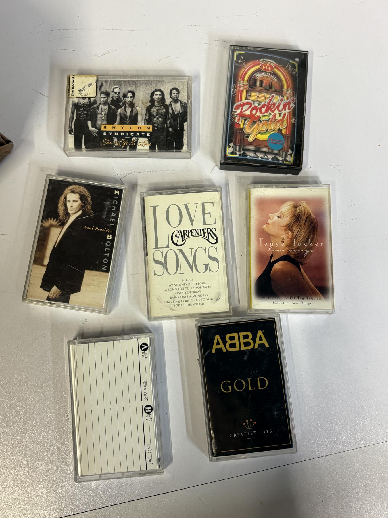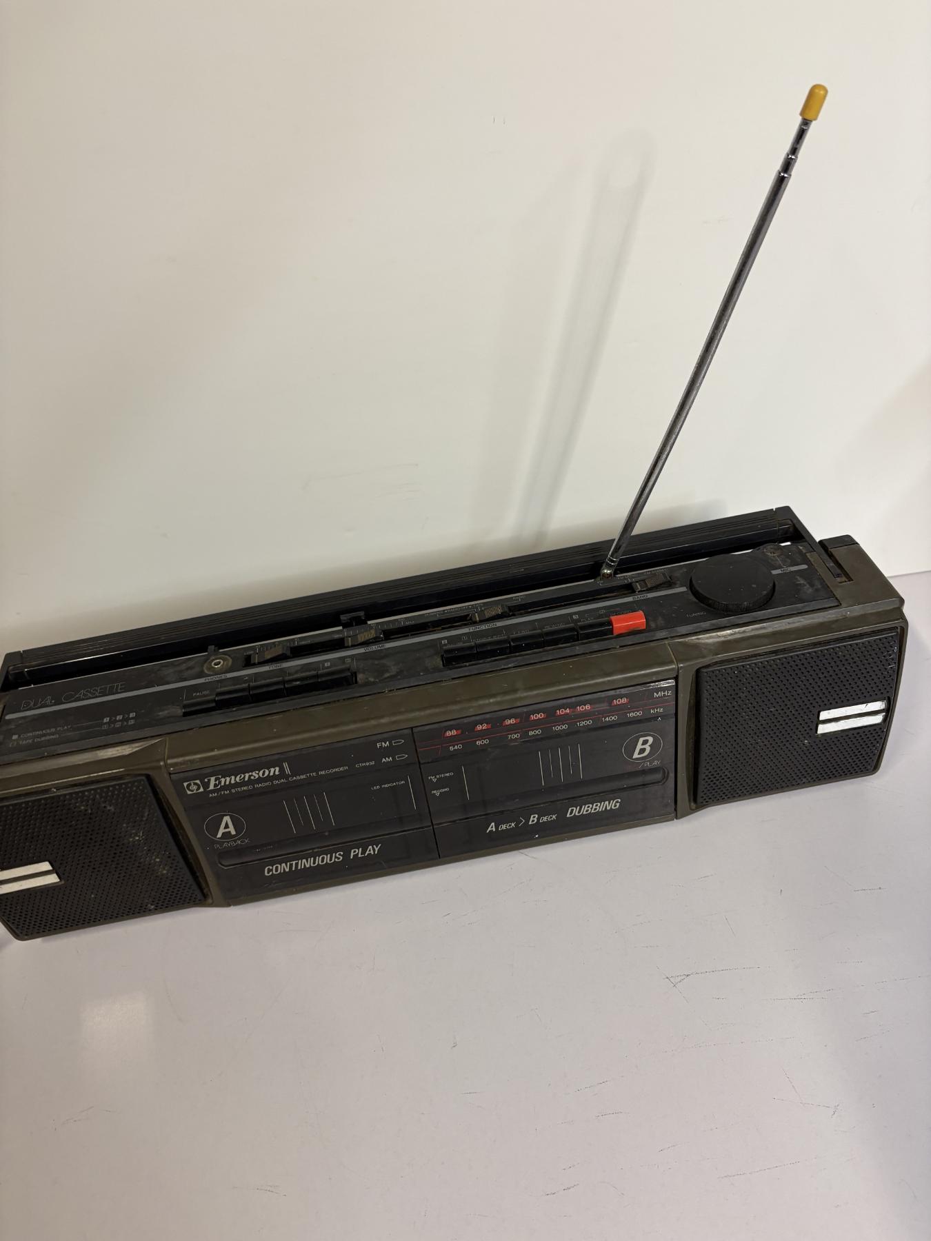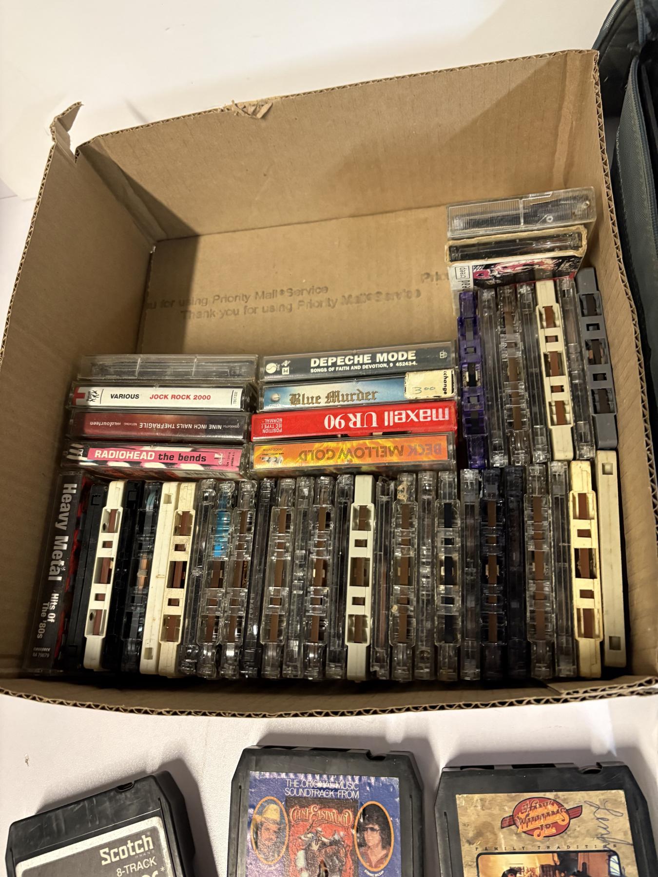 Cassette Player & Case of Cassettes - Emerson Brand - Double Sided Brown Case - Various Cassettes - Jerry Lee Lewis - Johnny Lee - Elvis' Gold Records Vol 5 - Van Halen - George Jones - Last Photo is Cassette Boxes ONLY (7)- No Cassettes inside