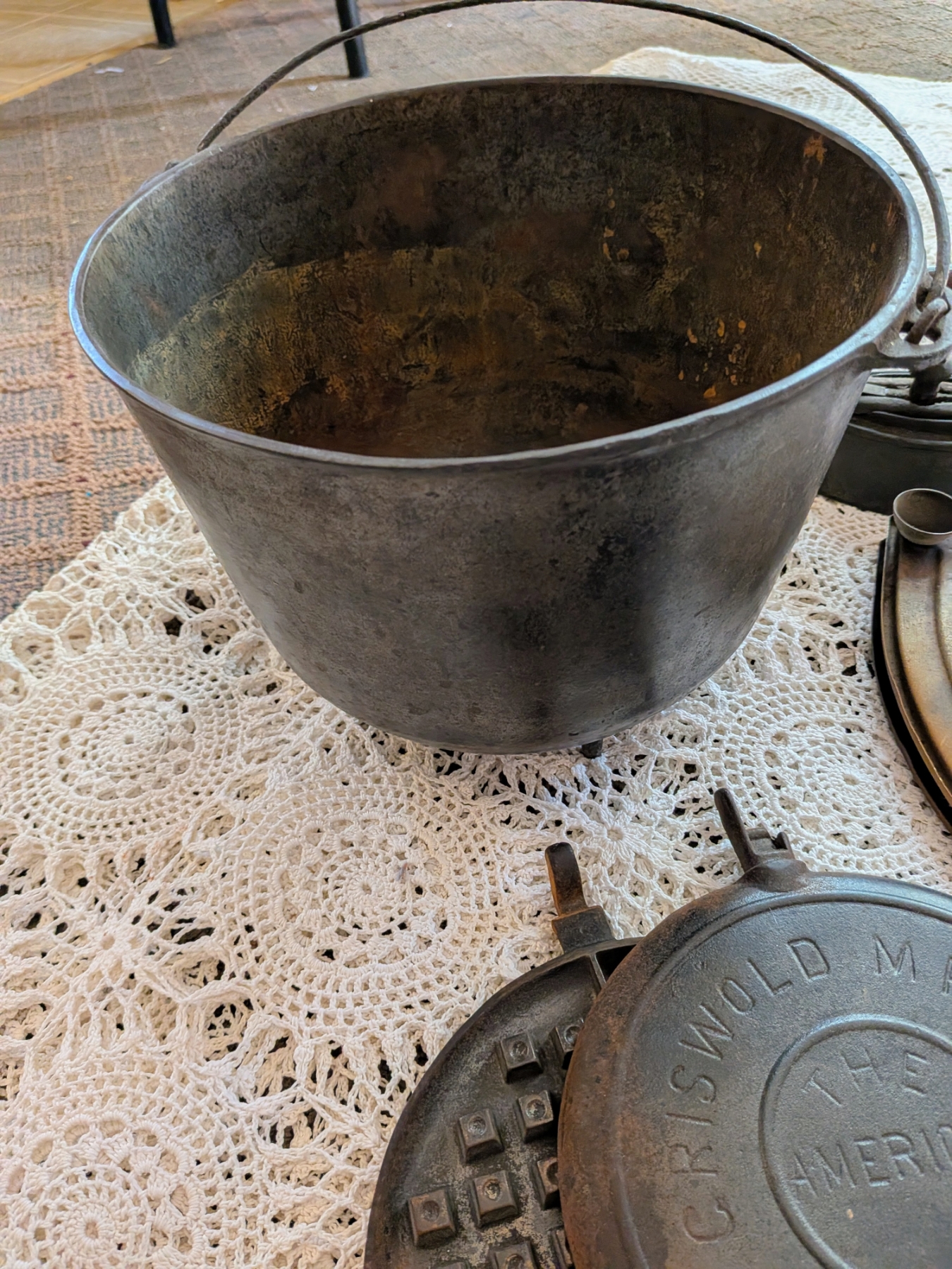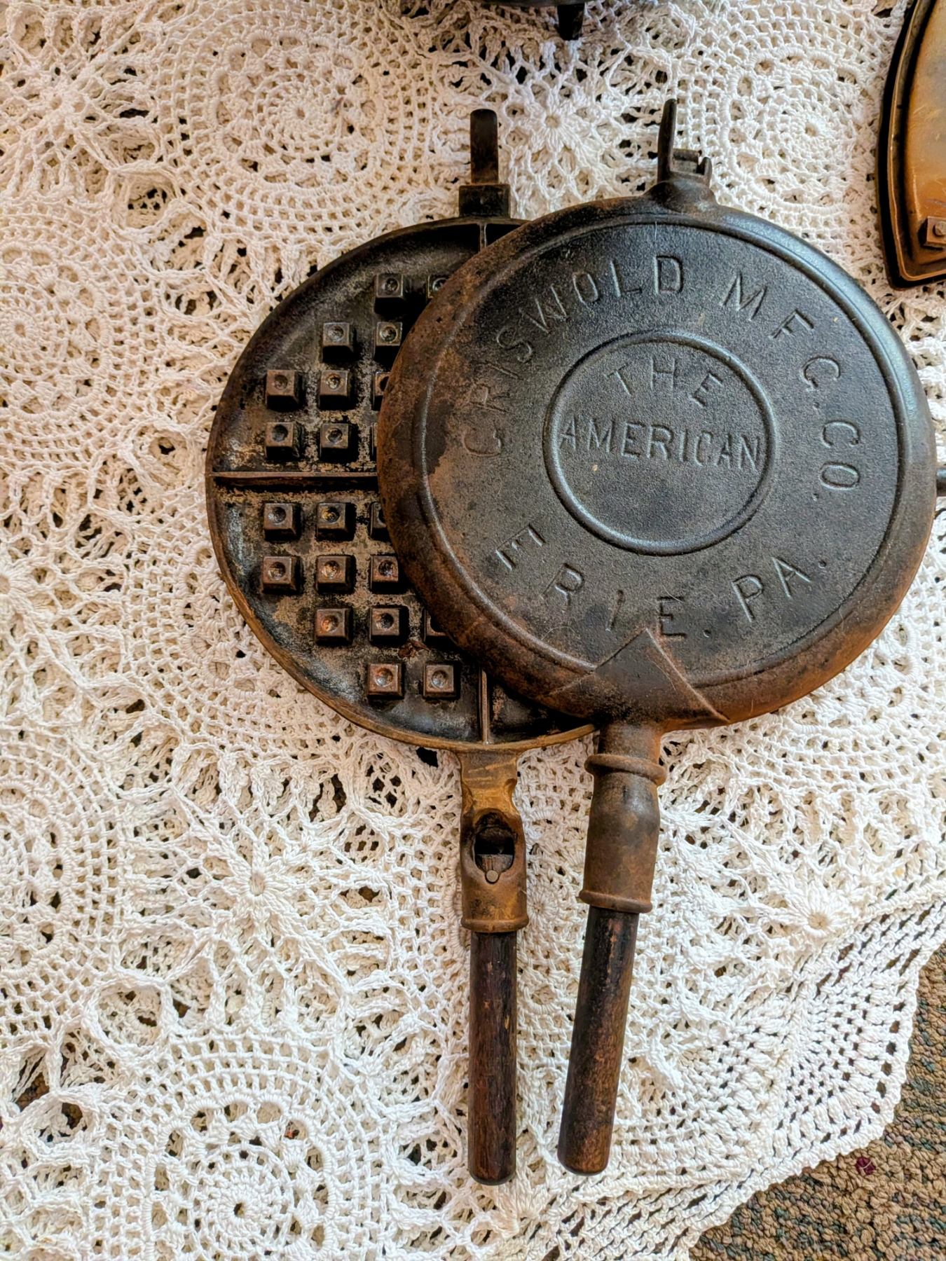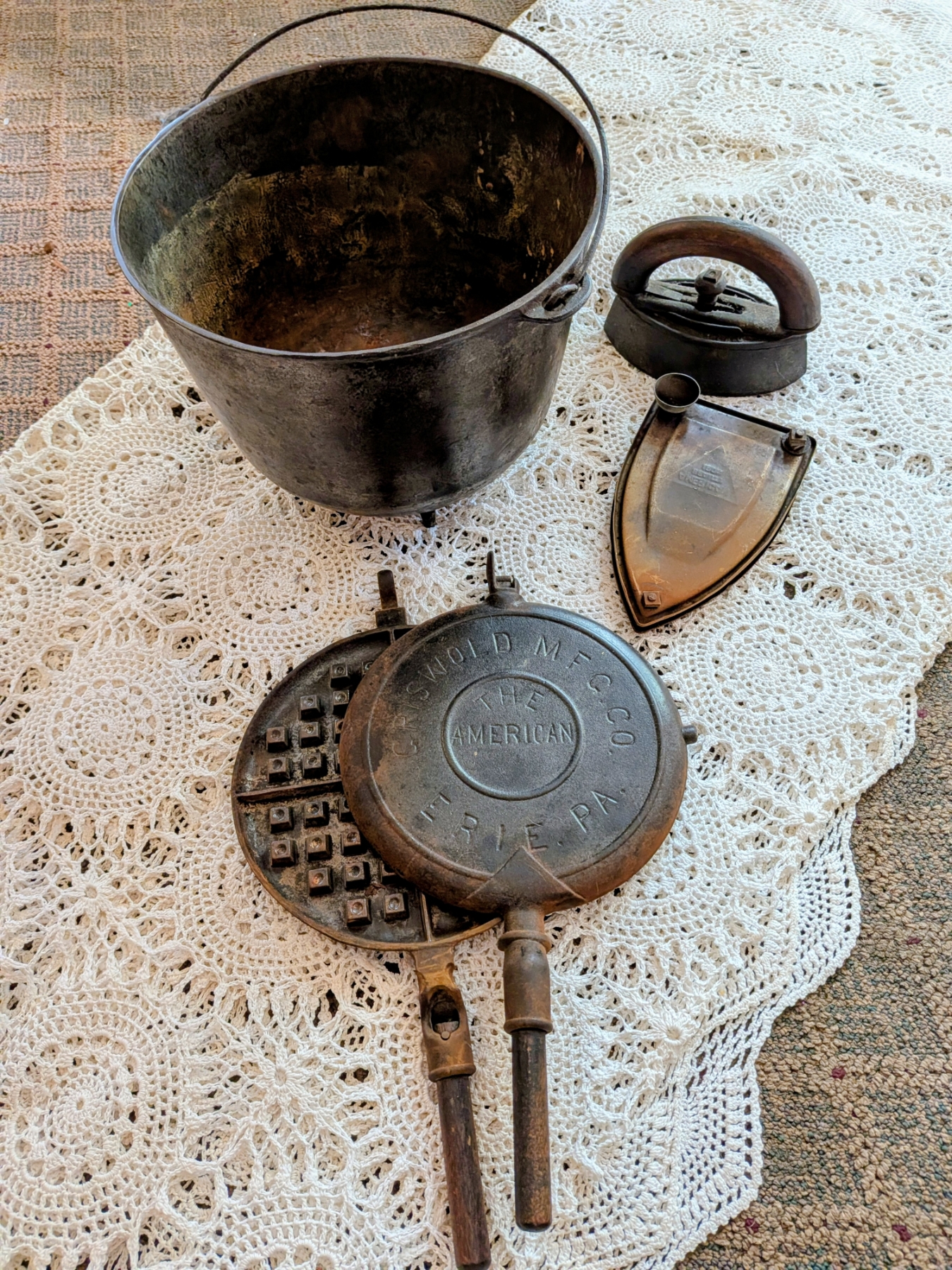 Cast Iron Waffle Maker, Iron With Rest, & Kettle Pot