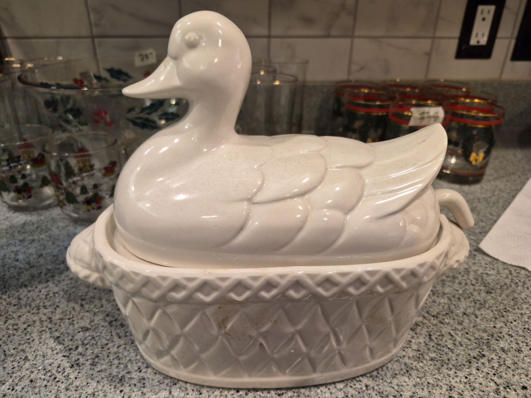 Ceramic Duck 3 Pc Gravy Boat Lid & Ladel - Perfect