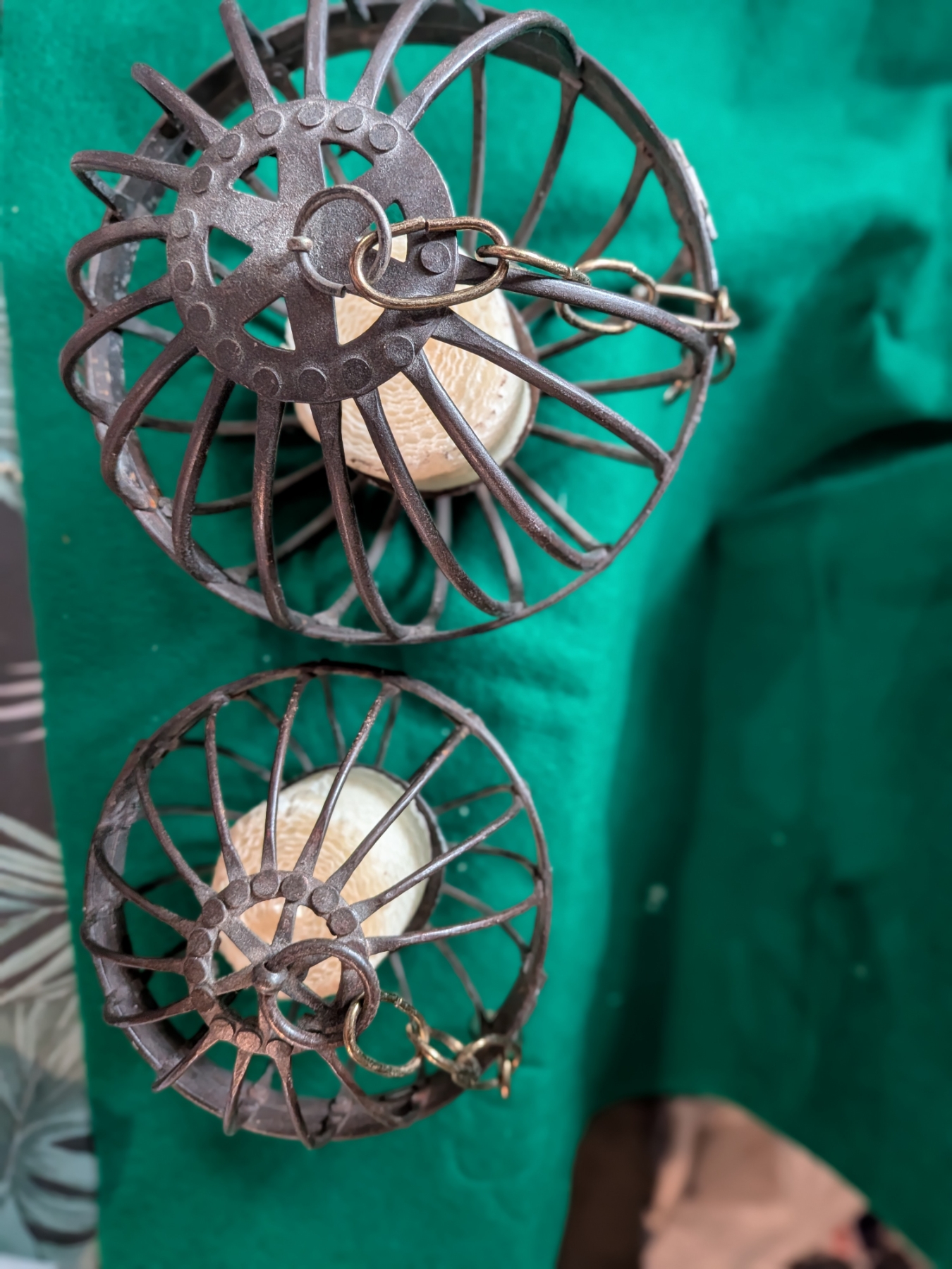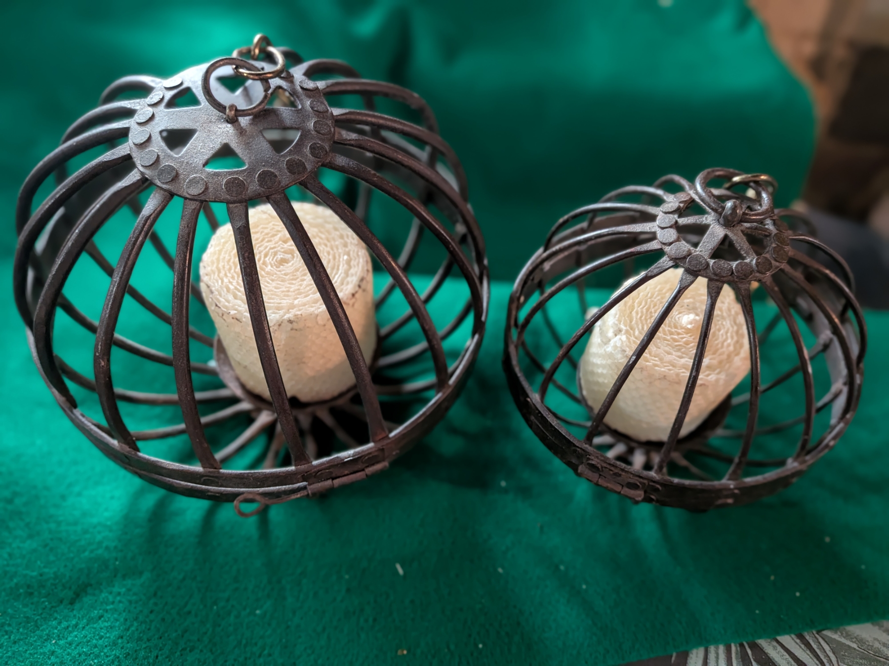 Charming Wrought Iron Candle Holder Balls With Beeswax Candles, (8"x8" & 6"x6")