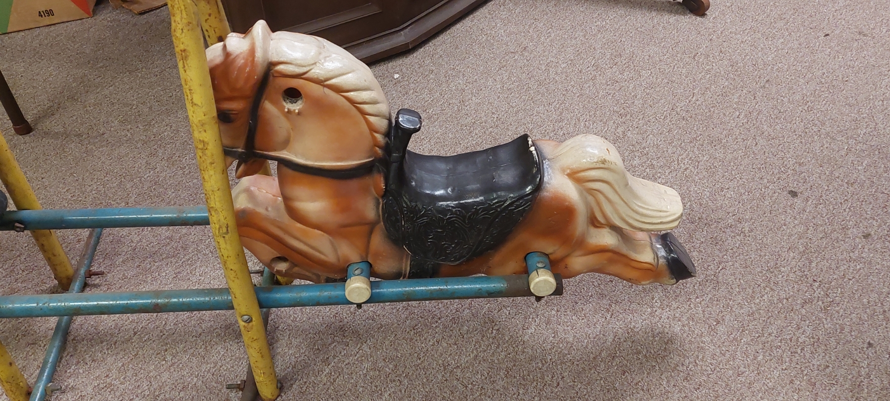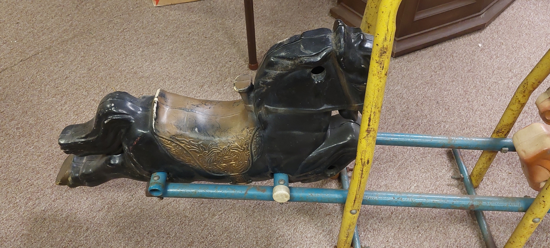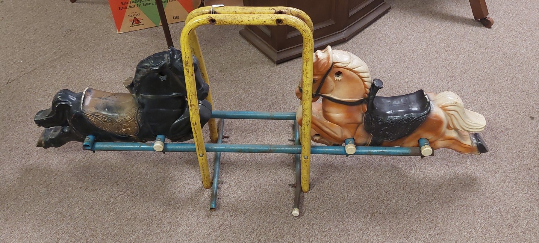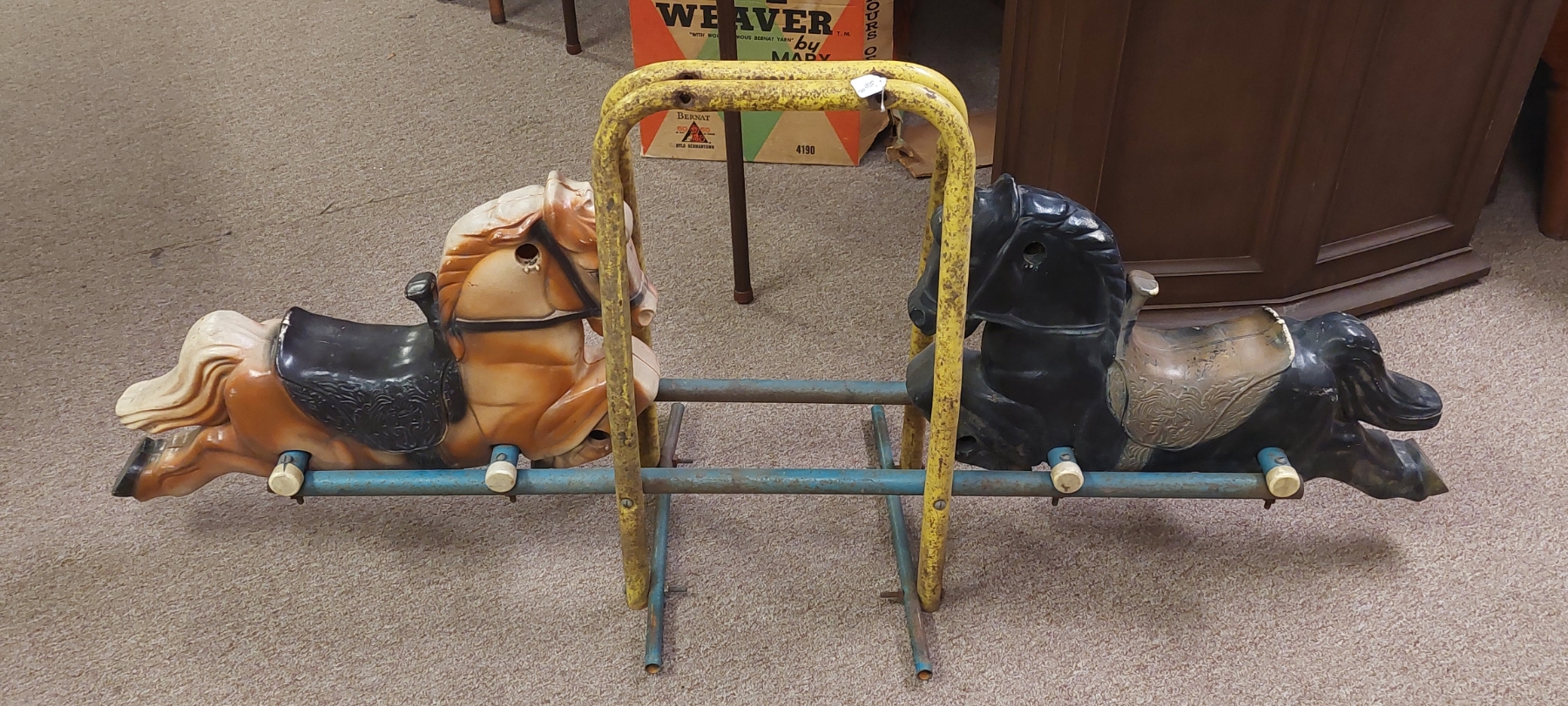 Circus & Carnival - Vintage Dual Pony Carnival Kiddie Ride Section - 56 x 23 - Just Needs Wooden Peg Handles - Easy Fix