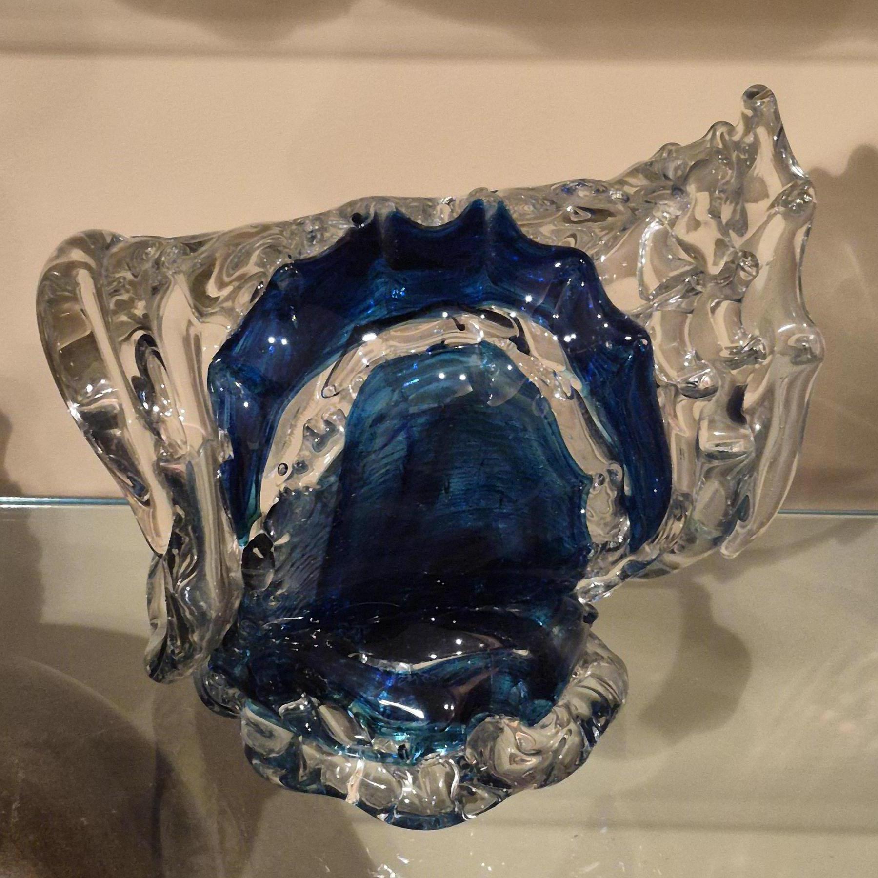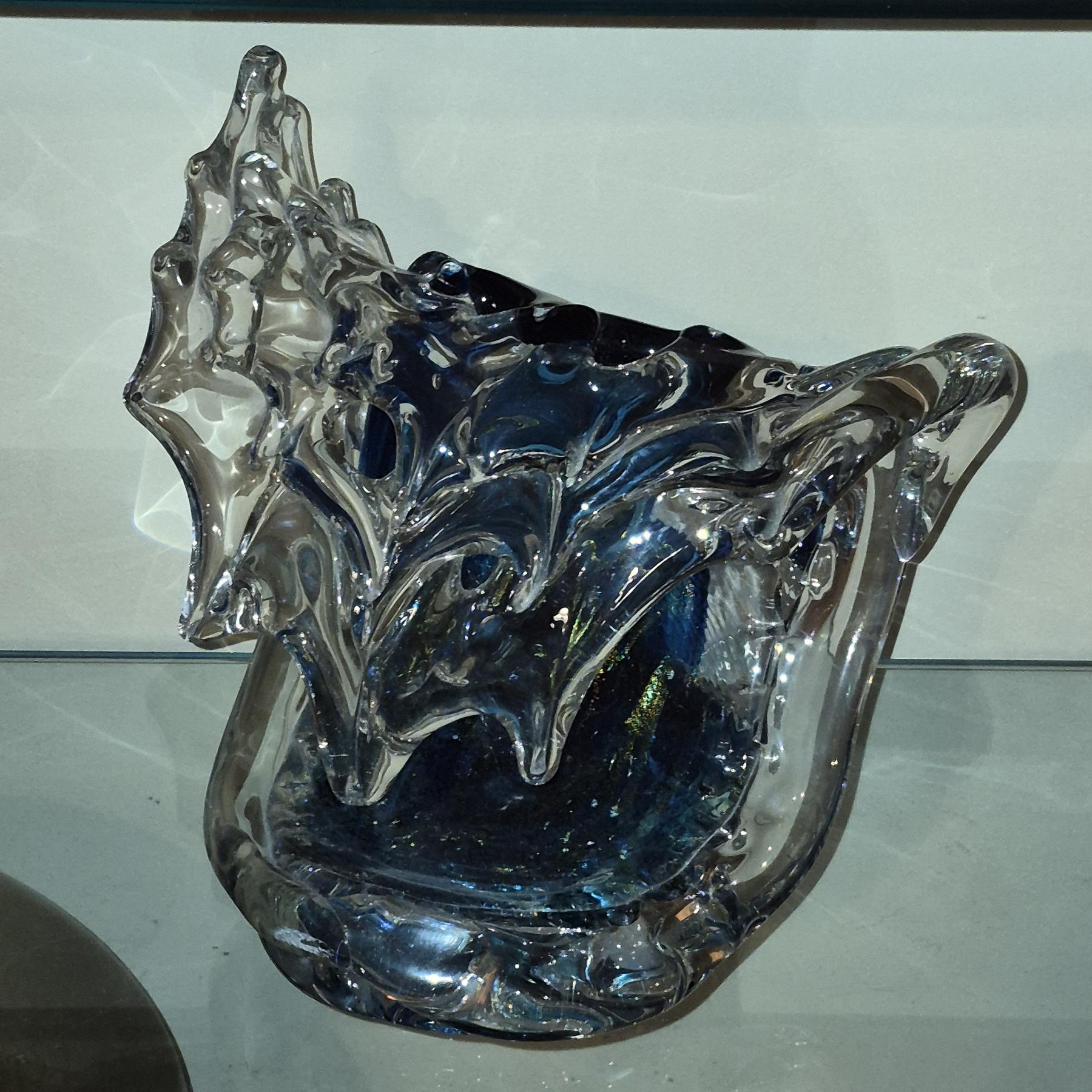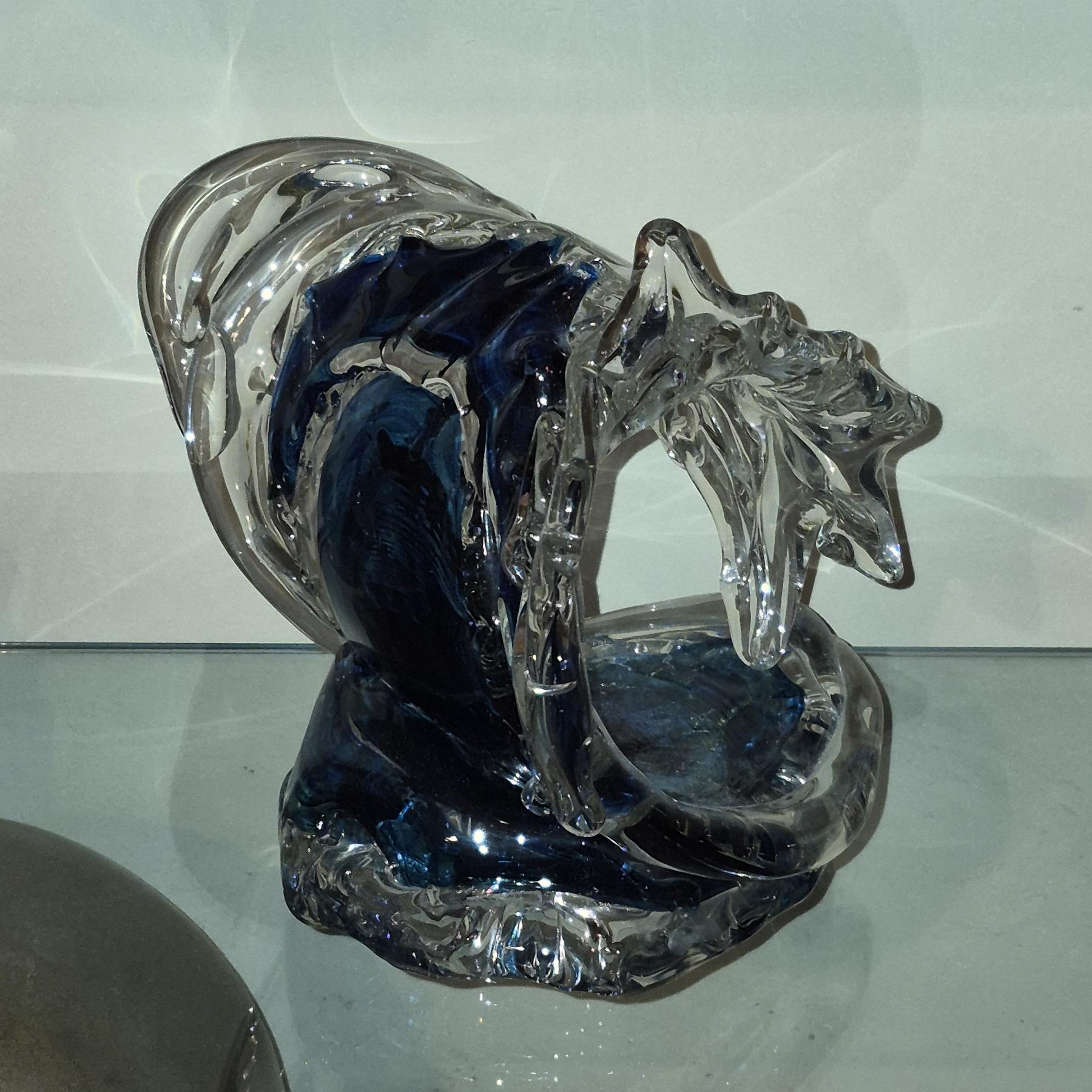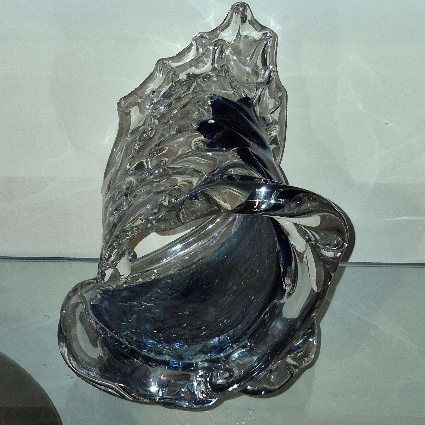 Clear & Blue Crystal Wave Art Glass Sculpture 10 x 11 Overall - Excellent Condition