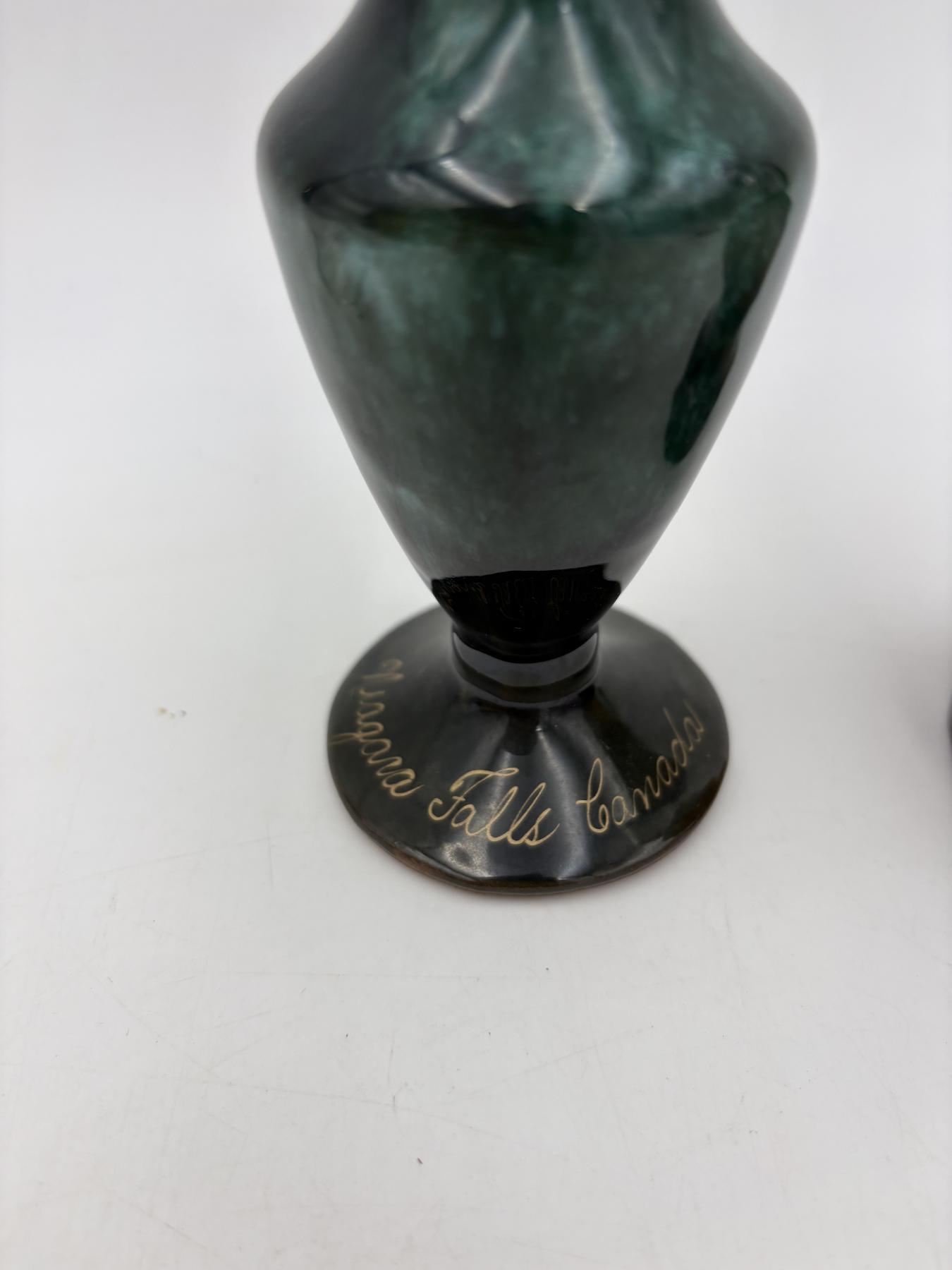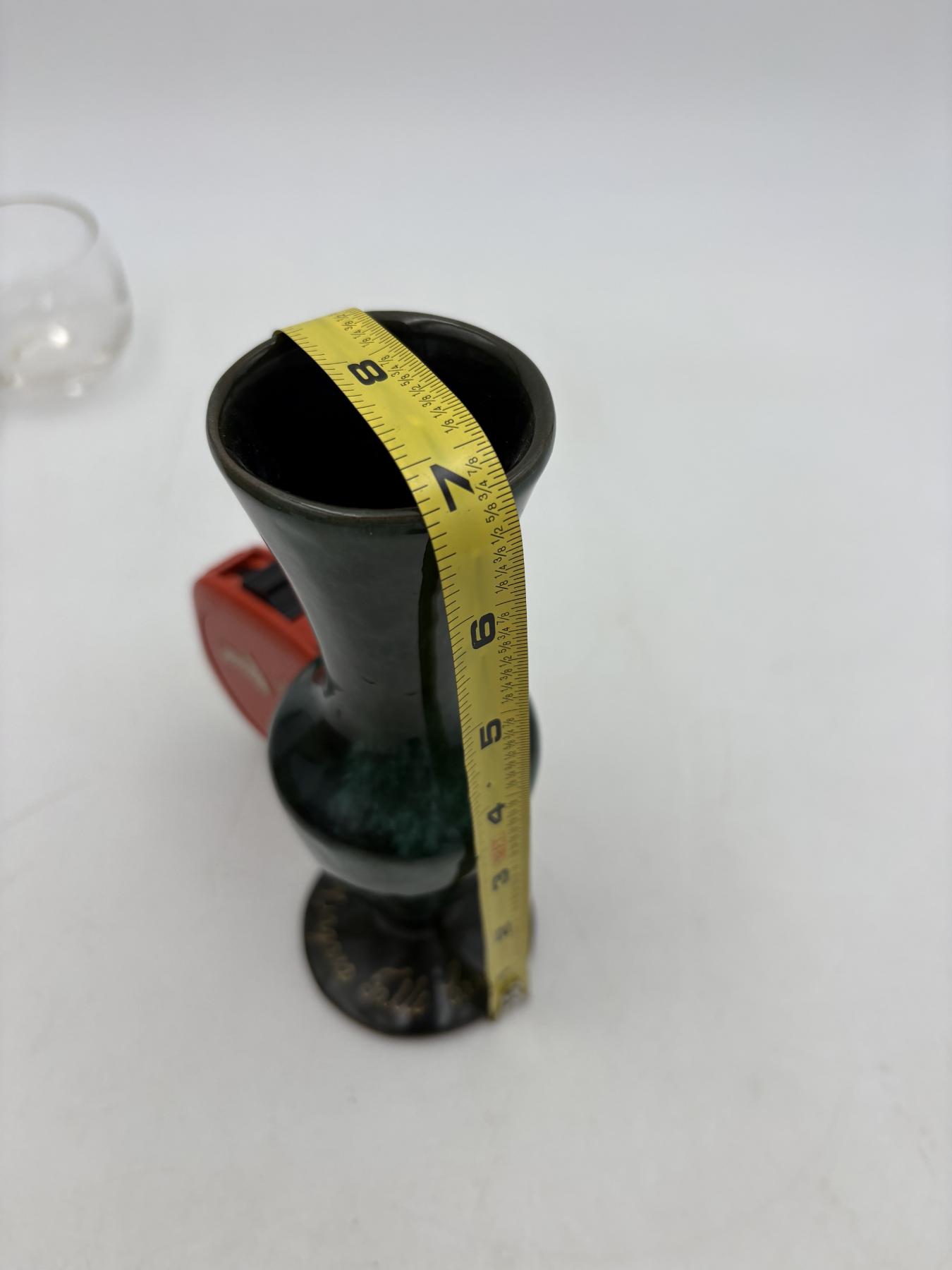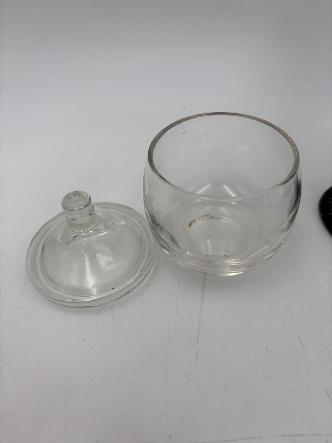 Clear glass jar with lid - Roly poly style 4 inches tall with lid - Niagara Falls Canada Green drip glaze vase 7 inches tall - Avon Chess Piece After Shave Bottle - 6 inches tall - empty bottle